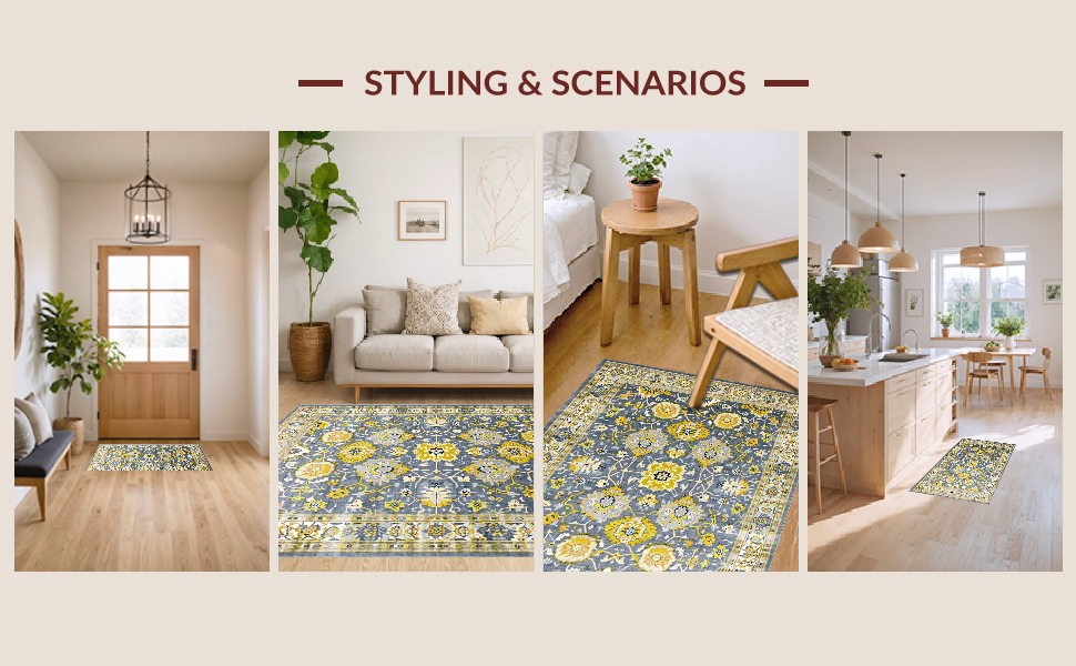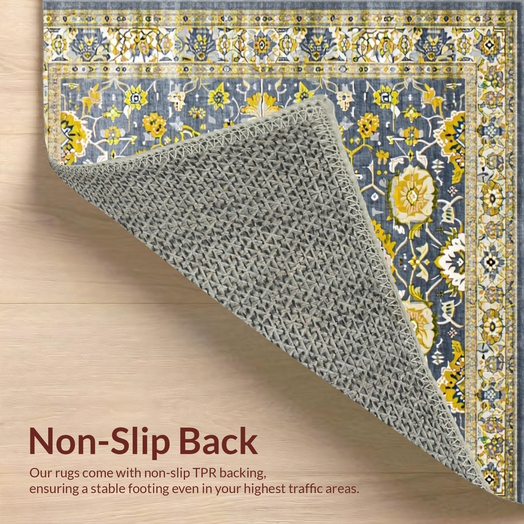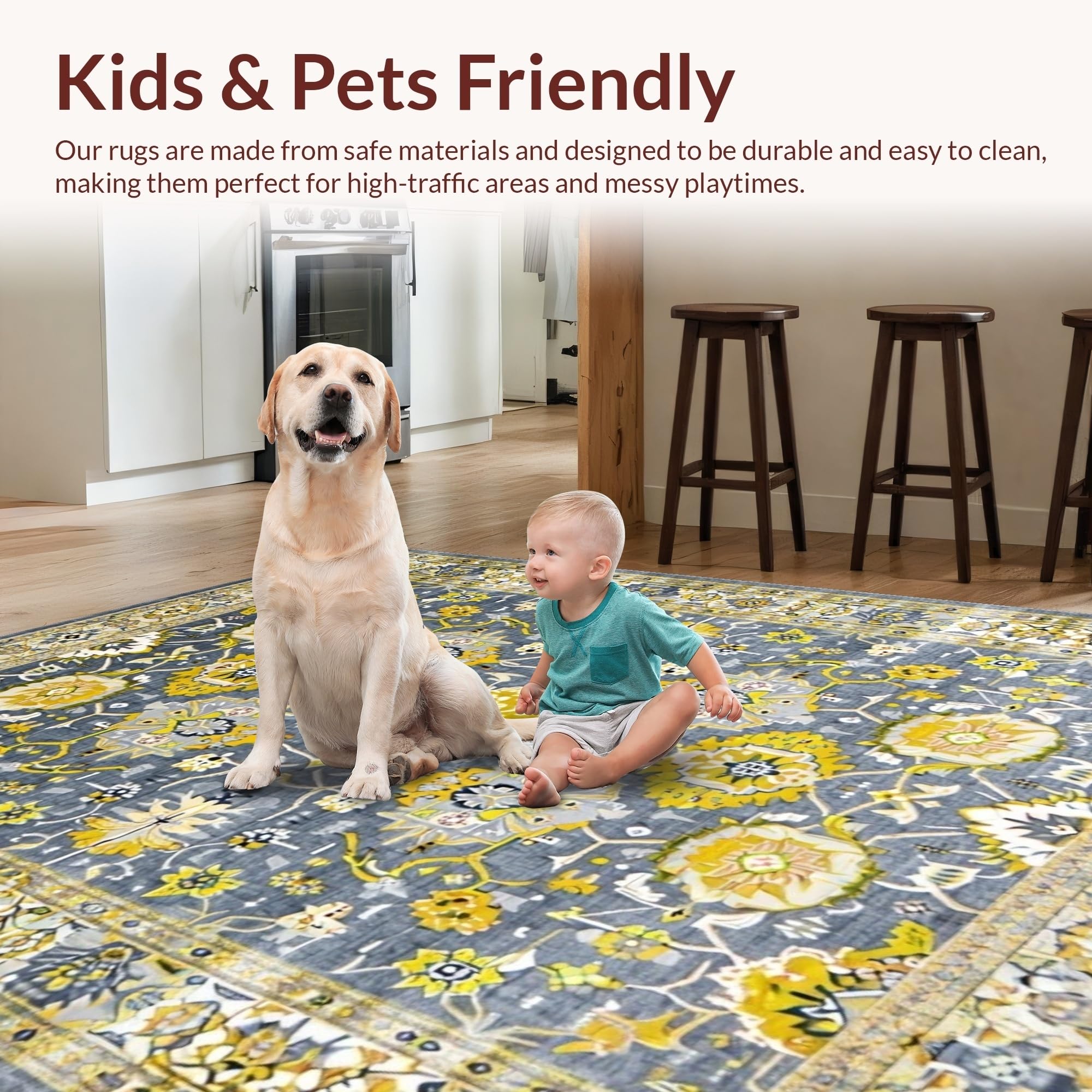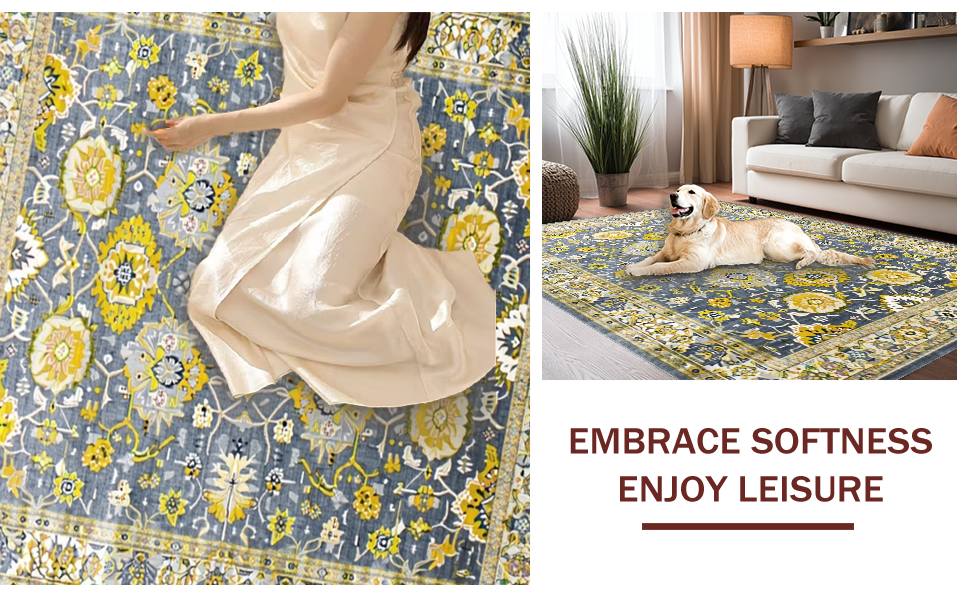 Ultra Soft Area Rug, Non Slip, Stain Resistant, Washable Area Rugs for Living Room, Bedroom, Sophisticated Floral Tiled Composition(Gray) Overview: