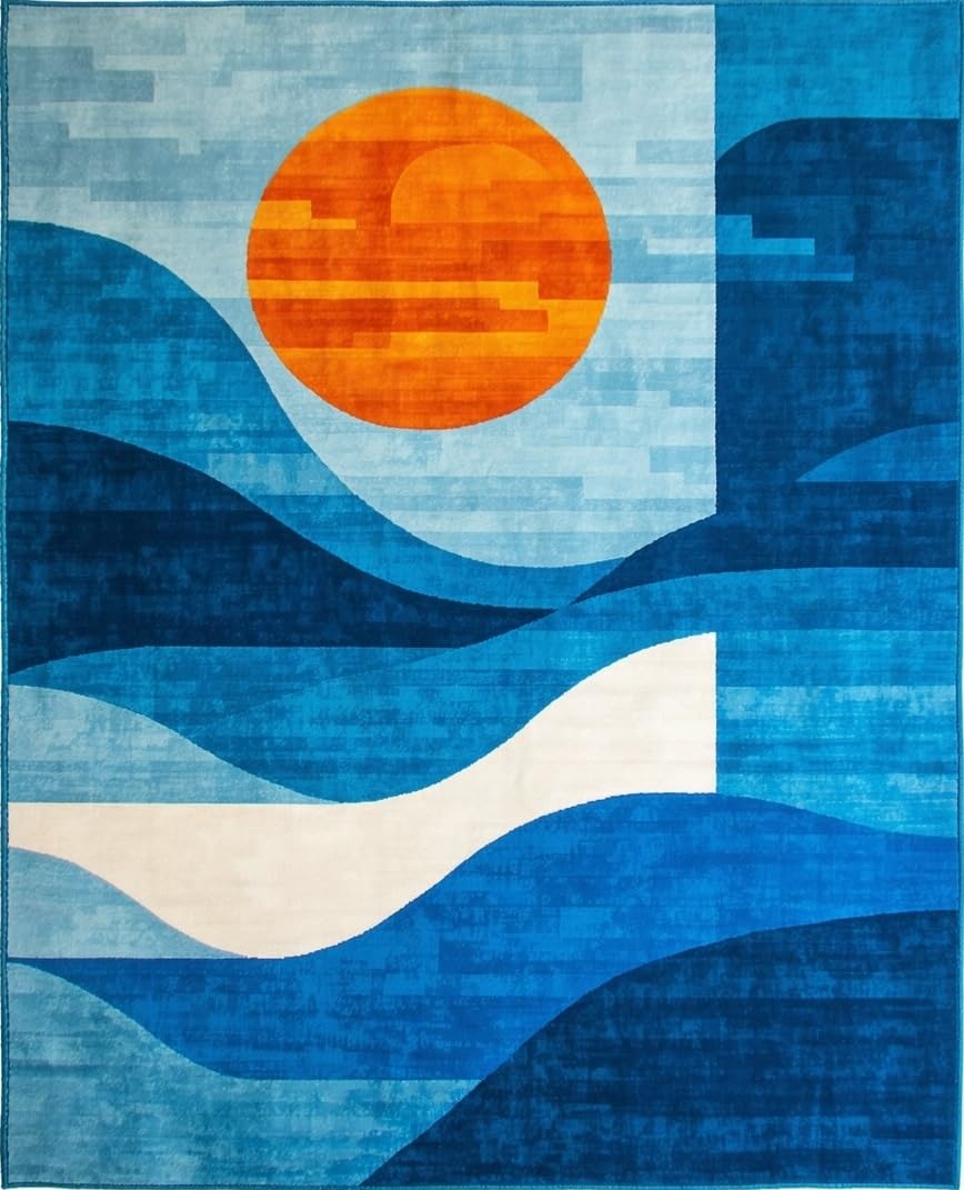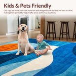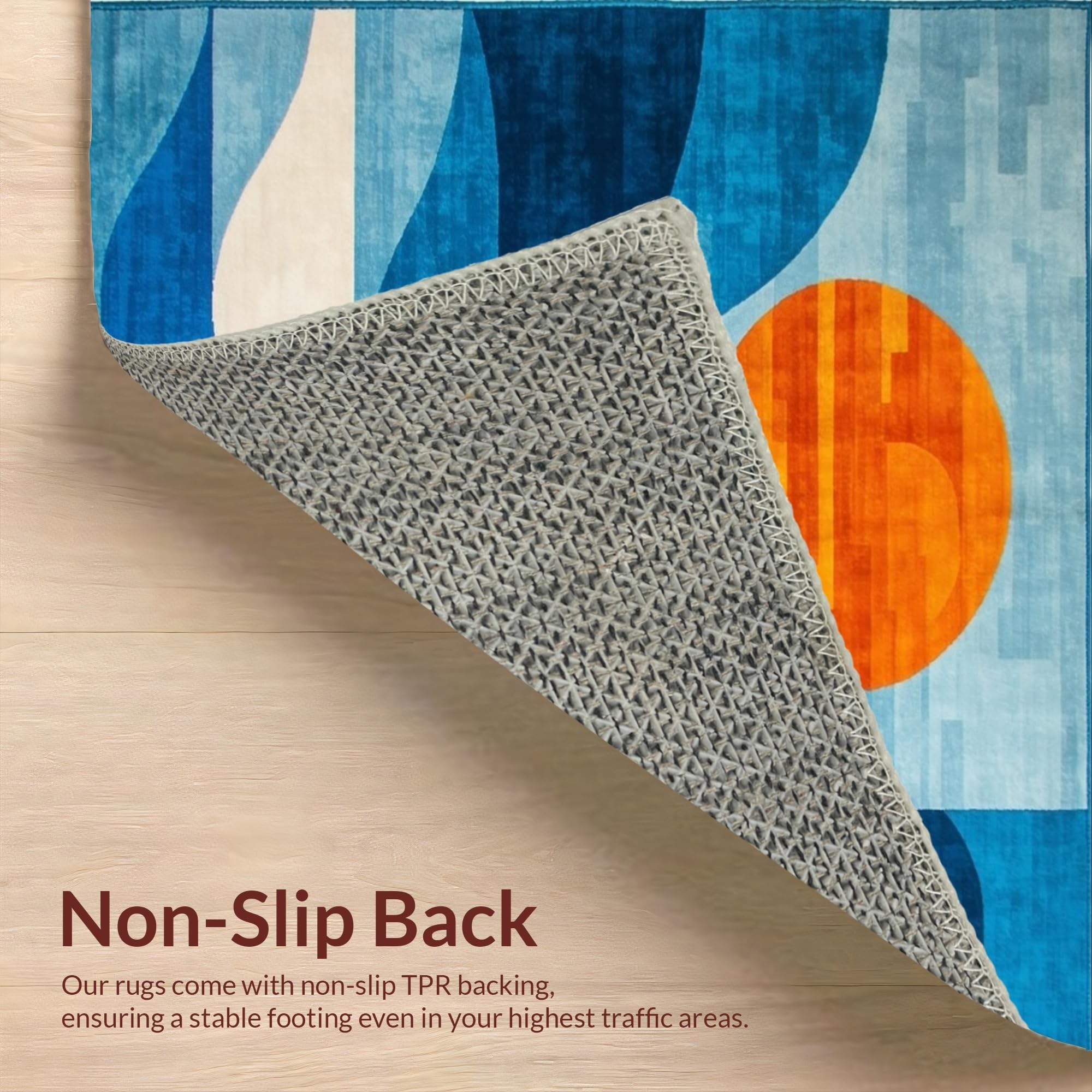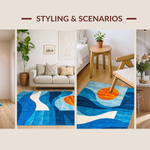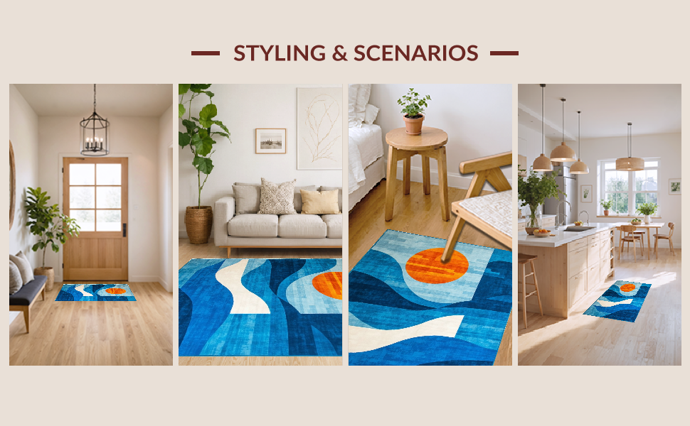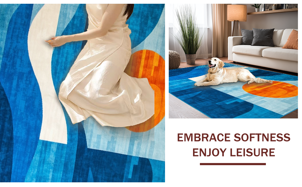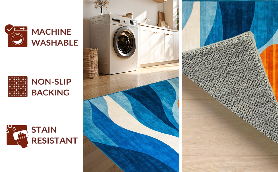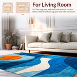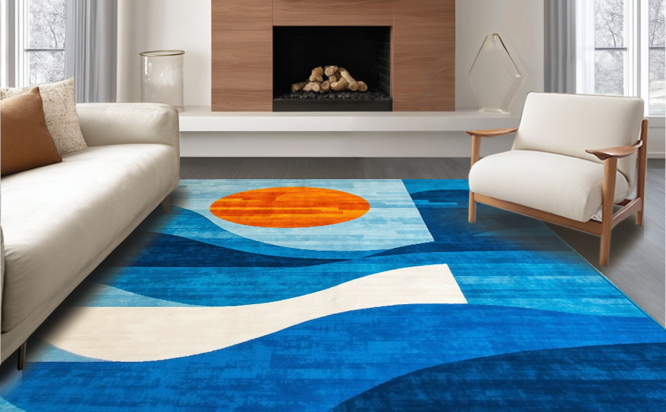 Ultra Soft Area Rug, Non Slip, Stain Resistant, Washable Area Rugs for Living Room, Bedroom, Sophisticated Geometric Wave Motif(Blue) Overview:
