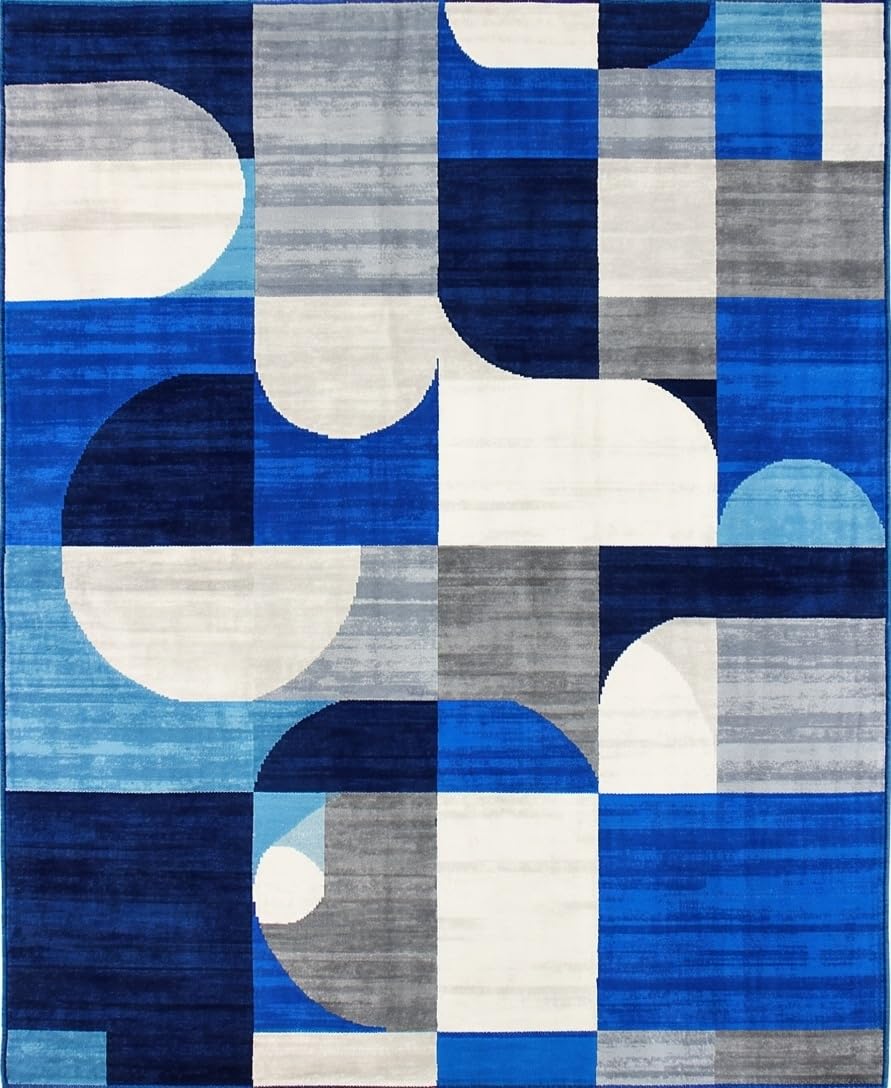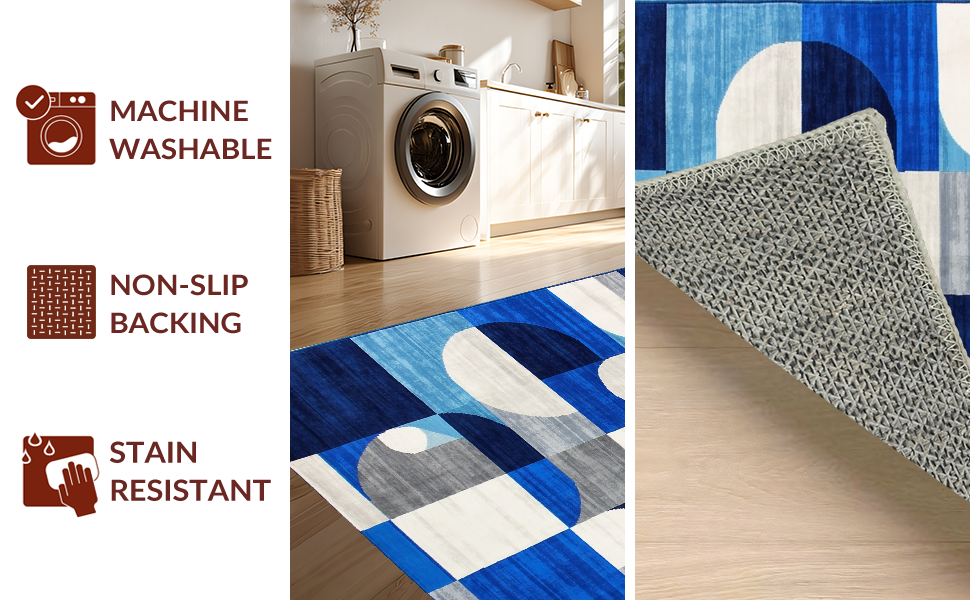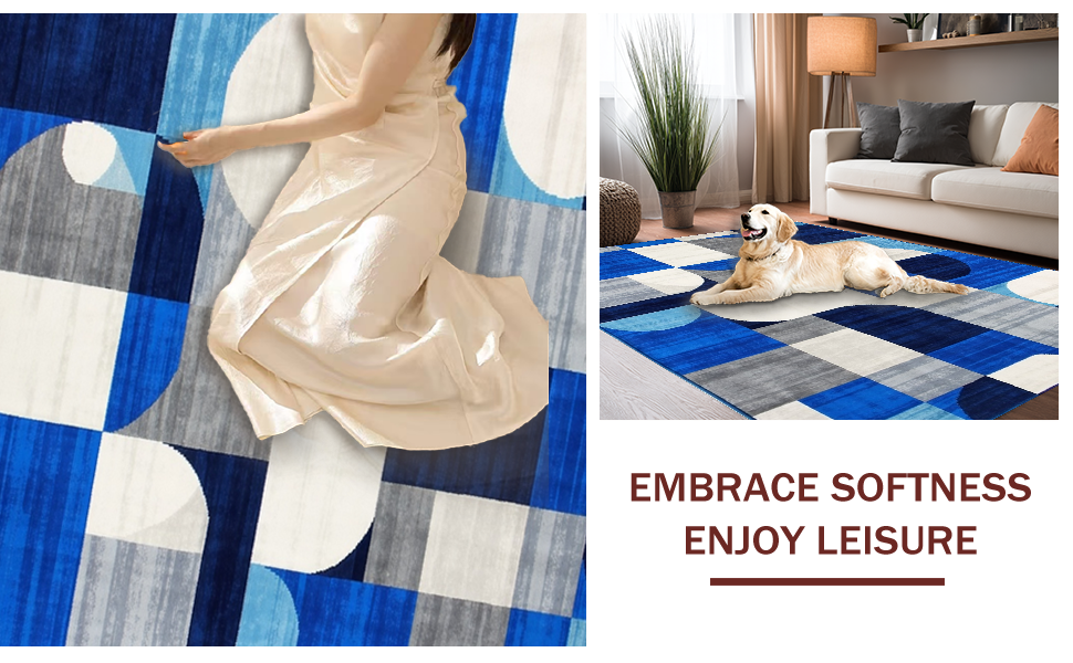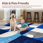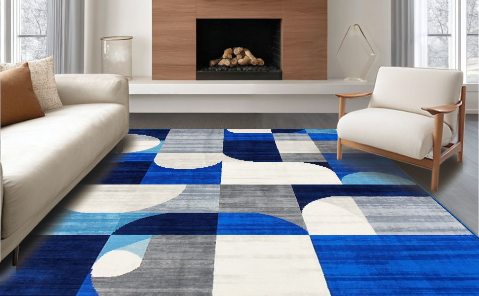 Ultra Soft Area Rug, Non Slip, Stain Resistant, Washable Area Rugs for Living Room, Bedroom, Sophisticated Gray and Blue Mosaic(Blue) Overview: