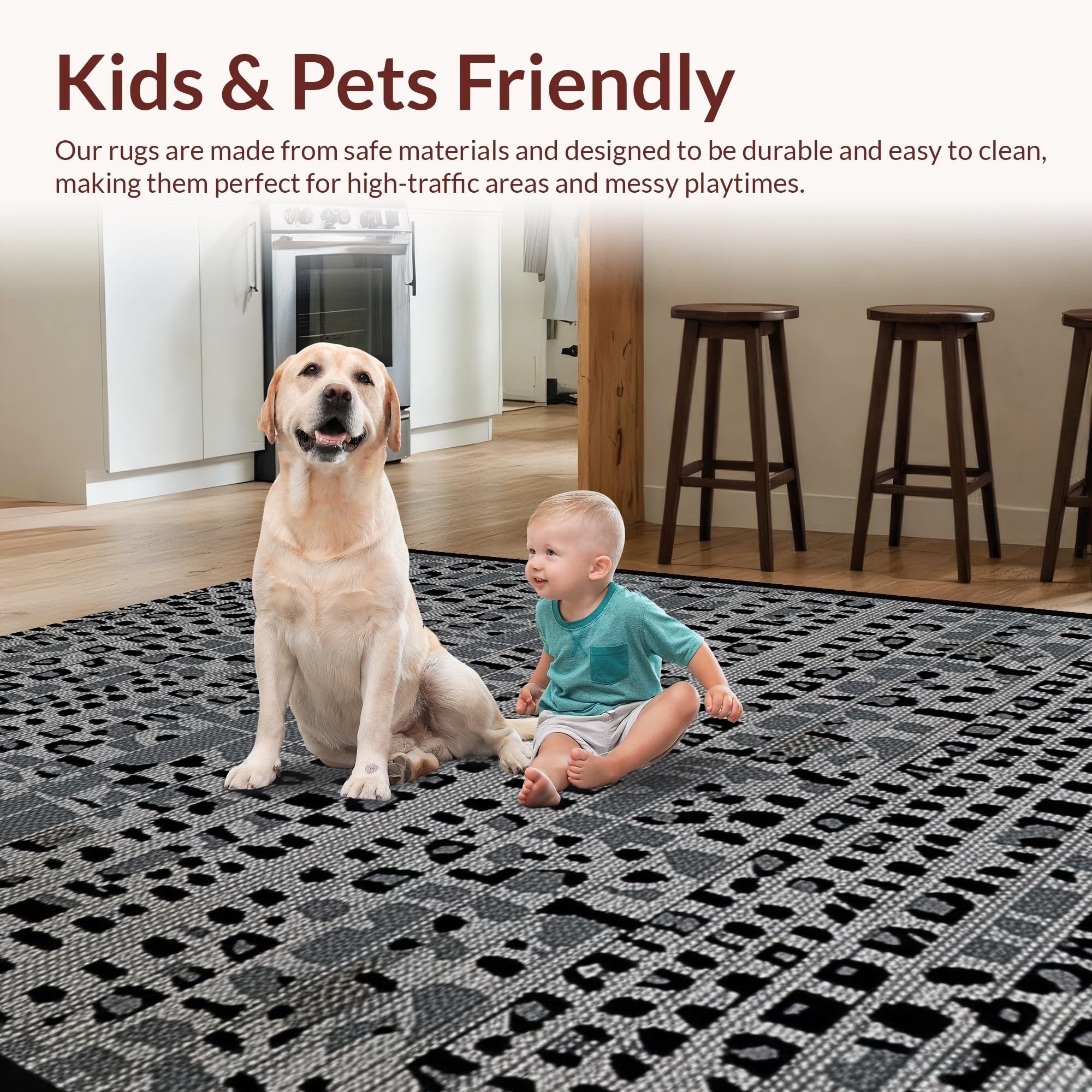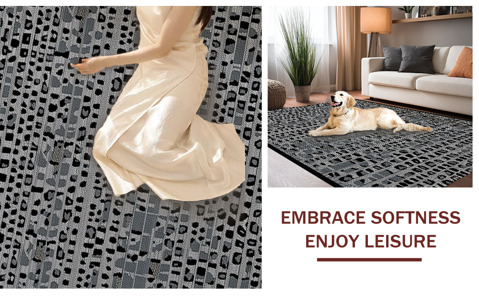 Ultra Soft Area Rug, Non Slip, Stain Resistant, Washable Area Rugs for Living Room, Bedroom, Sophisticated Grey and Black Motif(Blue) Overview:
