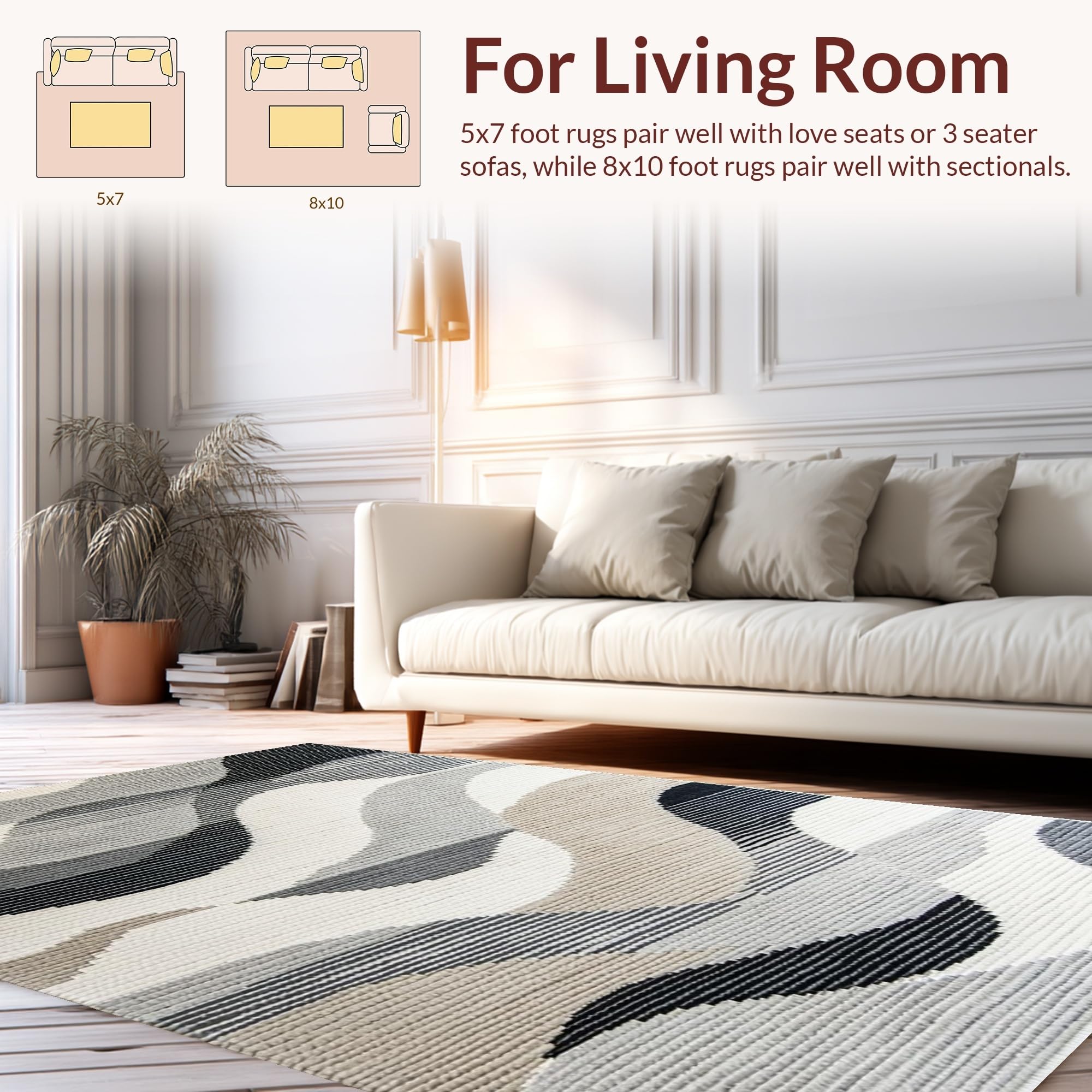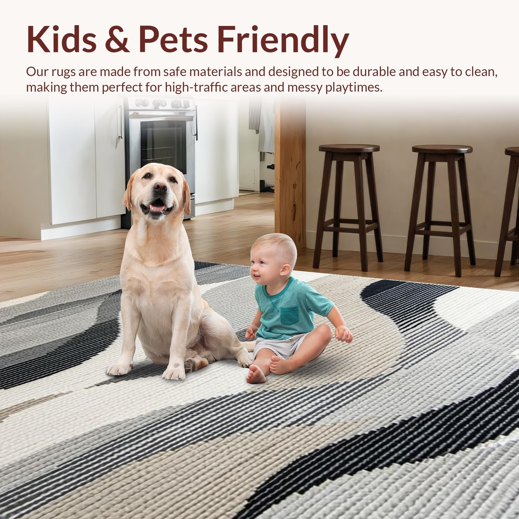 Ultra Soft Area Rug, Non Slip, Stain Resistant, Washable Area Rugs for Living Room, Bedroom, Sophisticated Grey Geometric Motif(Gray) Overview:
