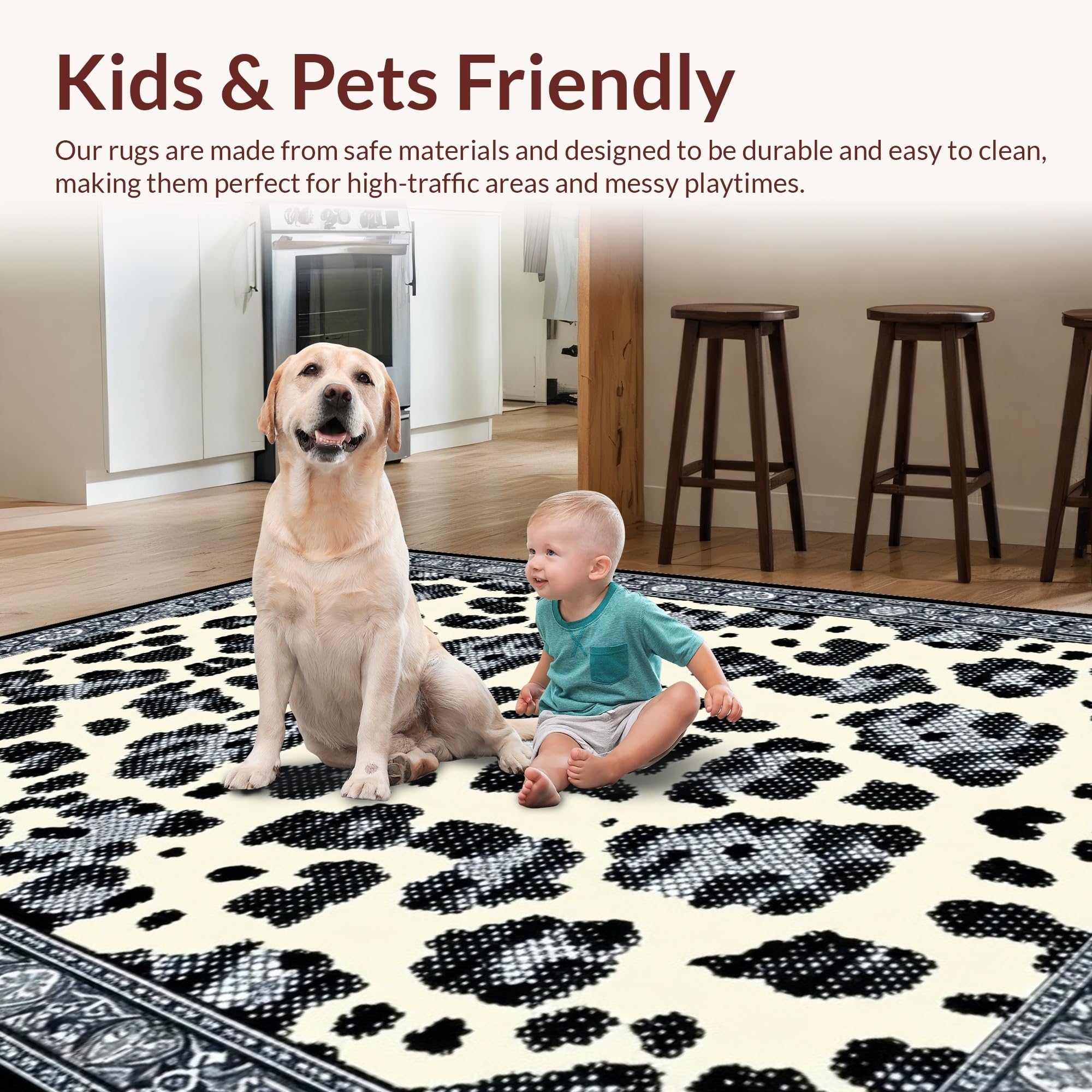Ultra Soft Area Rug, Non Slip, Stain Resistant, Washable Area Rugs for Living Room, Bedroom, Sophisticated Grey Textured Print(Ivory) Overview: