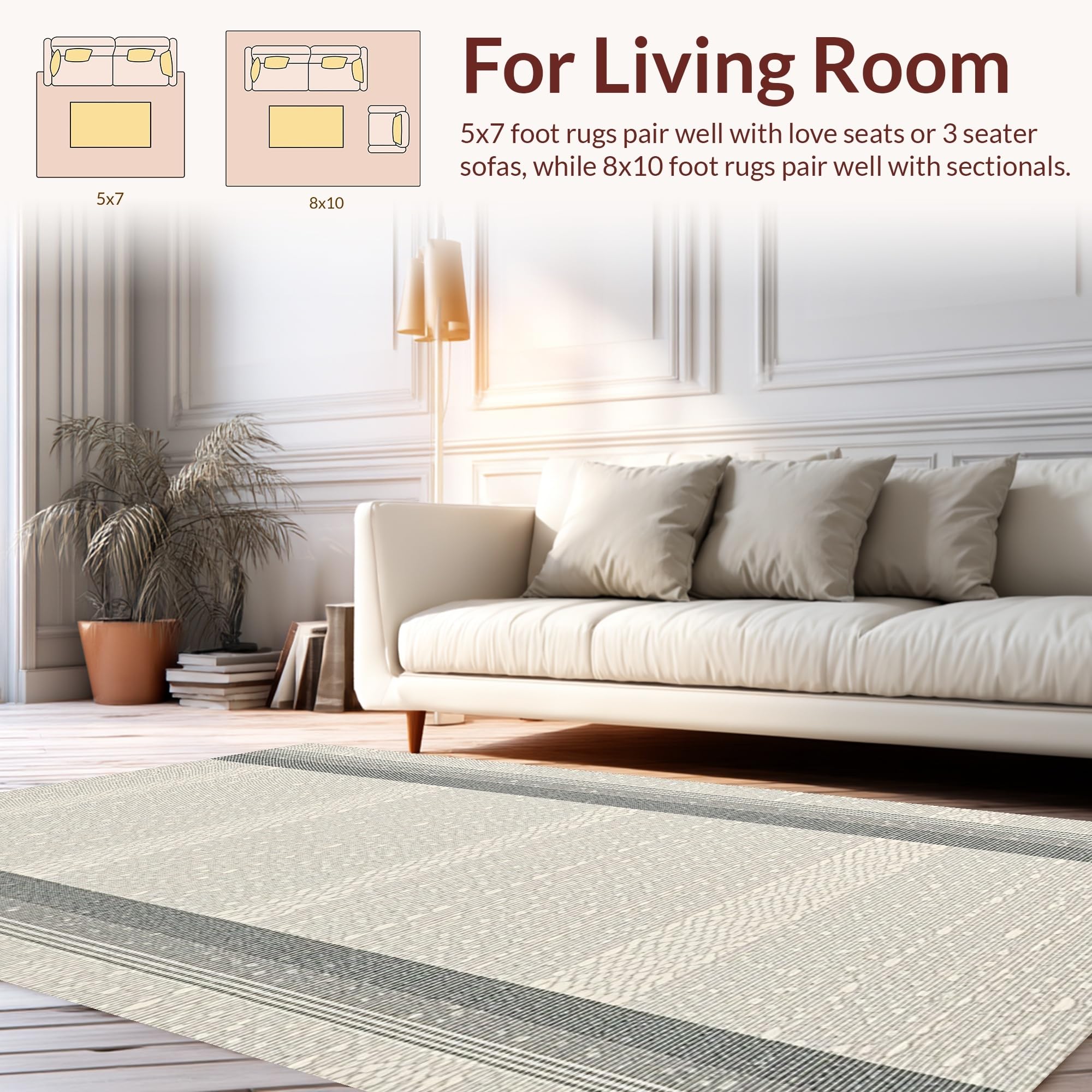 Ultra Soft Area Rug, Non Slip, Stain Resistant, Washable Area Rugs for Living Room, Bedroom, Sophisticated Handcrafted Decorative Piece(Beige) Overview: