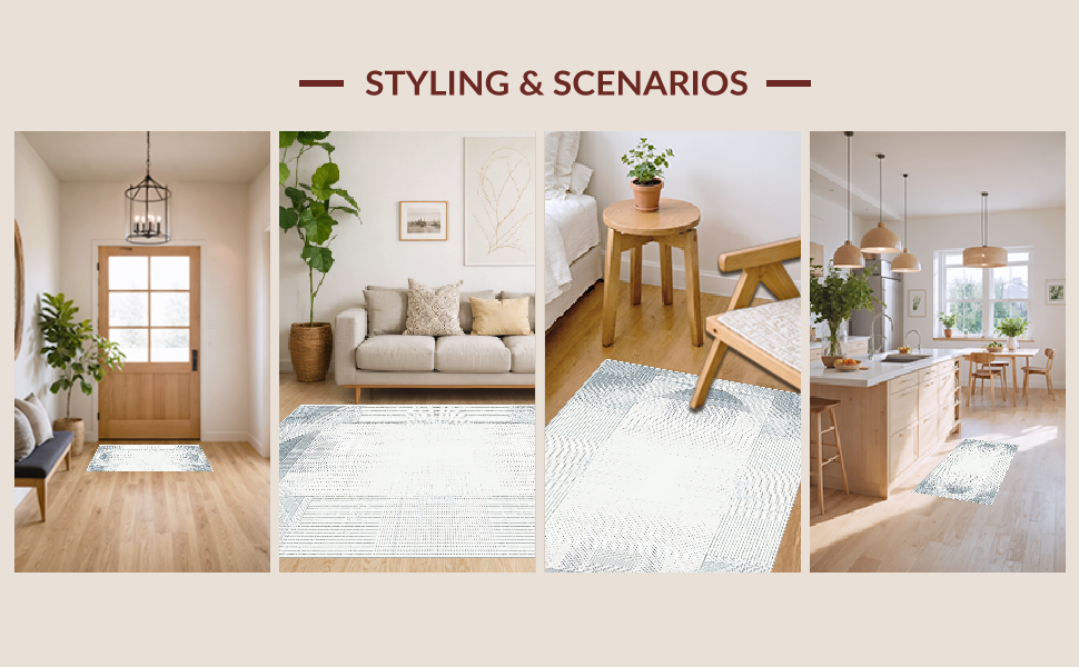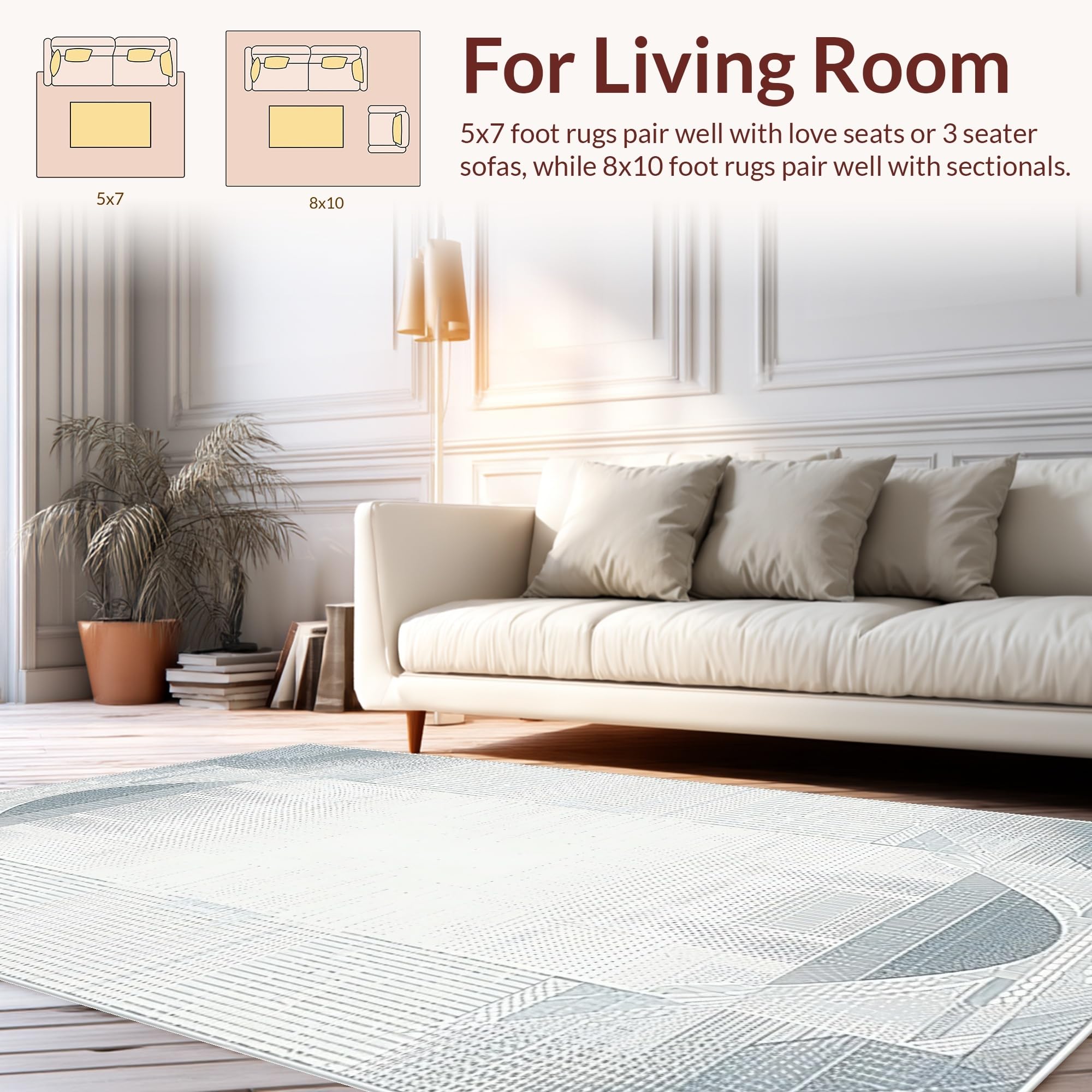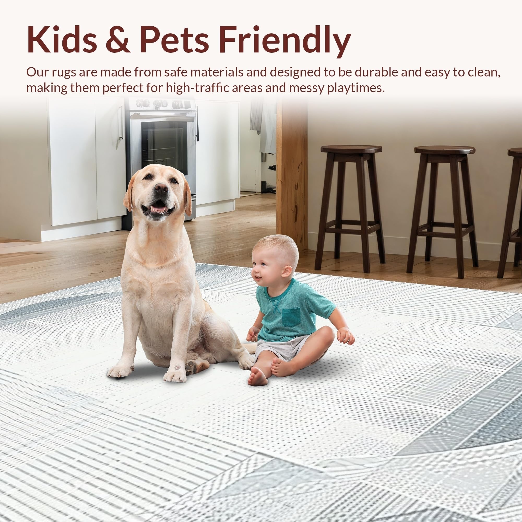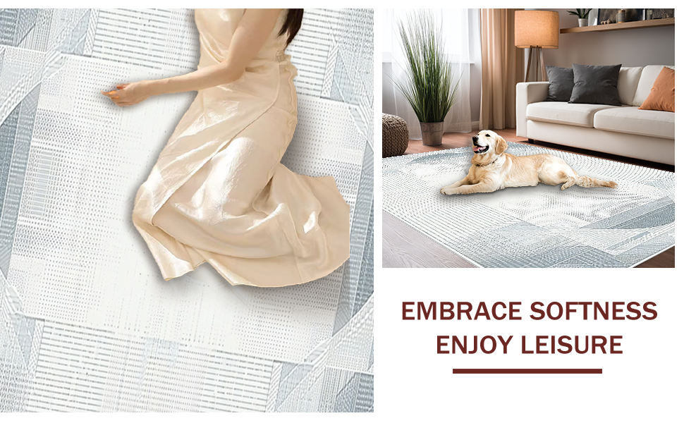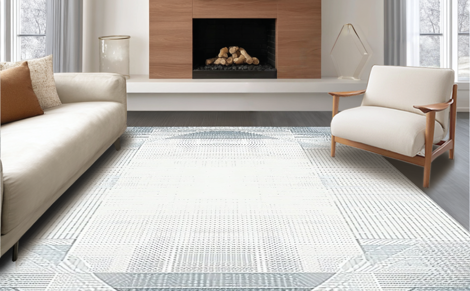 Ultra Soft Area Rug, Non Slip, Stain Resistant, Washable Area Rugs for Living Room, Bedroom, Sophisticated High-Contrast Shapes(Gray) Overview: