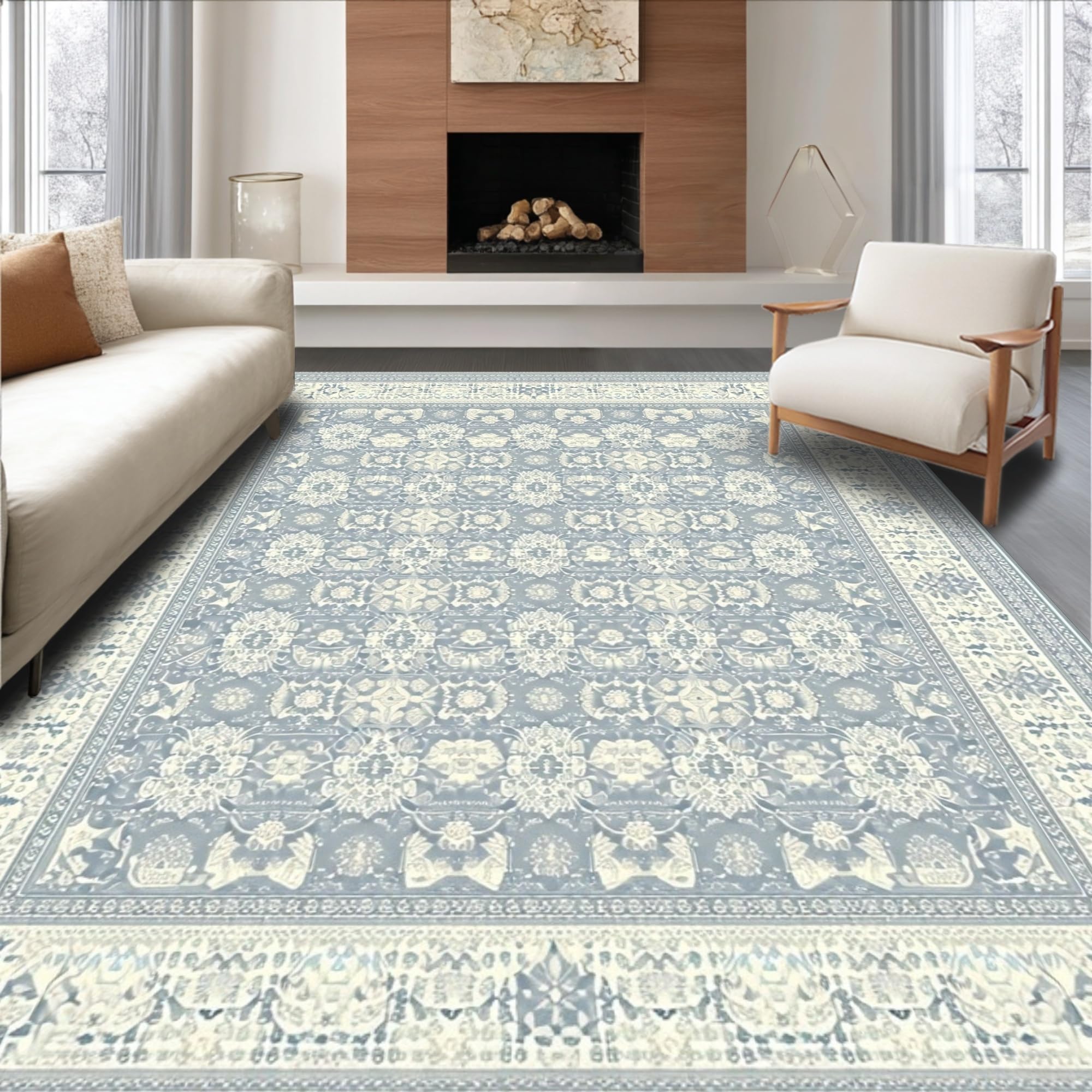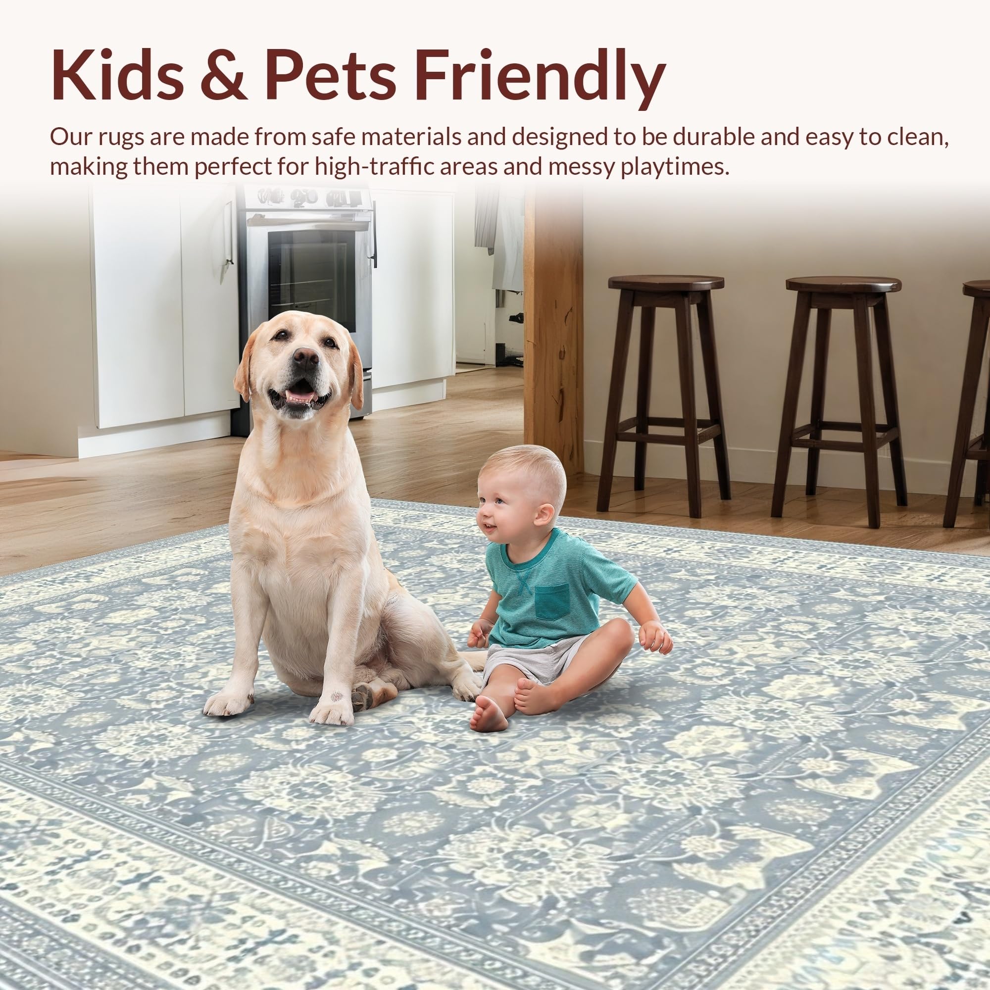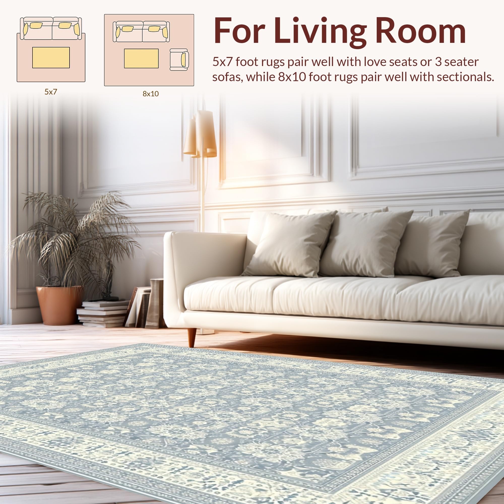 Ultra Soft Area Rug, Non Slip, Stain Resistant, Washable Area Rugs for Living Room, Bedroom, Sophisticated Ivory and Gray Trellis(Gray) Overview:
