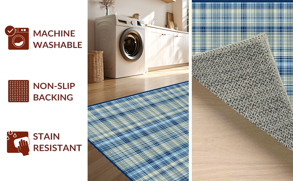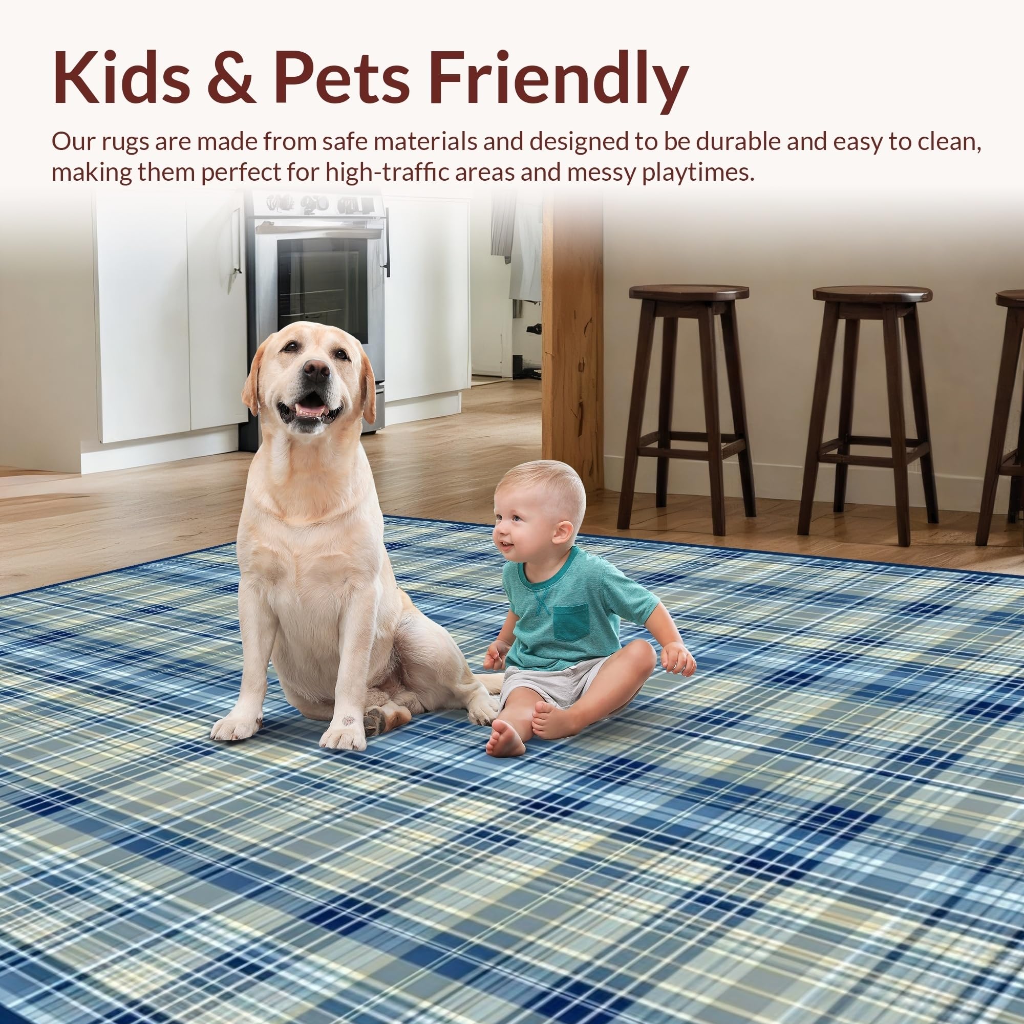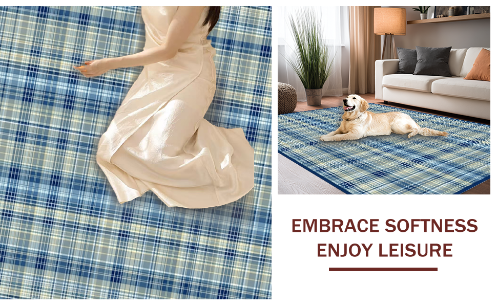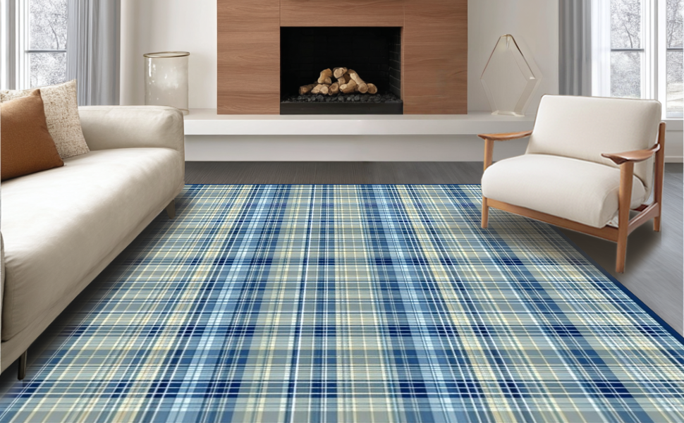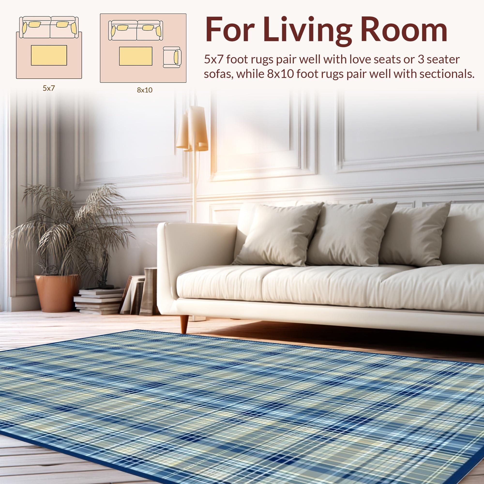 Ultra Soft Area Rug, Non Slip, Stain Resistant, Washable Area Rugs for Living Room, Bedroom, Sophisticated Light Blue Checks(Blue) Overview: