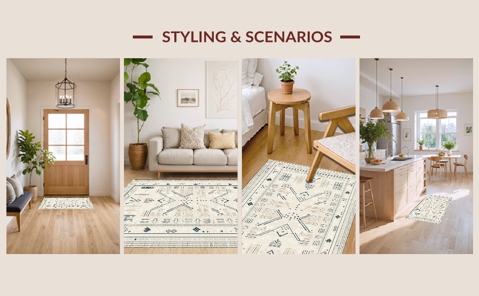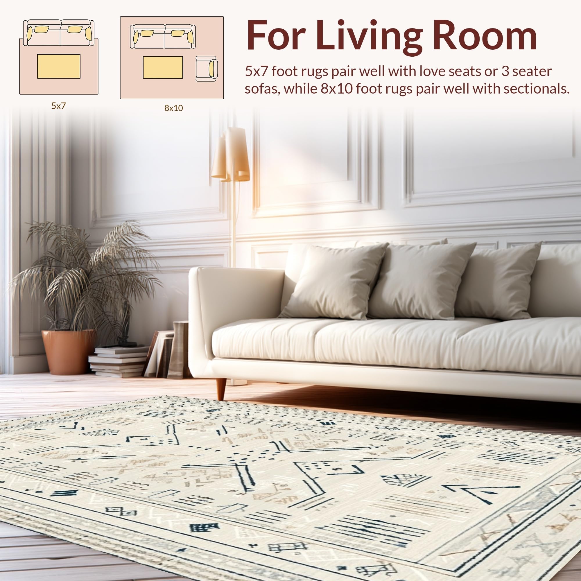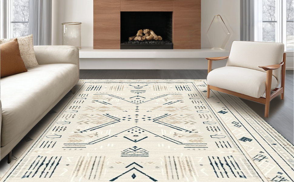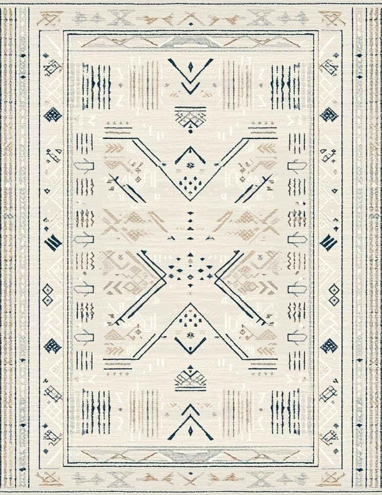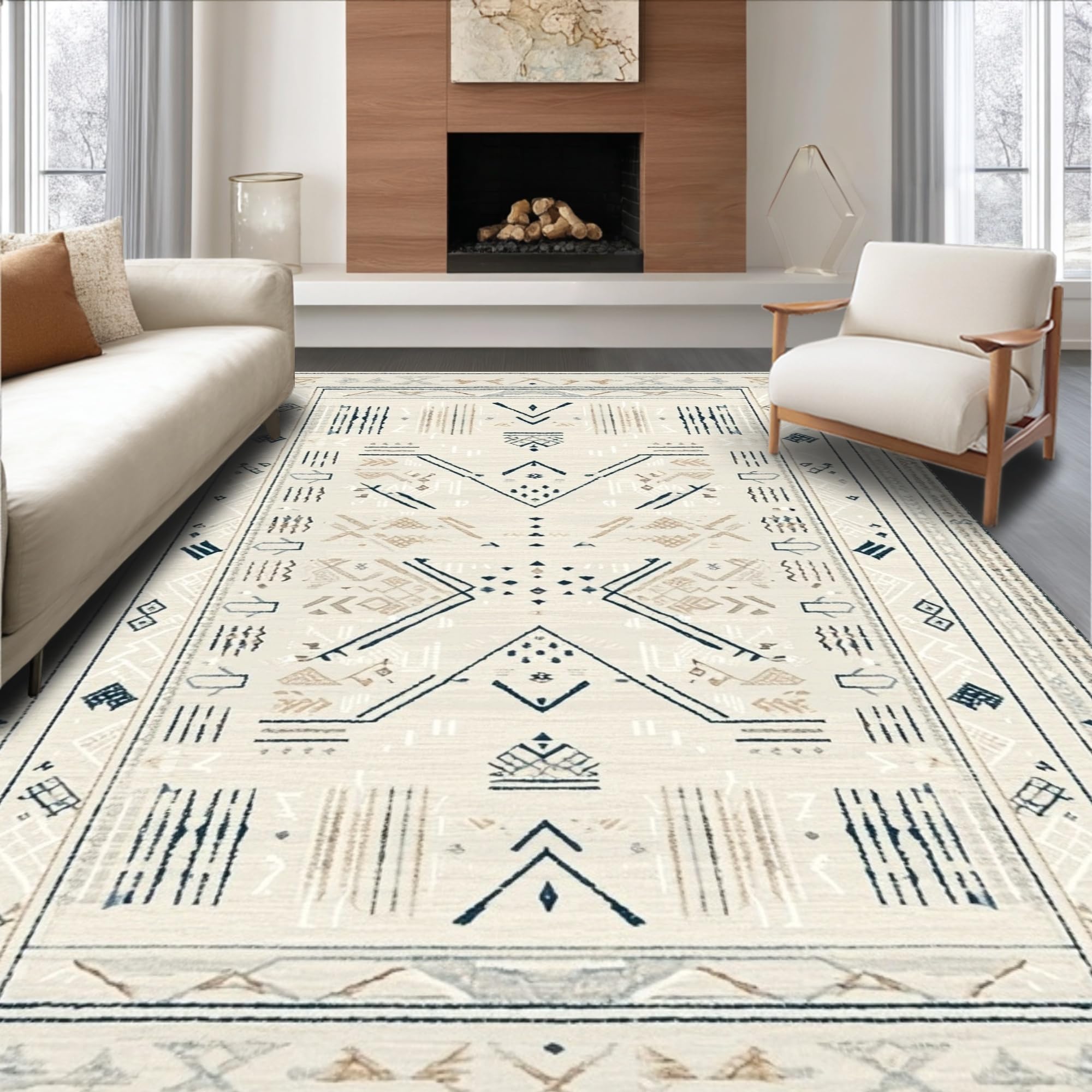 Ultra Soft Area Rug, Non Slip, Stain Resistant, Washable Area Rugs for Living Room, Bedroom, Sophisticated Luxe Ogee Shape(Beige) Overview: