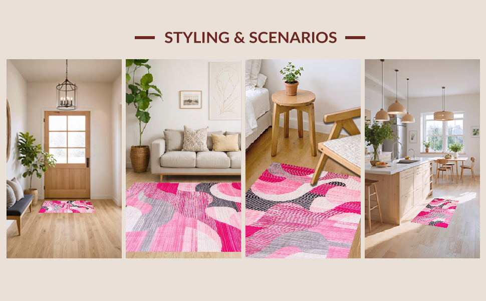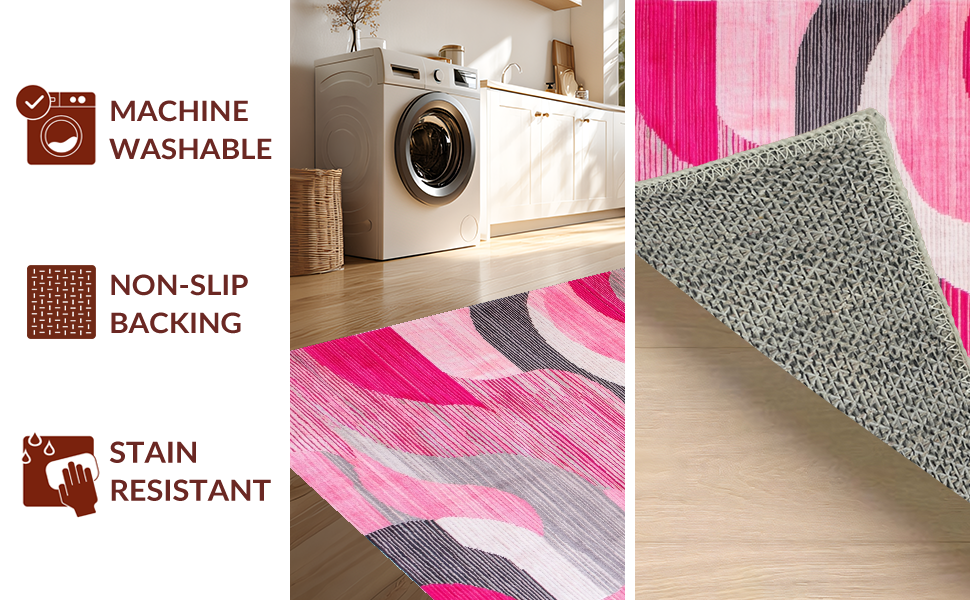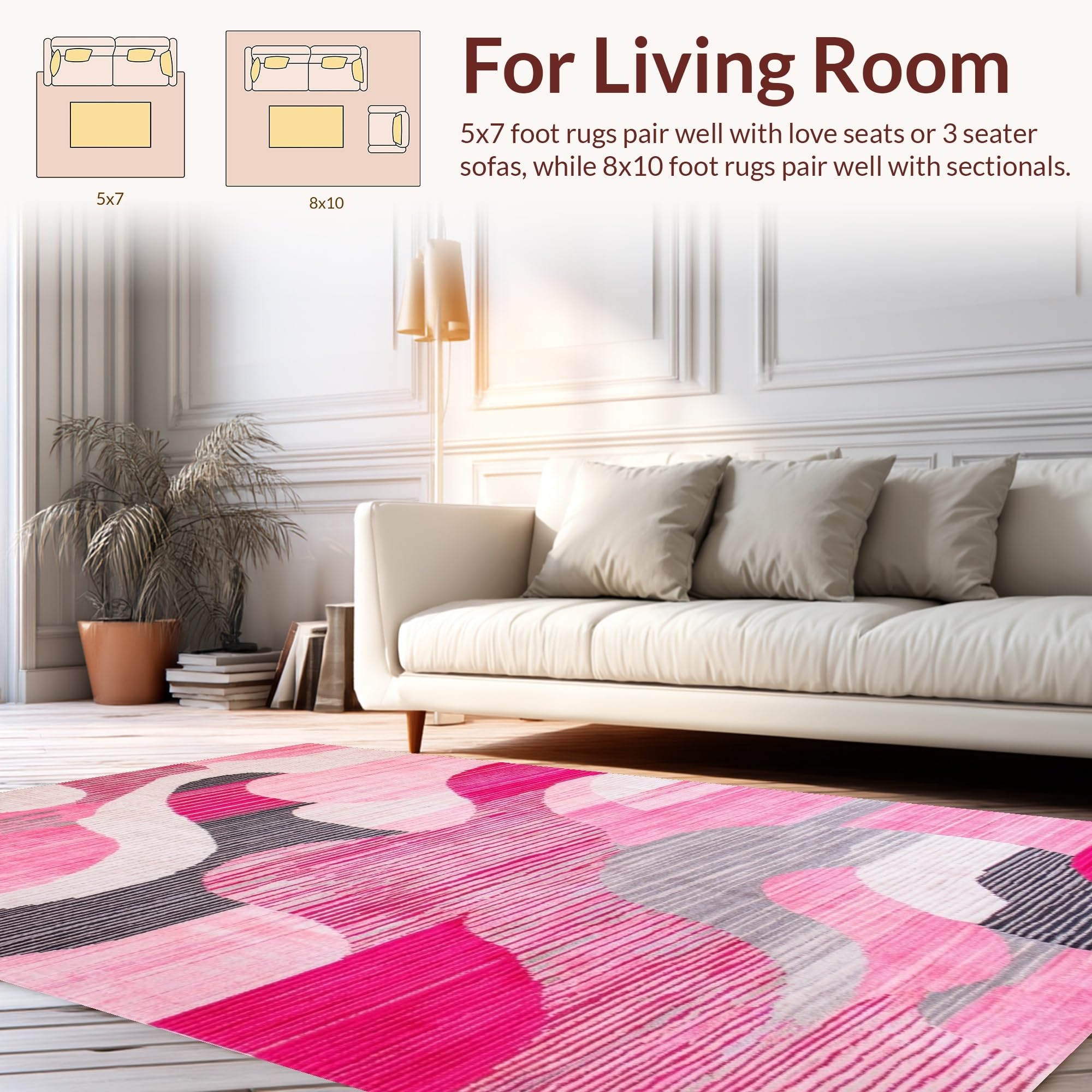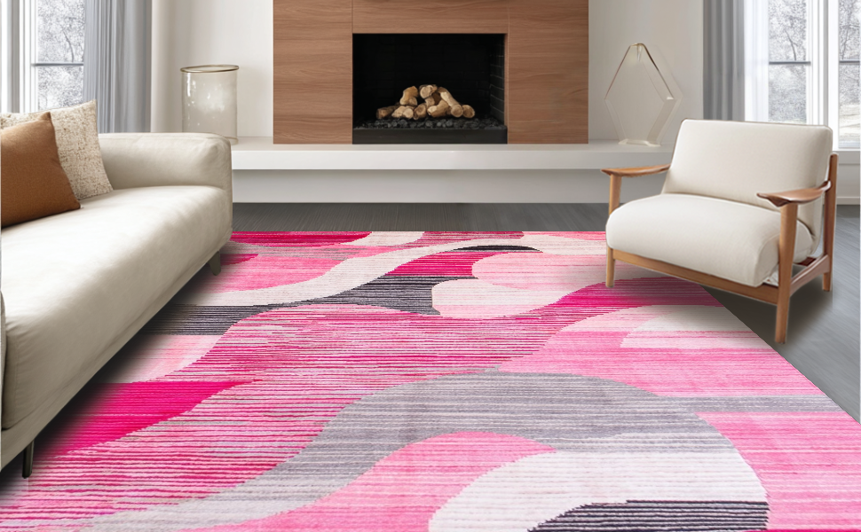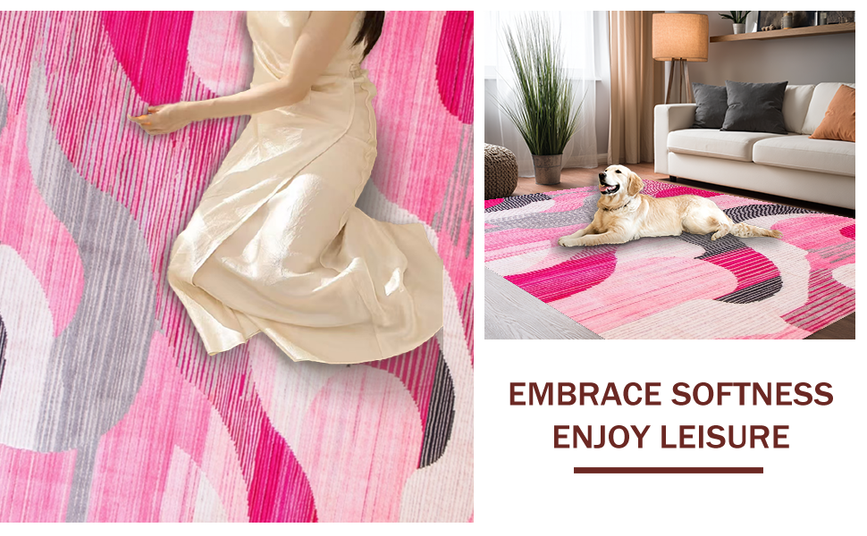 Ultra Soft Area Rug, Non Slip, Stain Resistant, Washable Area Rugs for Living Room, Bedroom, Sophisticated Minimalist Design Approach(Pink) Overview: