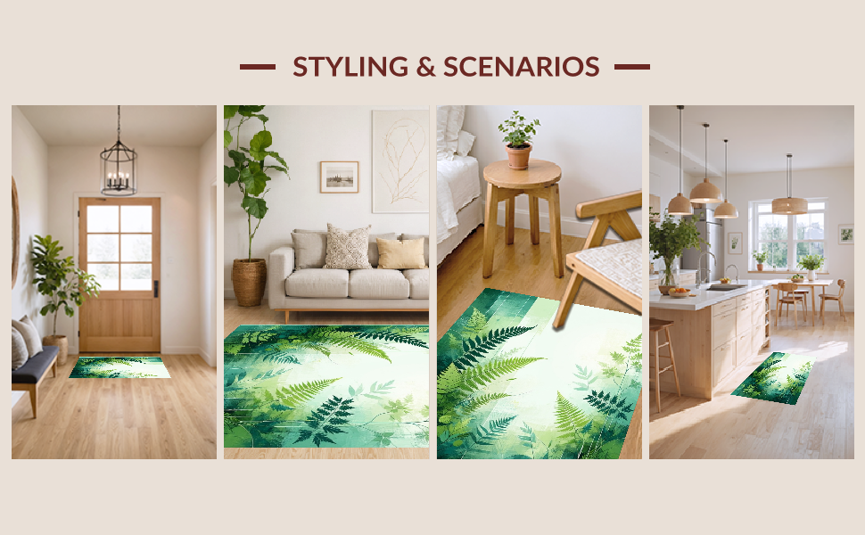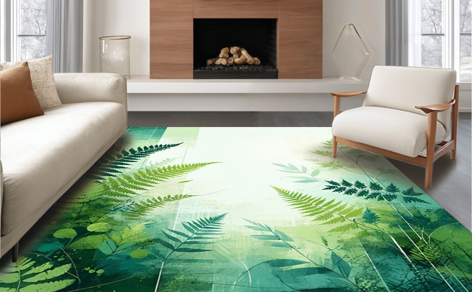 Ultra Soft Area Rug, Non Slip, Stain Resistant, Washable Area Rugs for Living Room, Bedroom, Sophisticated Minimalist Earthy Hues(Green) Overview: