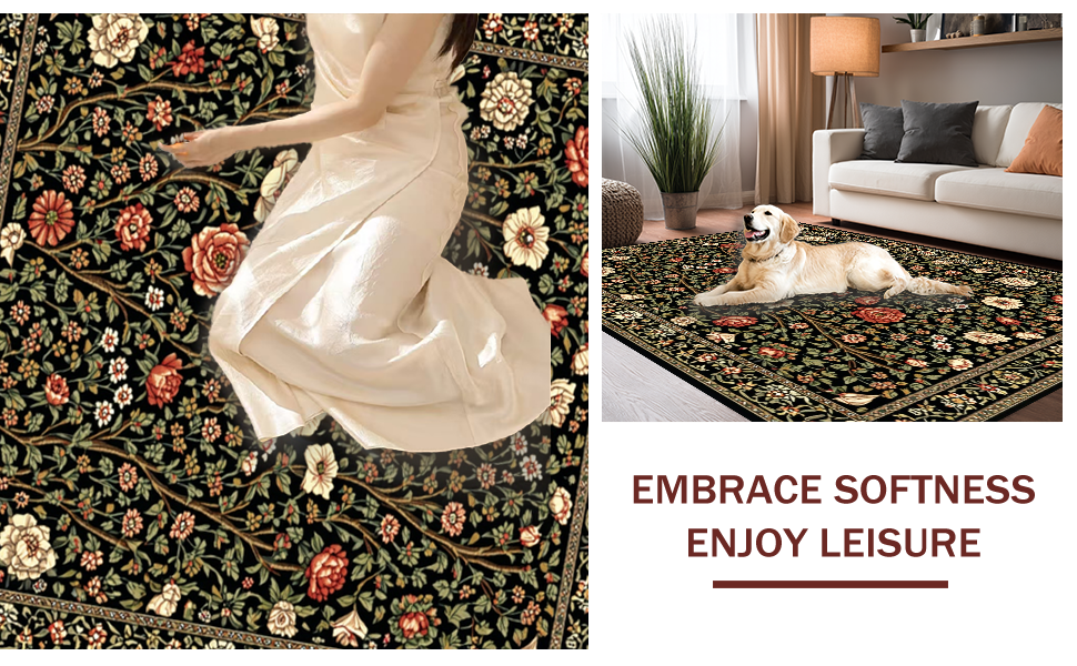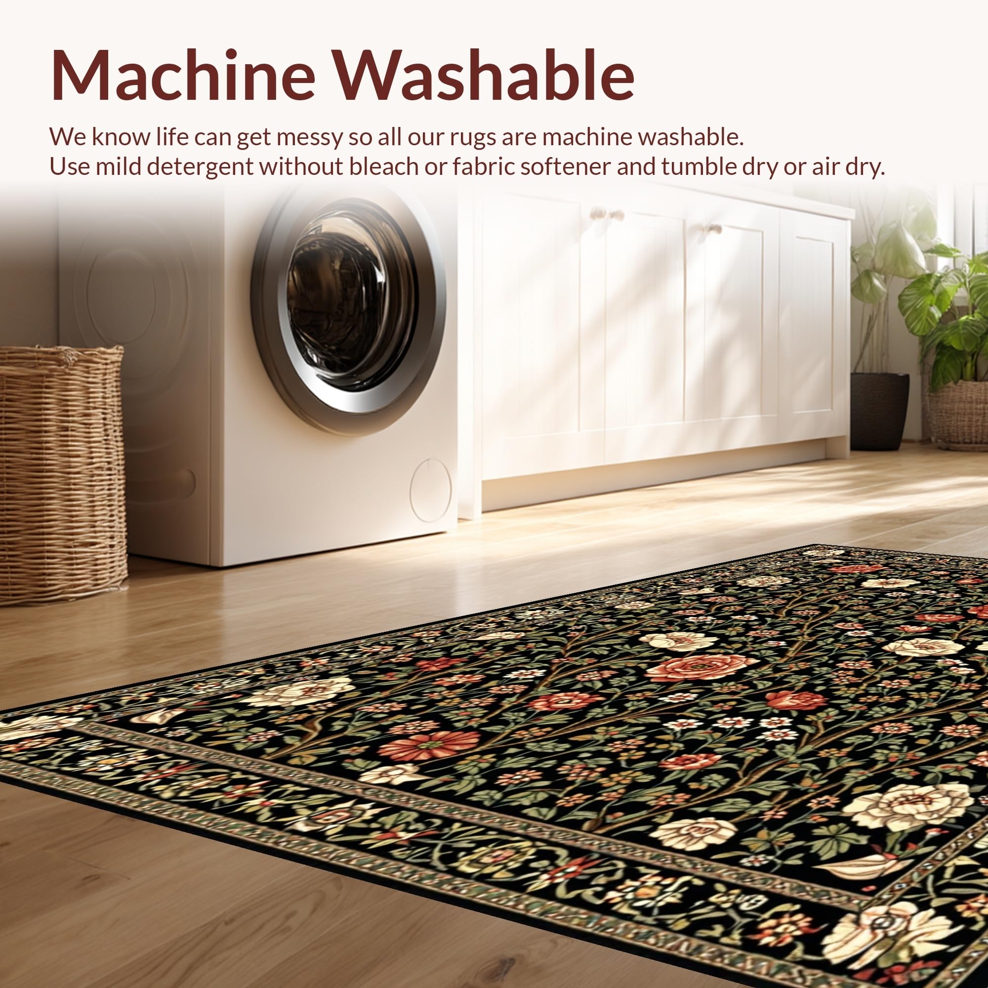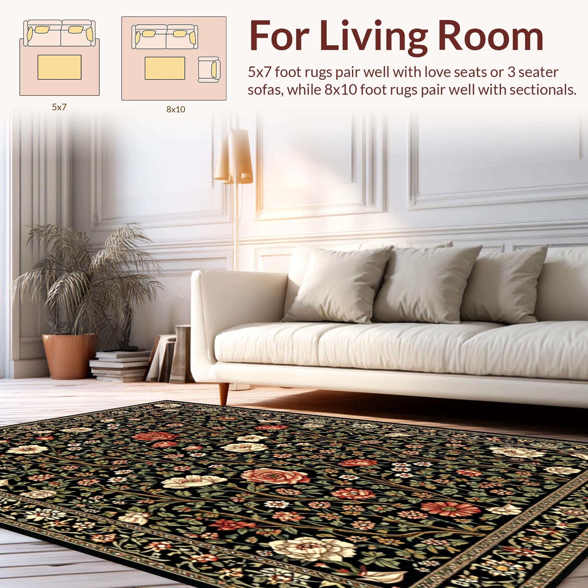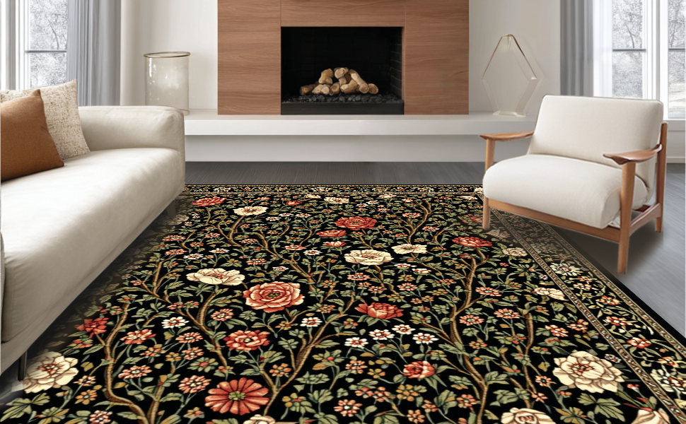 Ultra Soft Area Rug, Non Slip, Stain Resistant, Washable Area Rugs for Living Room, Bedroom, Sophisticated Modern Bloom Design(Black) Overview: