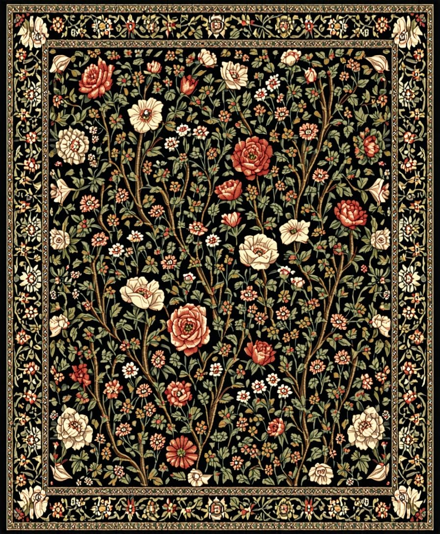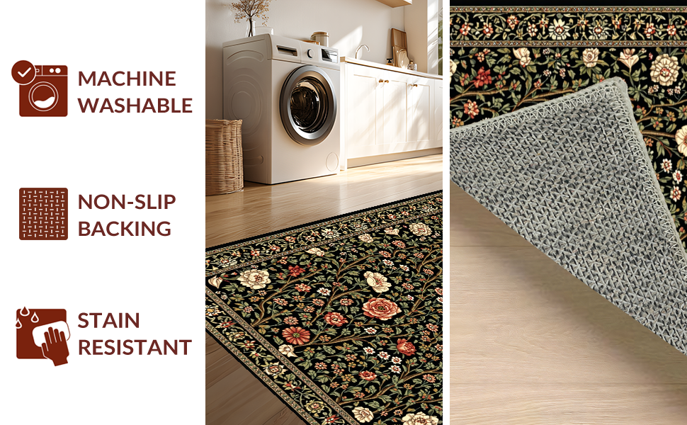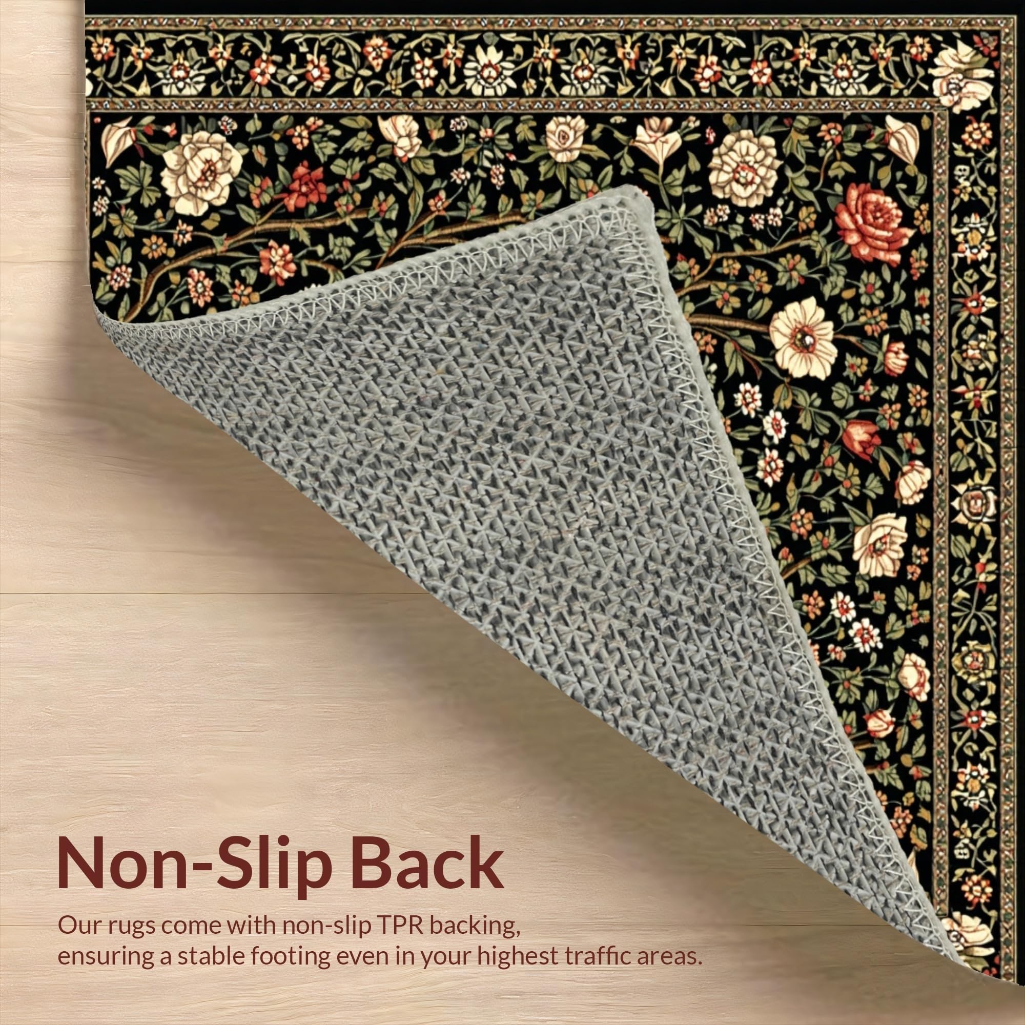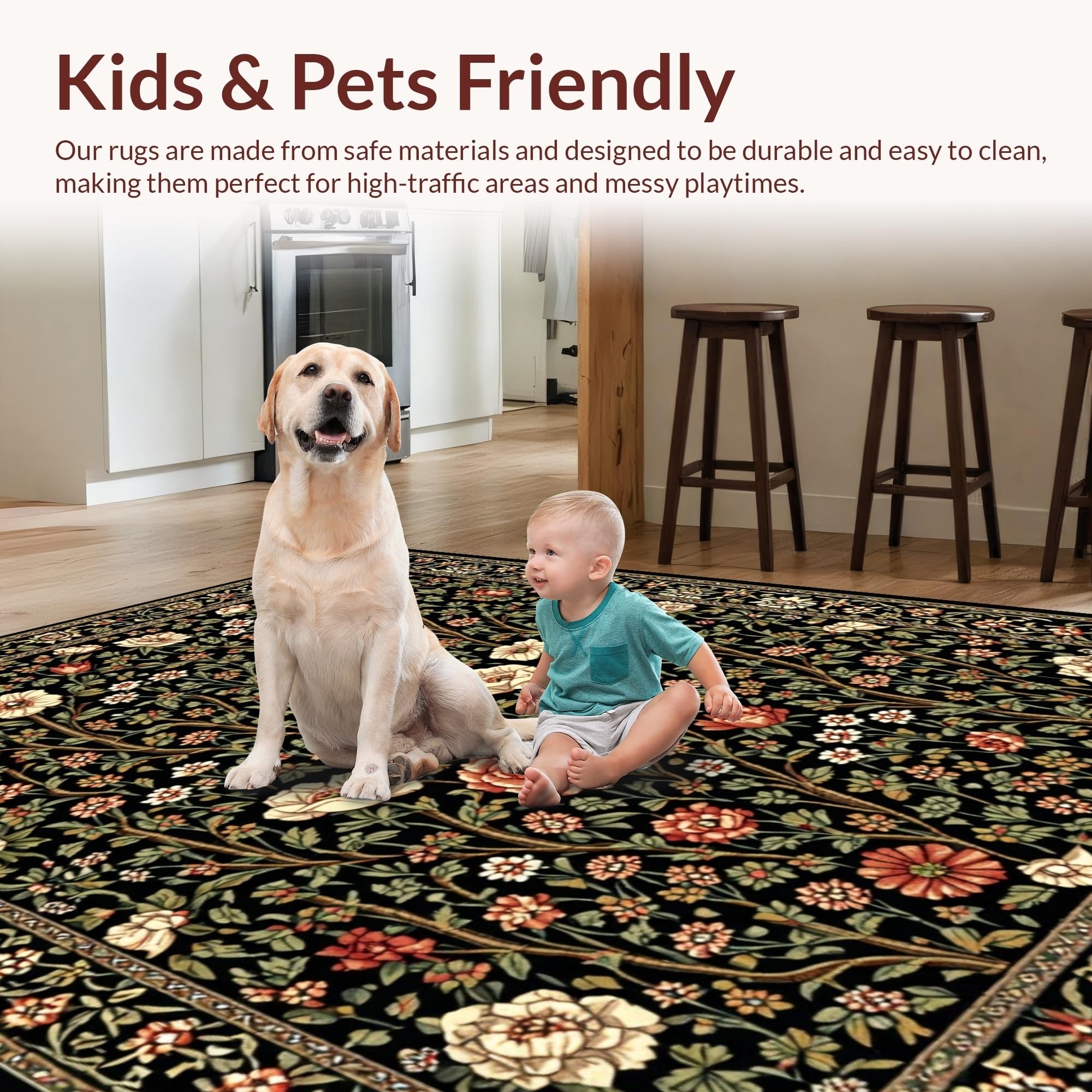 Ultra Soft Area Rug, Non Slip, Stain Resistant, Washable Area Rugs for Living Room, Bedroom, Sophisticated Modern Bloom Design(Black) Overview: