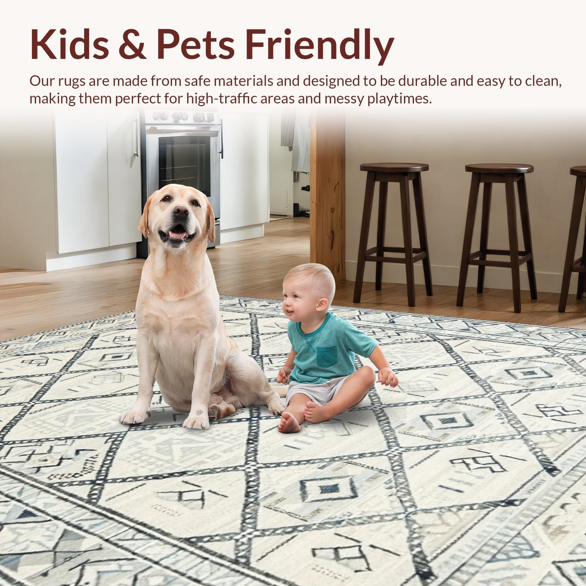 Ultra Soft Area Rug, Non Slip, Stain Resistant, Washable Area Rugs for Living Room, Bedroom, Sophisticated Modern Hexagonal Look(Gray) Overview: