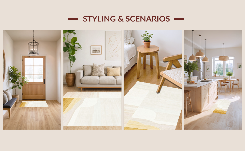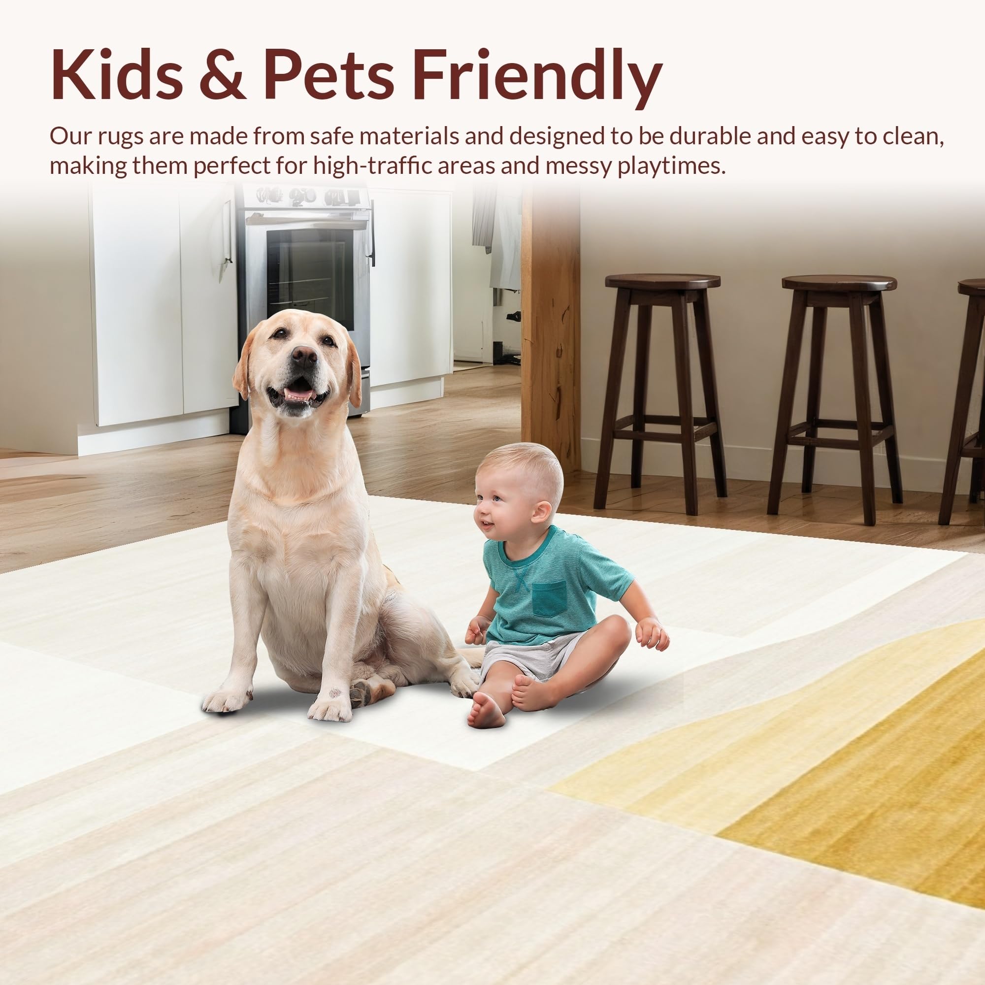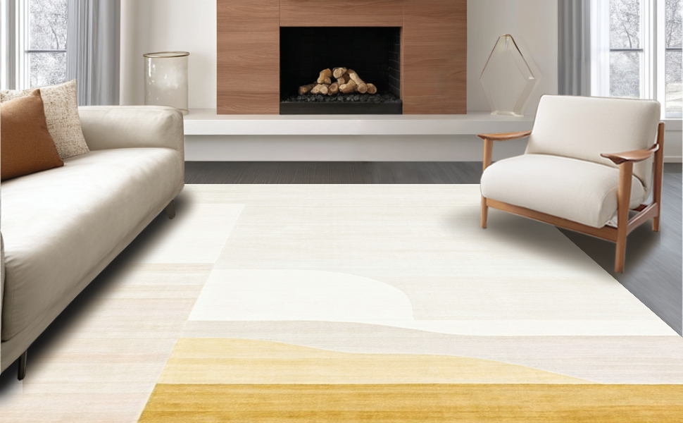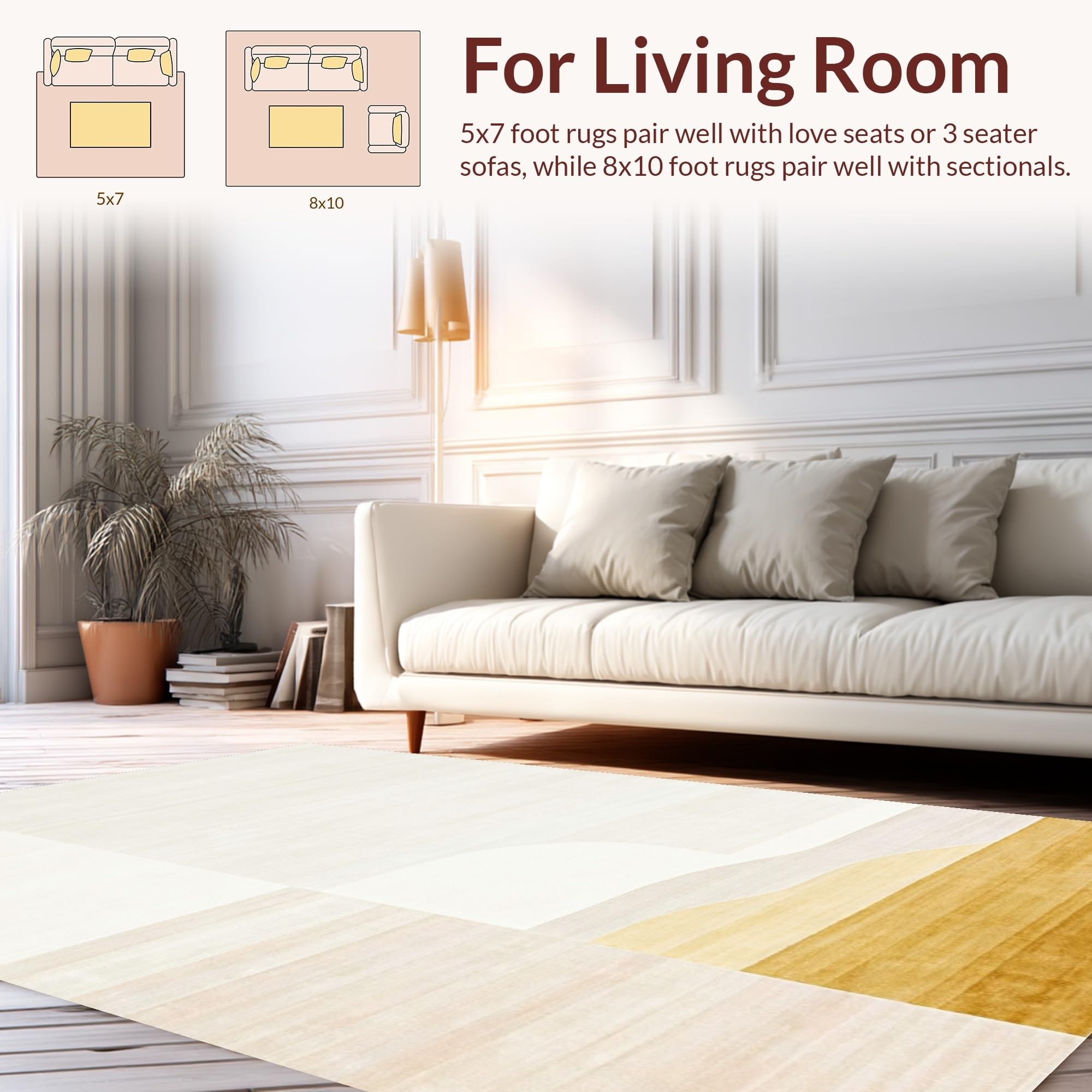 Ultra Soft Area Rug, Non Slip, Stain Resistant, Washable Area Rugs for Living Room, Bedroom, Sophisticated Modern Ombre Palette(Beige) Overview: