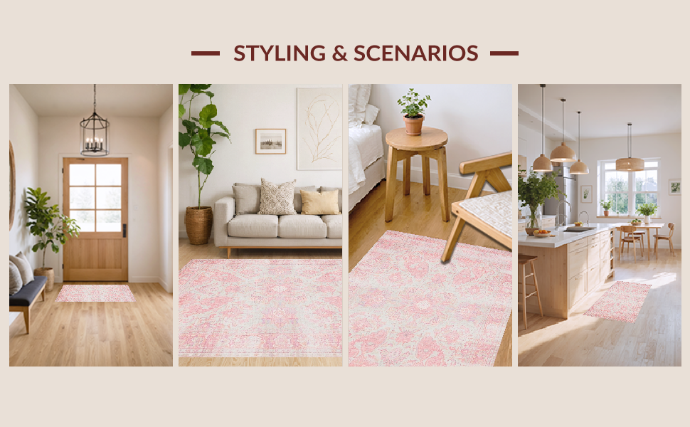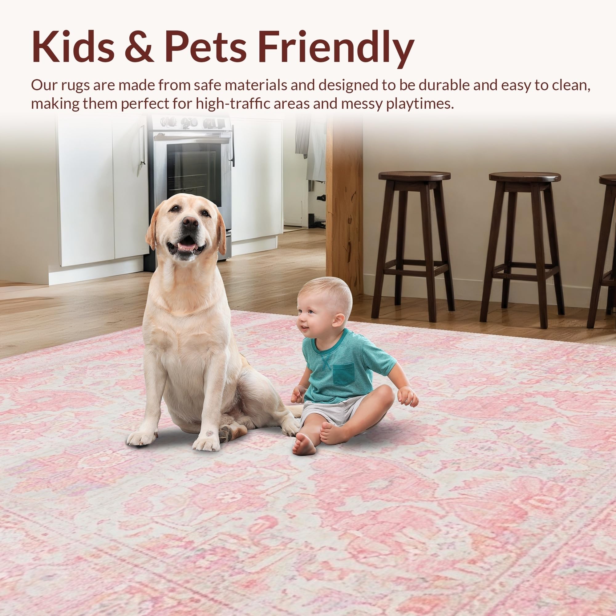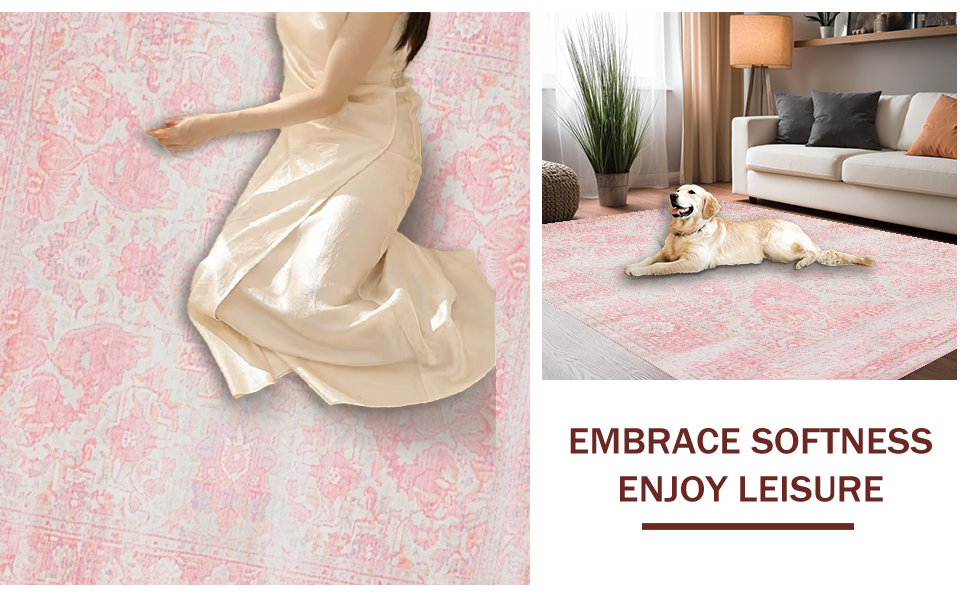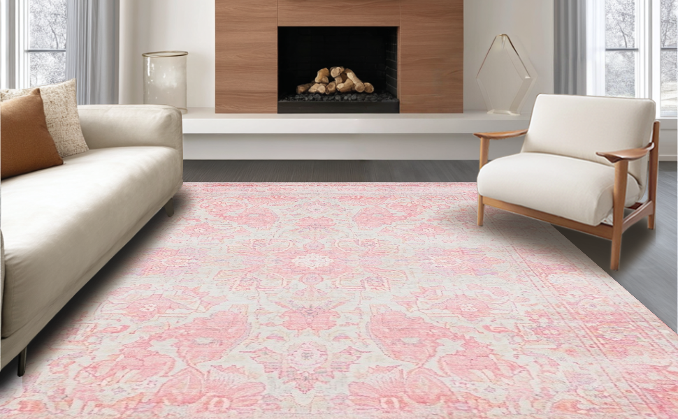 Ultra Soft Area Rug, Non Slip, Stain Resistant, Washable Area Rugs for Living Room, Bedroom, Sophisticated Neutral Color Palette(Pink) Overview: