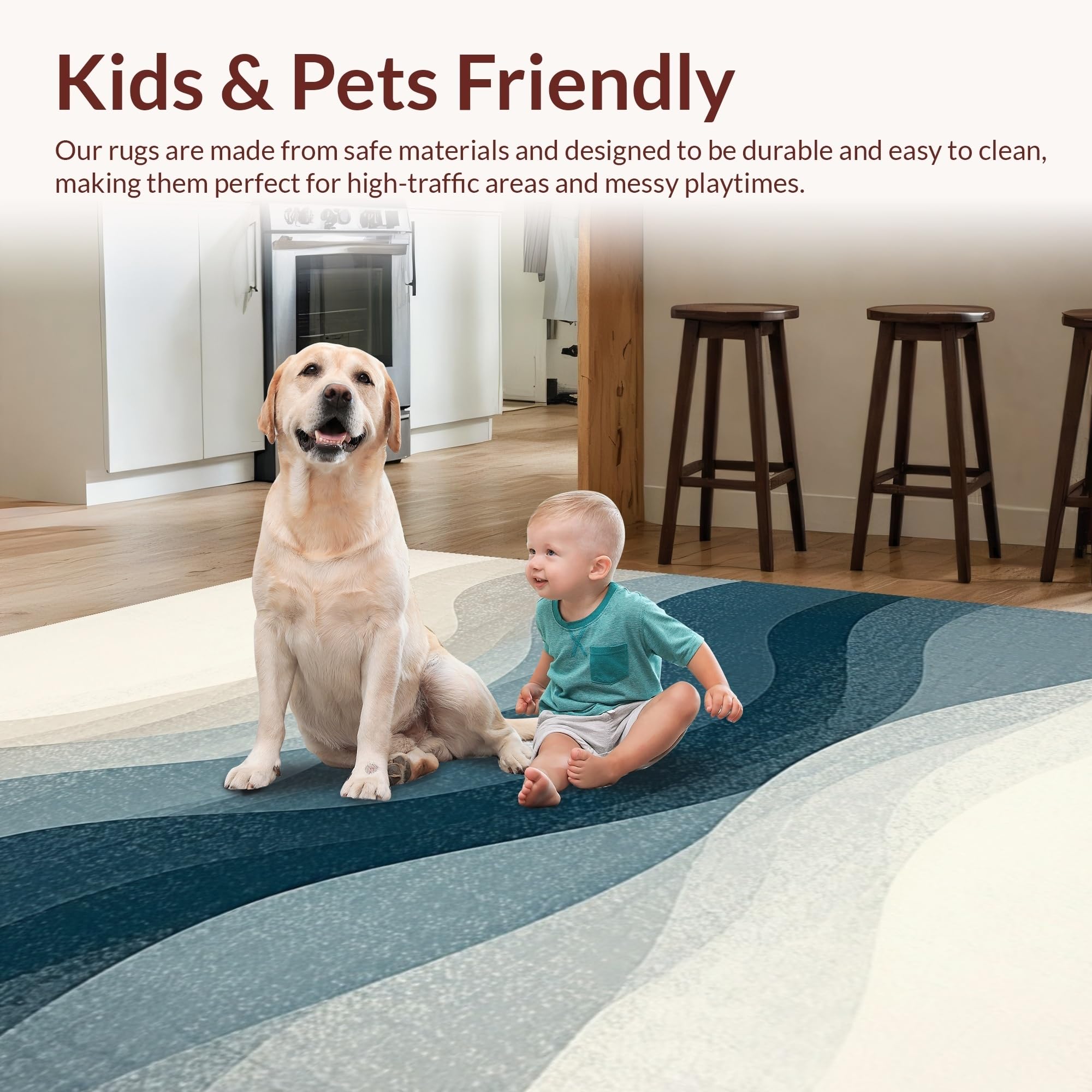 Ultra Soft Area Rug, Non Slip, Stain Resistant, Washable Area Rugs for Living Room, Bedroom, Sophisticated Neutral Fade Design(Beige) Overview: