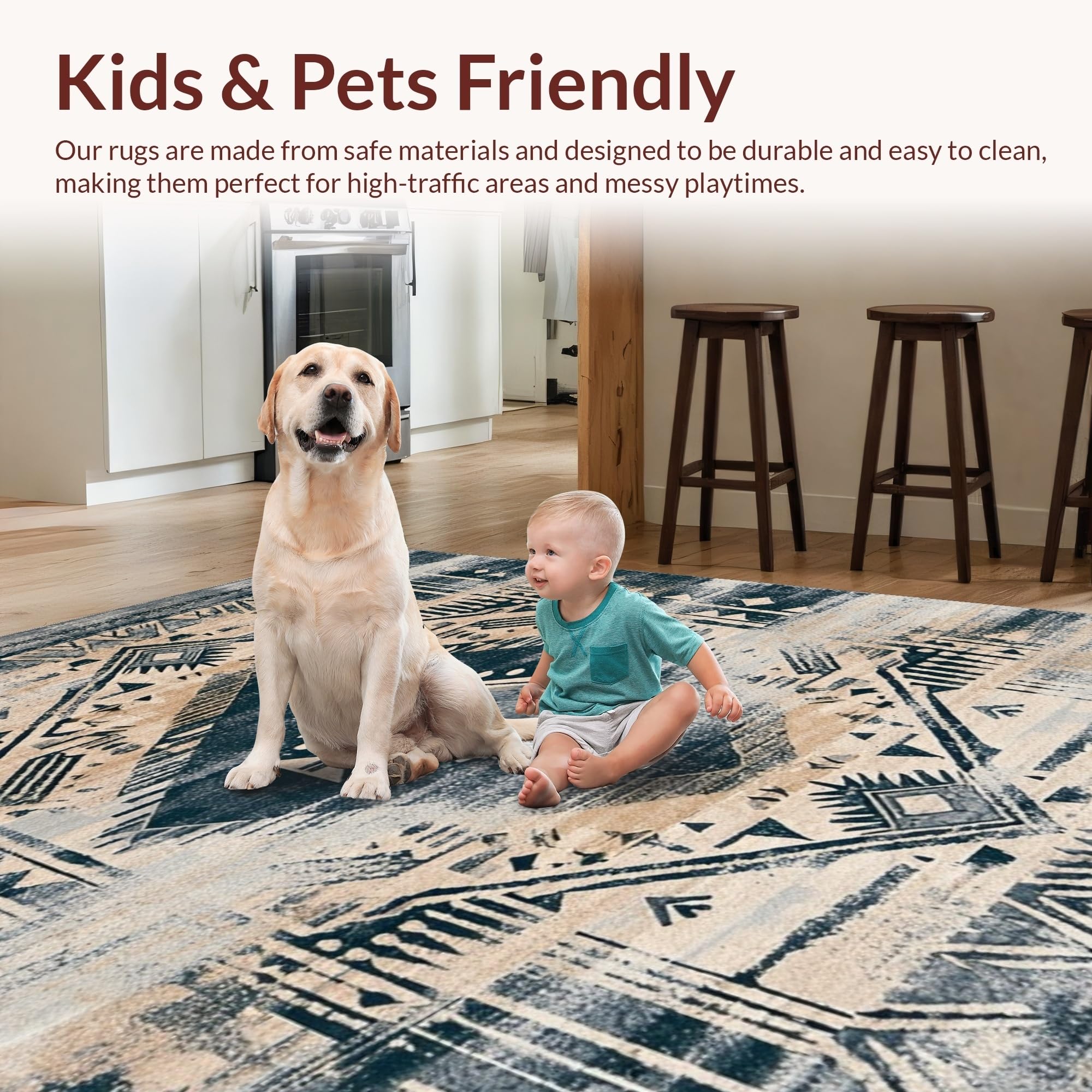 Ultra Soft Area Rug, Non Slip, Stain Resistant, Washable Area Rugs for Living Room, Bedroom, Sophisticated Neutral Toned Trellis(Gray) Overview: