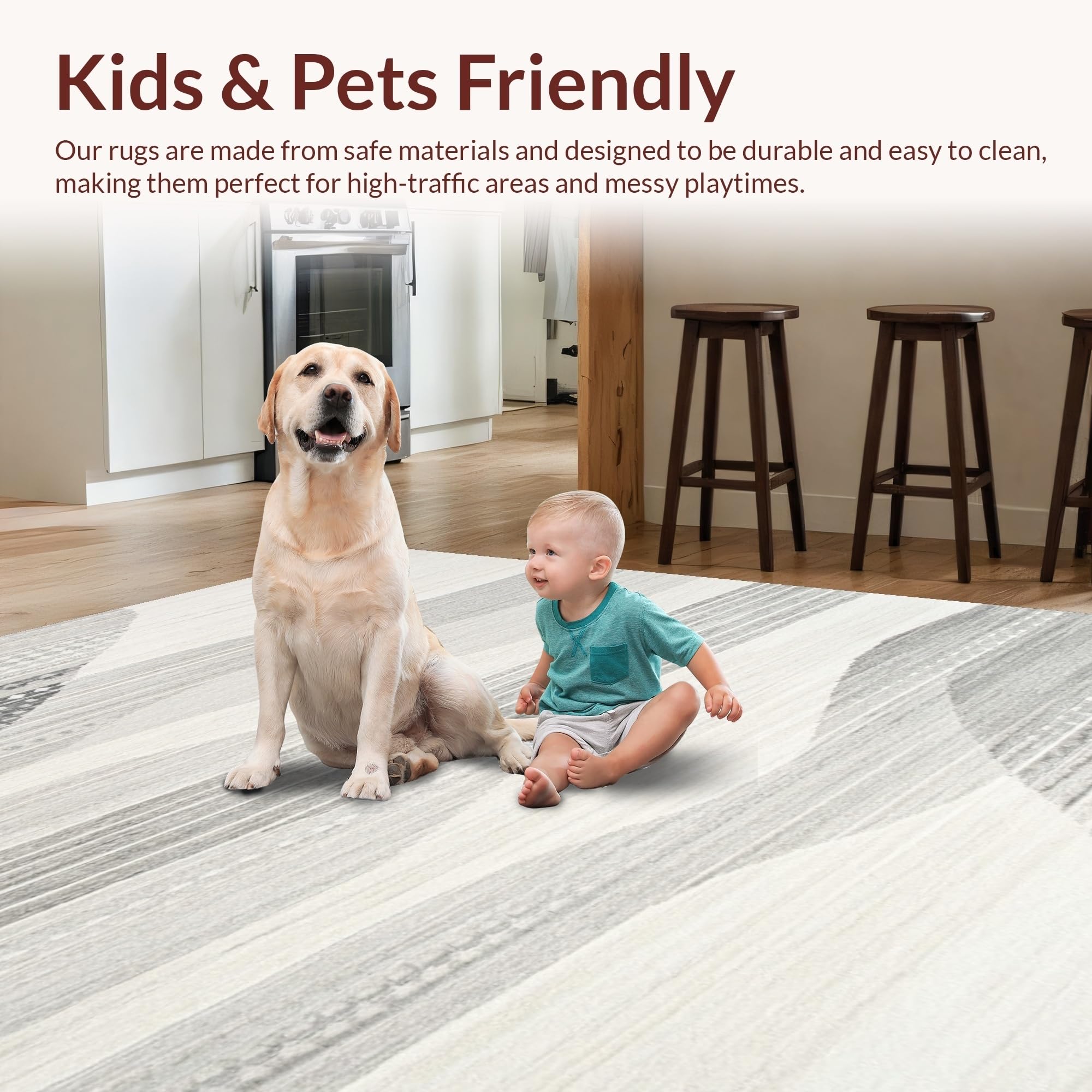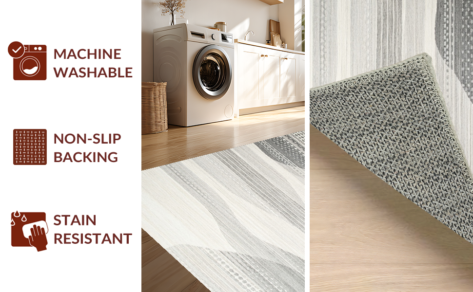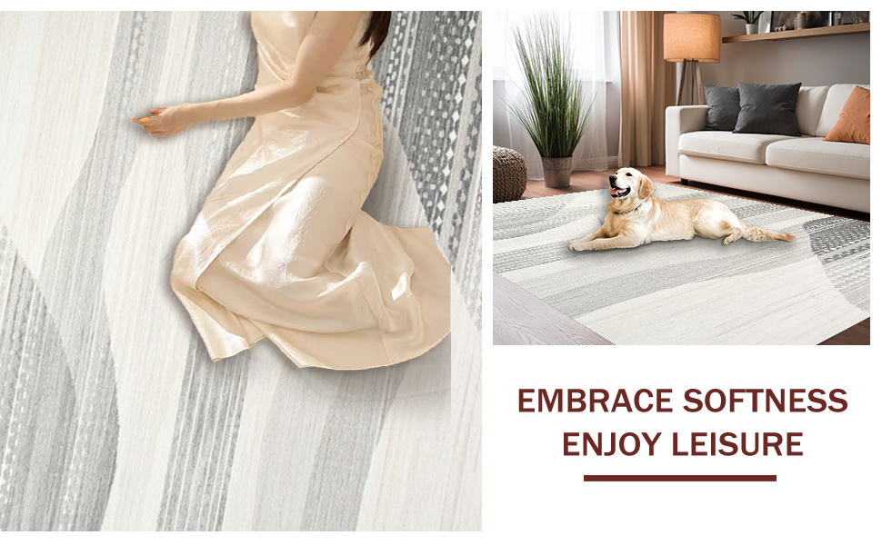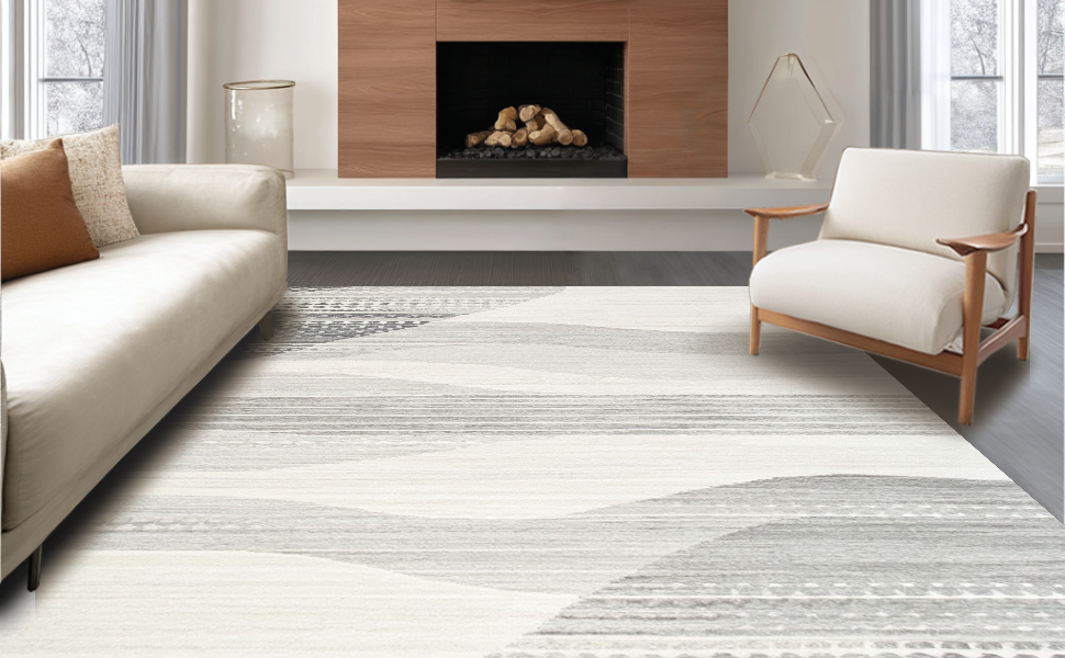Ultra Soft Area Rug, Non Slip, Stain Resistant, Washable Area Rugs for Living Room, Bedroom, Sophisticated Neutral Wave Aesthetic(Gray) Overview:
