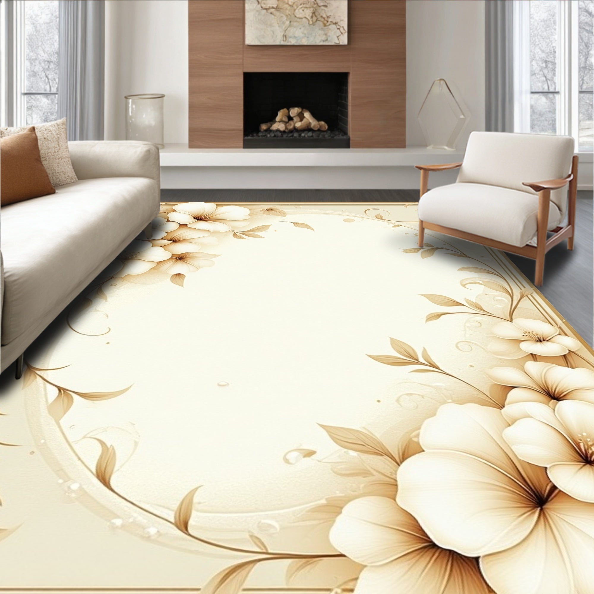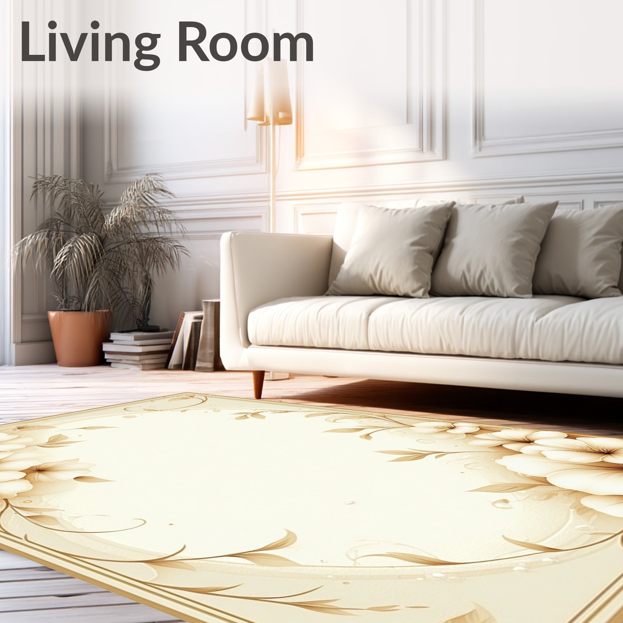 Flatwoven High Traffic Area Rug, Sophisticated Non Slip Bath With Elegant Cream Floral Motif Design, Non Slip, Stain Resistant, Washable Area Rugs for Living Room, Bedroom (Beige) Overview: