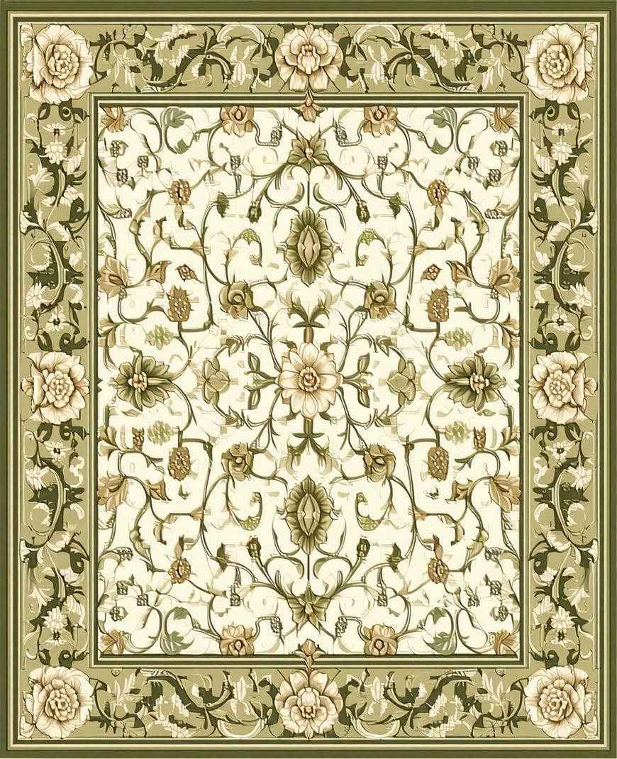 Sophisticated Olive Area with Detailed Scrollwork and Floral Motifs(Beige)