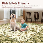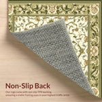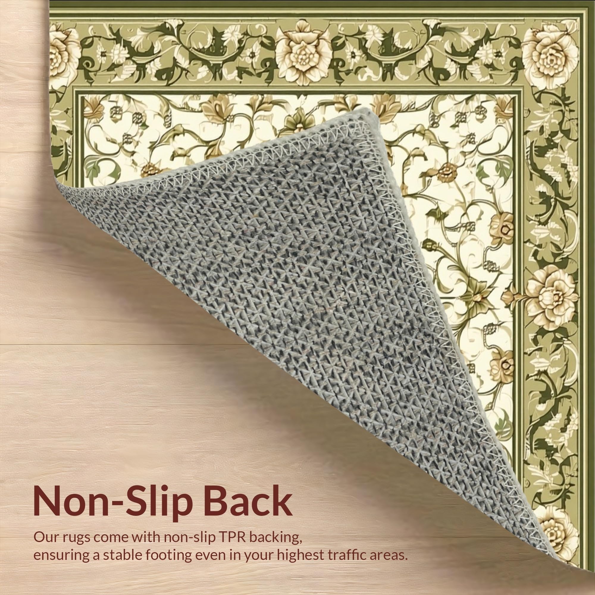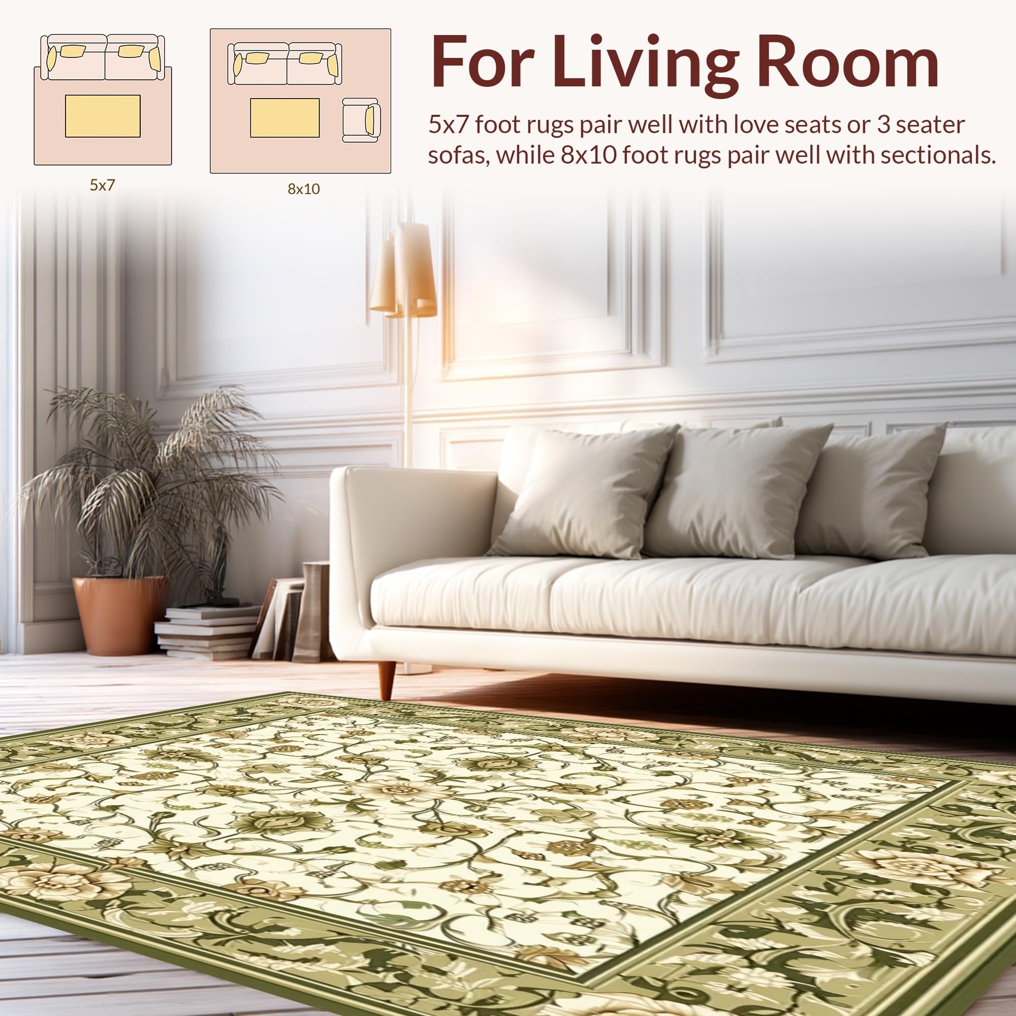 Ultra Soft Area Rug, Non Slip, Stain Resistant, Washable Area Rugs for Living Room, Bedroom, Sophisticated Olive Area with Detailed Scrollwork and Floral Motifs(Beige) Overview: