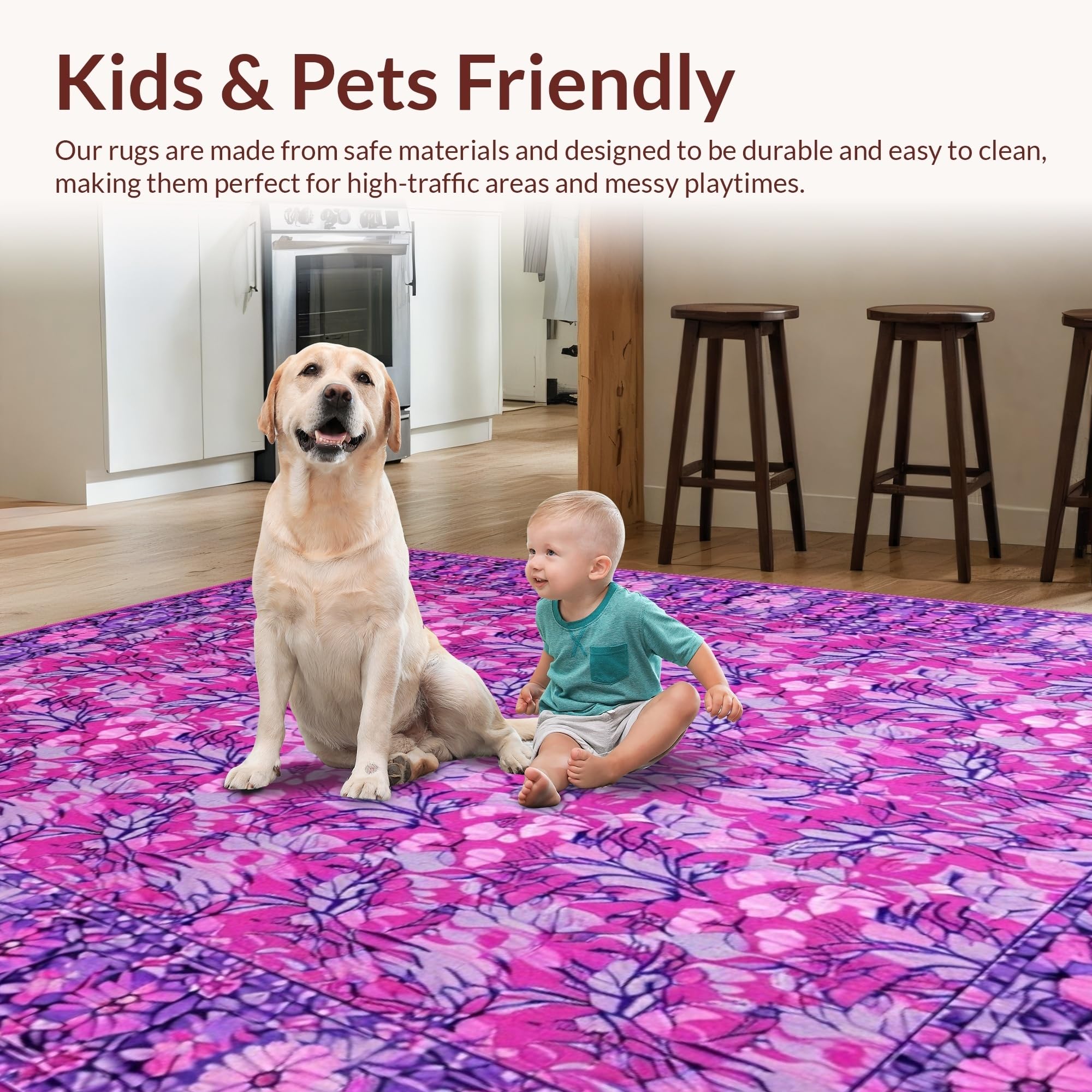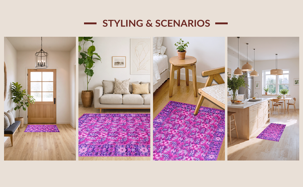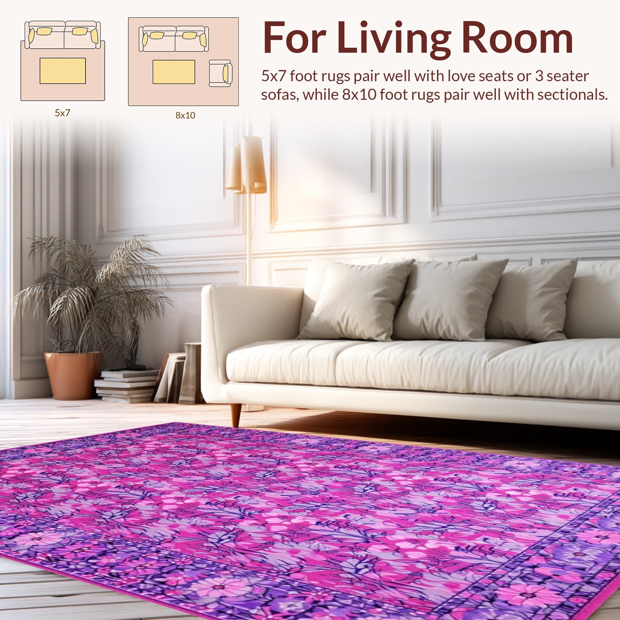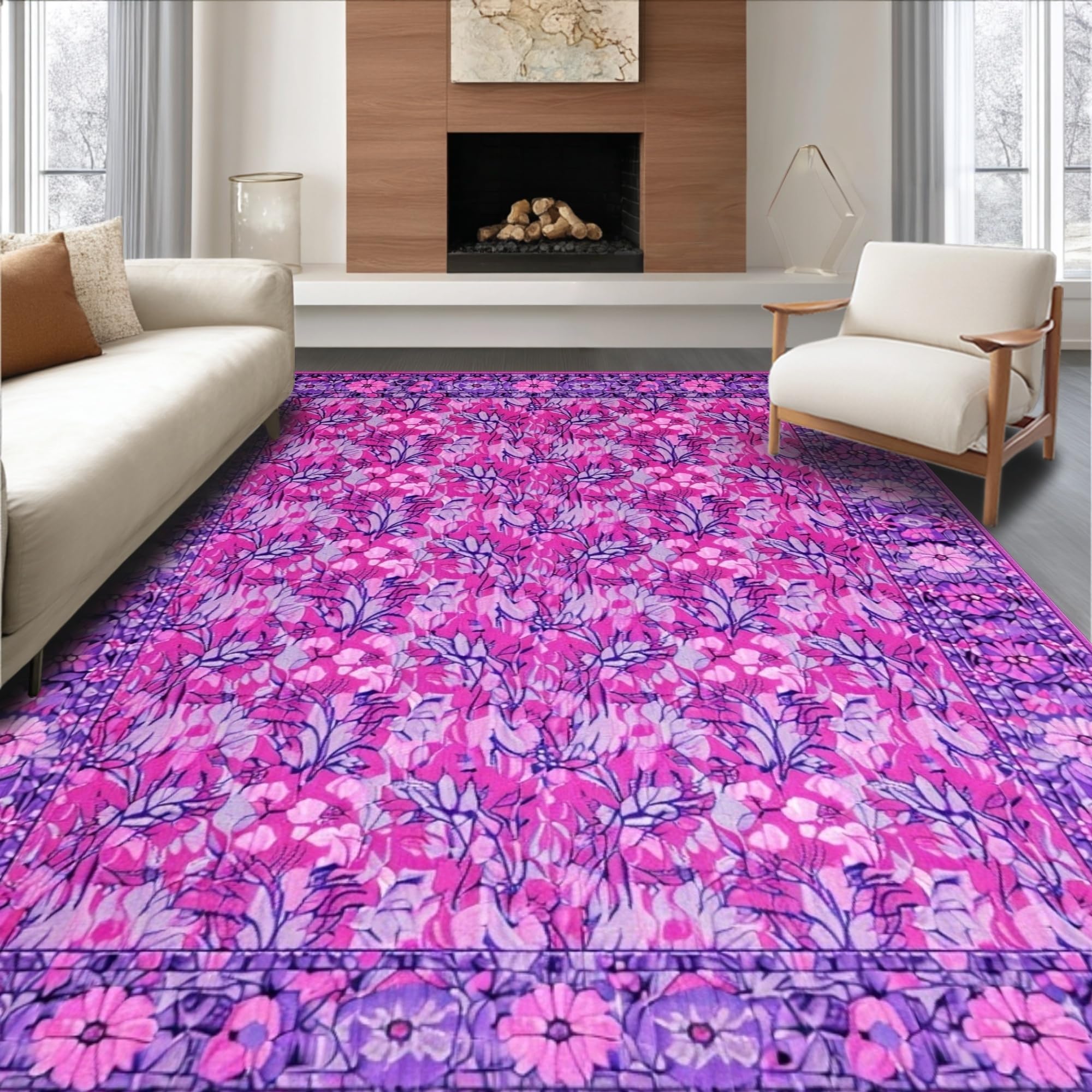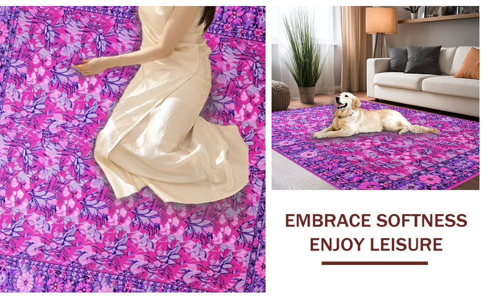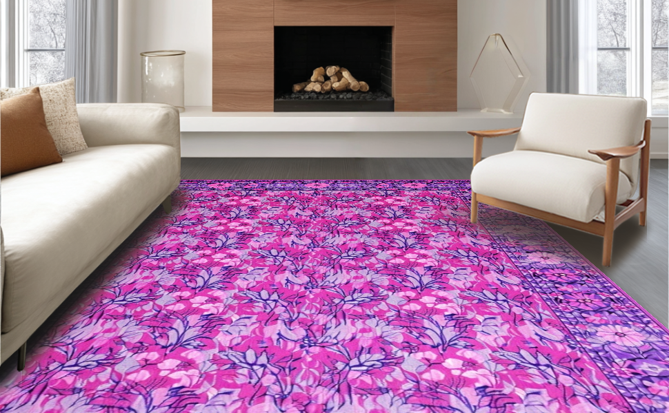 Ultra Soft Area Rug, Non Slip, Stain Resistant, Washable Area Rugs for Living Room, Bedroom, Sophisticated Purple and Blue Floral Blend(Pink) Overview: