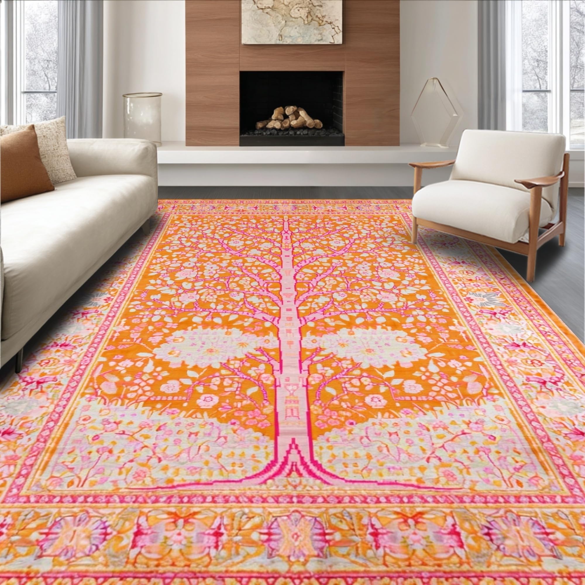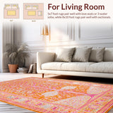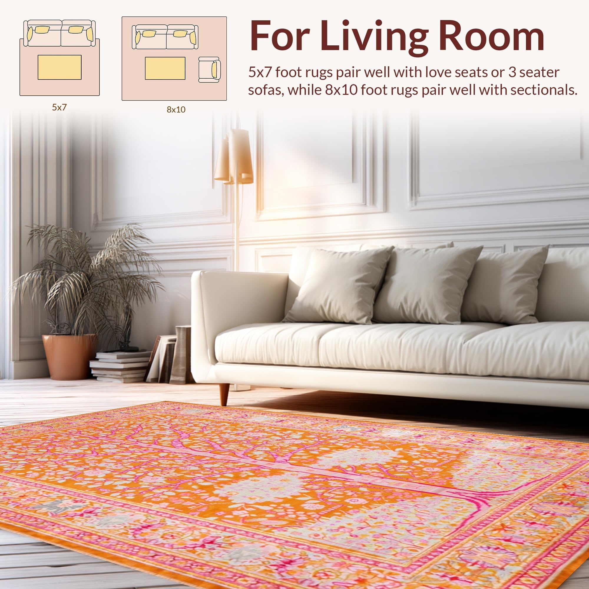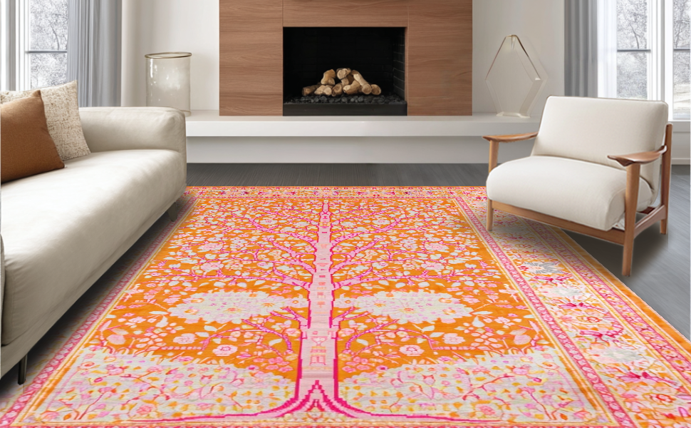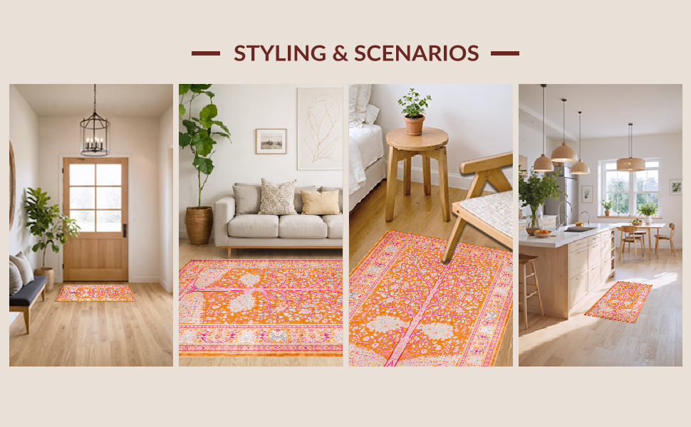 Ultra Soft Area Rug, Non Slip, Stain Resistant, Washable Area Rugs for Living Room, Bedroom, Sophisticated Retro Floral Composition(Orange) Overview: