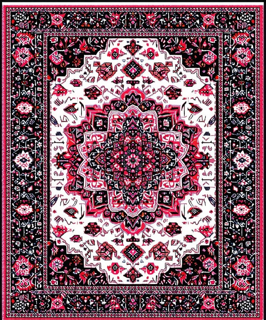 Ultra Soft Area Rug, Non Slip, Stain Resistant, Washable Area Rugs for Living Room, Bedroom, Sophisticated Round Geometric Accent(Black) Overview:
