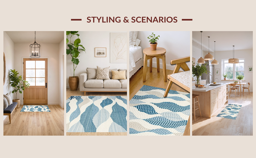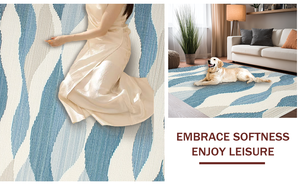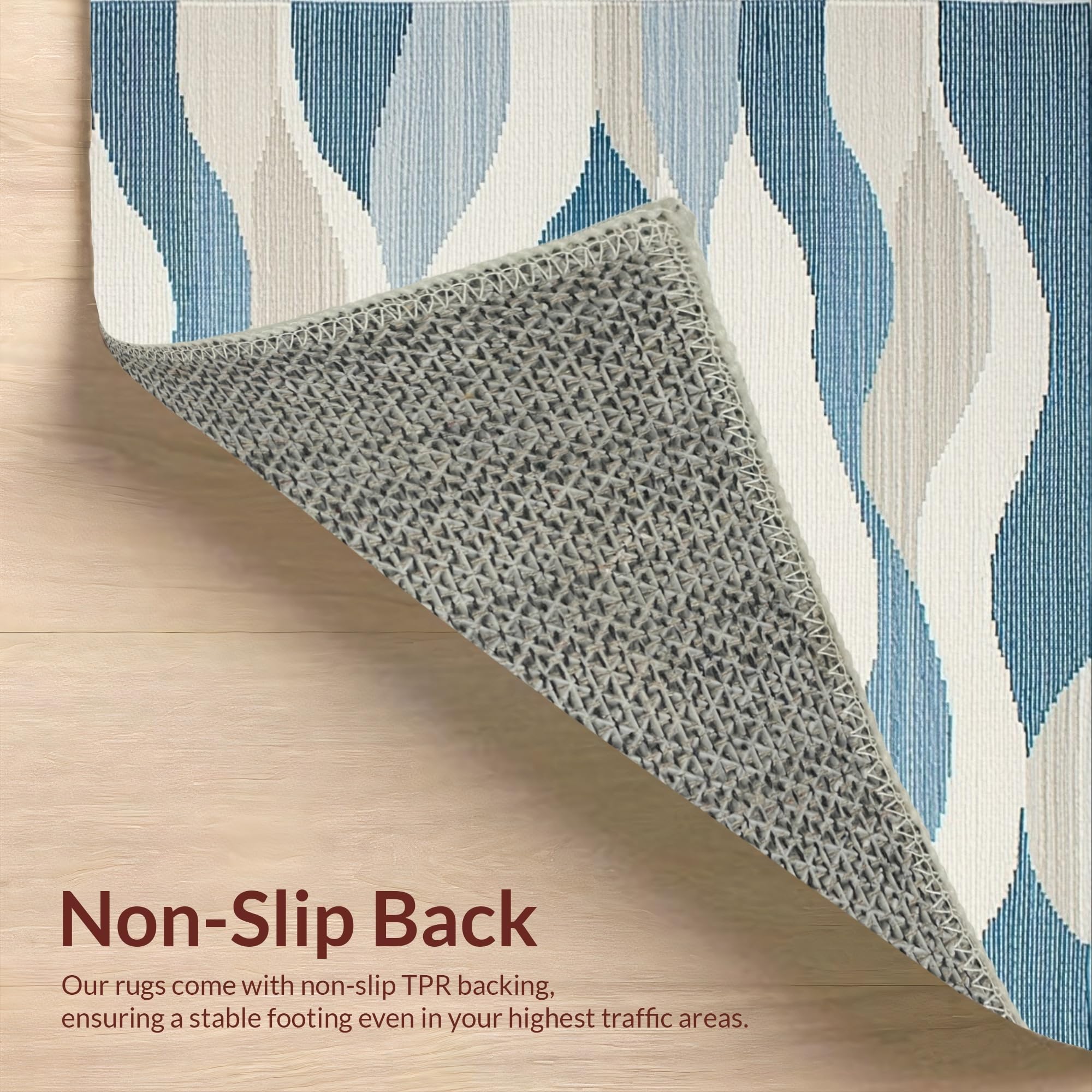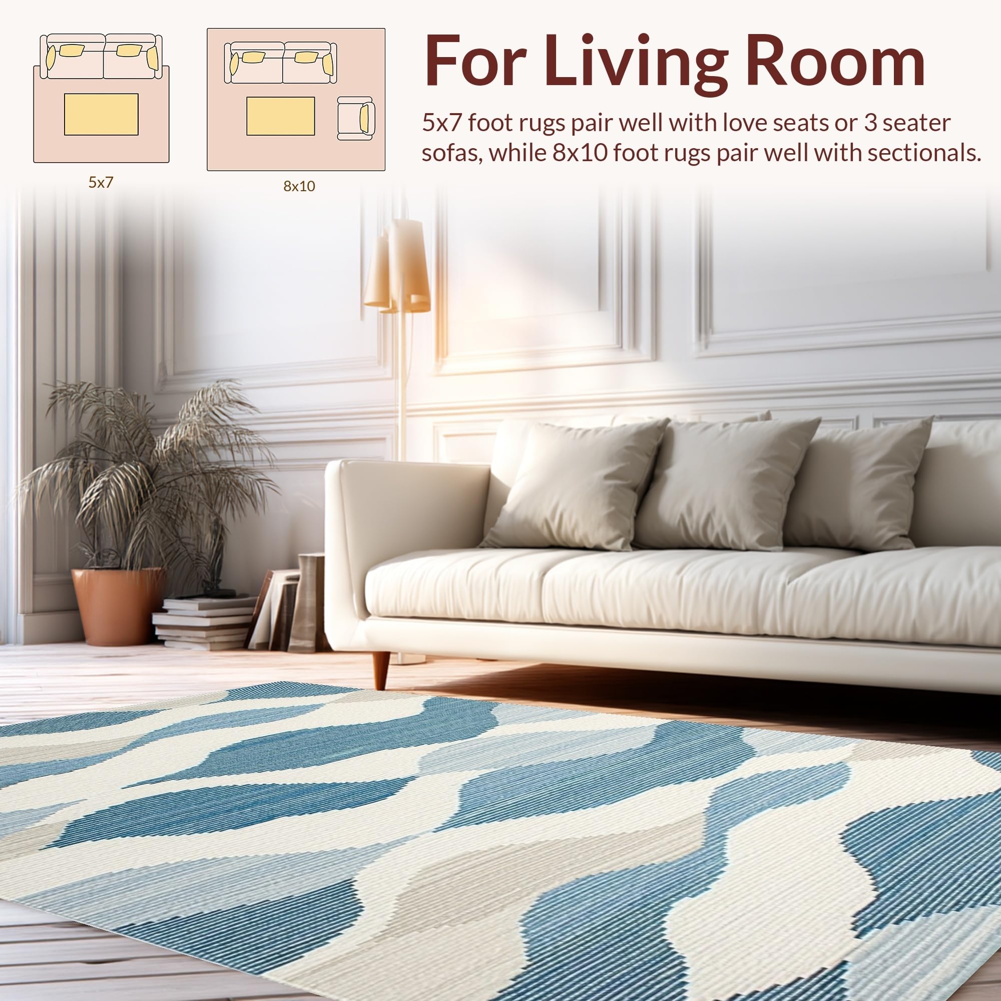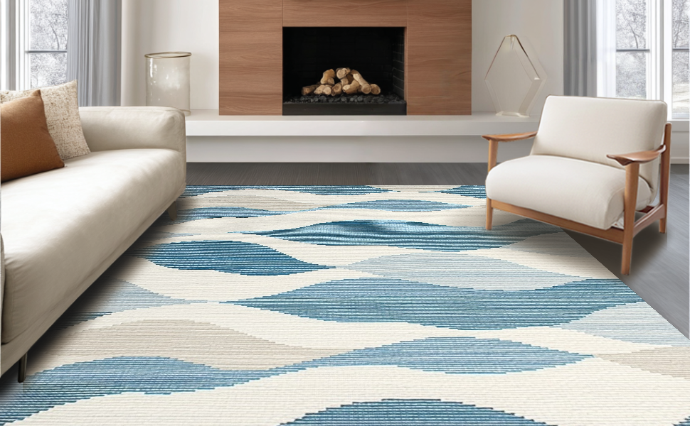 Ultra Soft Area Rug, Non Slip, Stain Resistant, Washable Area Rugs for Living Room, Bedroom, Sophisticated Soft Blue Ripple Design(Blue) Overview: