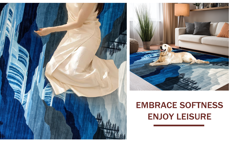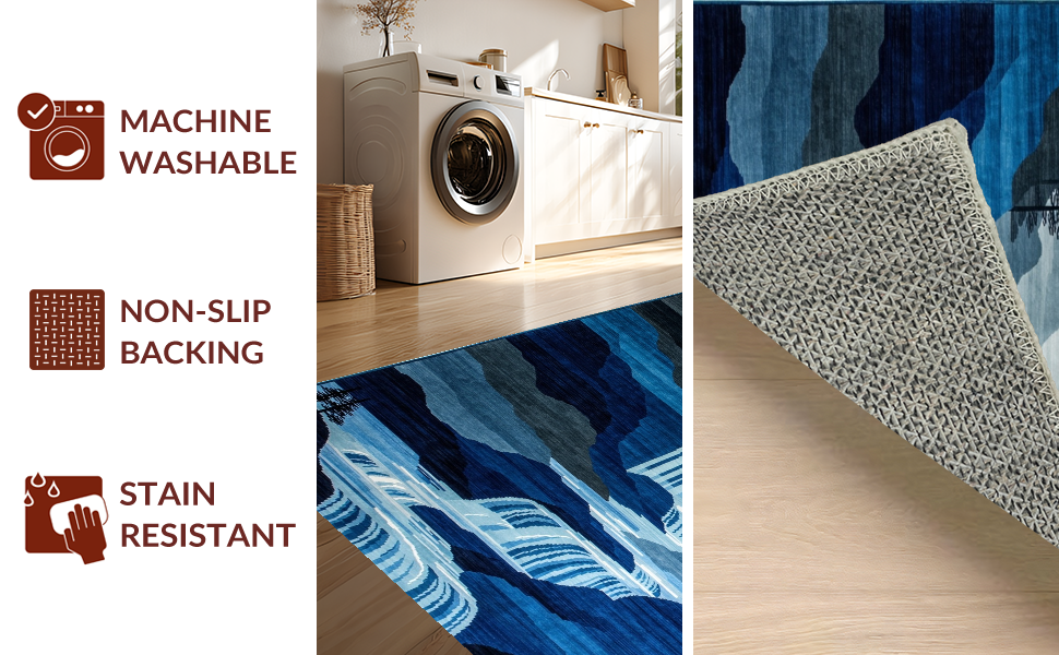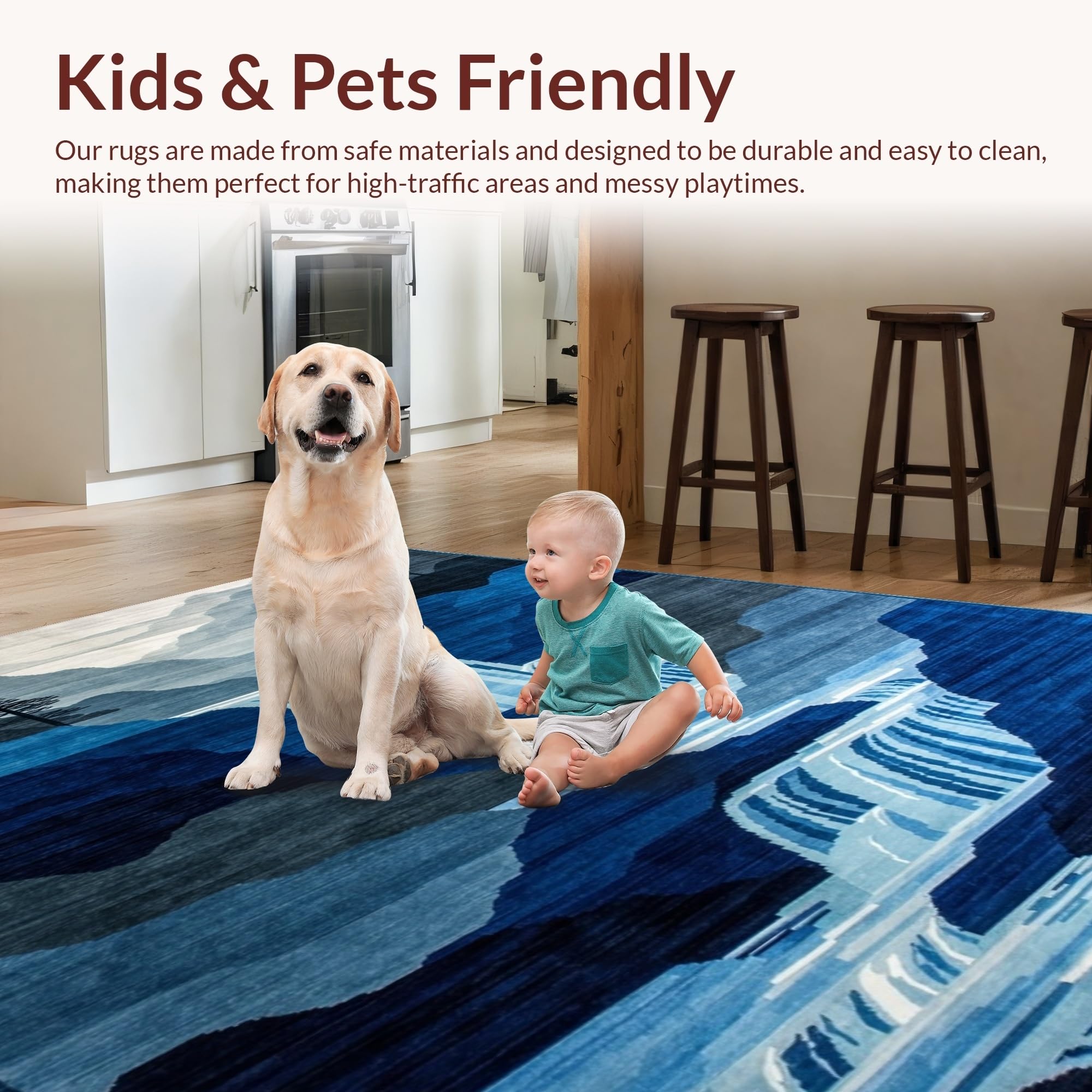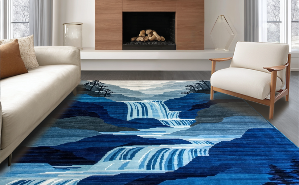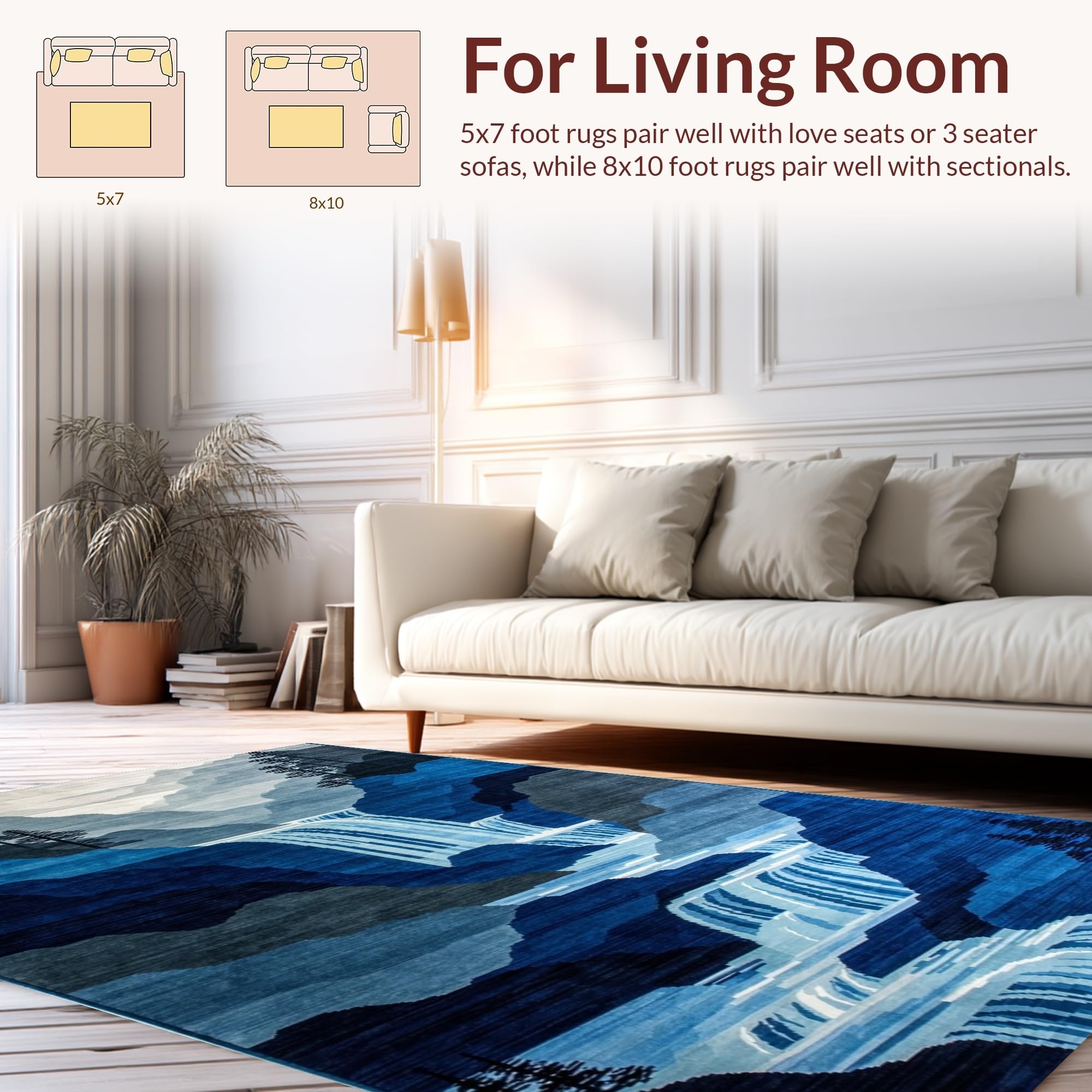 Ultra Soft Area Rug, Non Slip, Stain Resistant, Washable Area Rugs for Living Room, Bedroom, Sophisticated Soft Hue Waves(Blue) Overview: