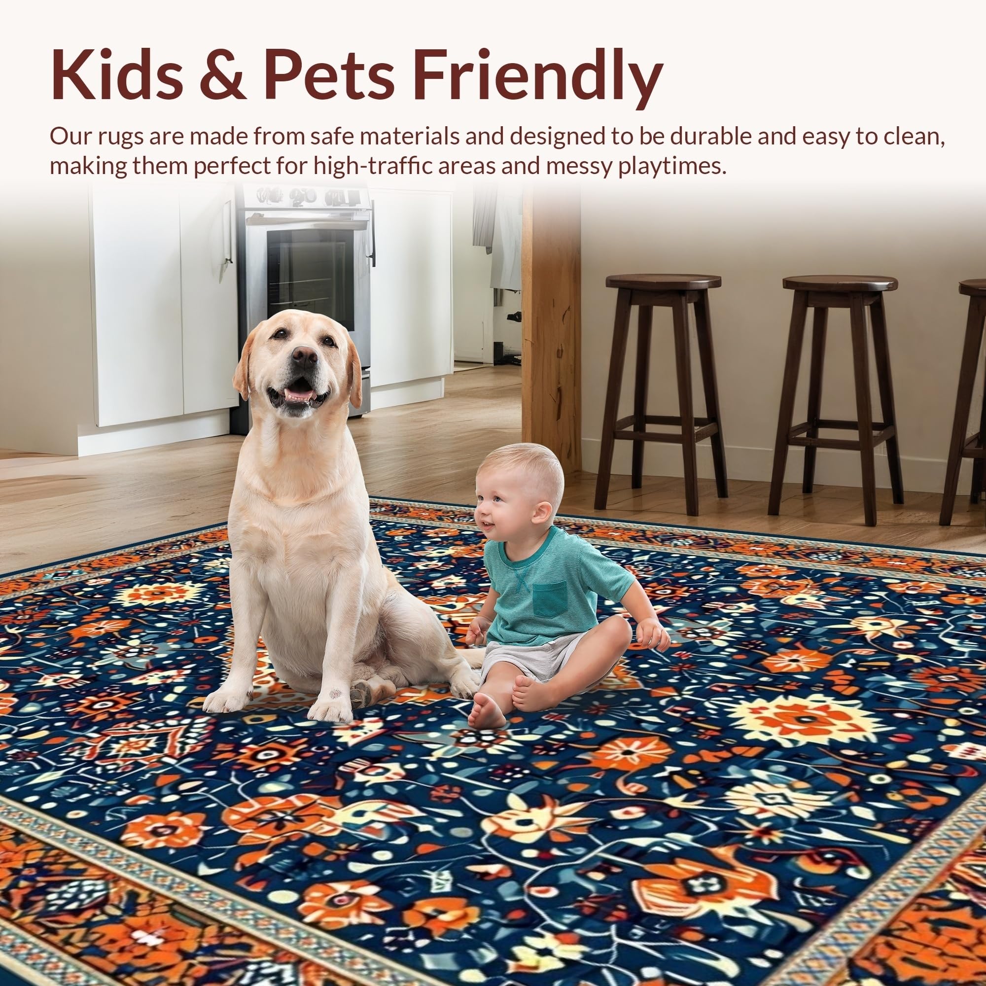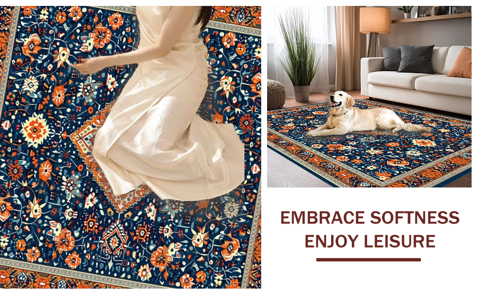 Ultra Soft Area Rug, Non Slip, Stain Resistant, Washable Area Rugs for Living Room, Bedroom, Sophisticated Soft Pastel Motif(Blue) Overview: