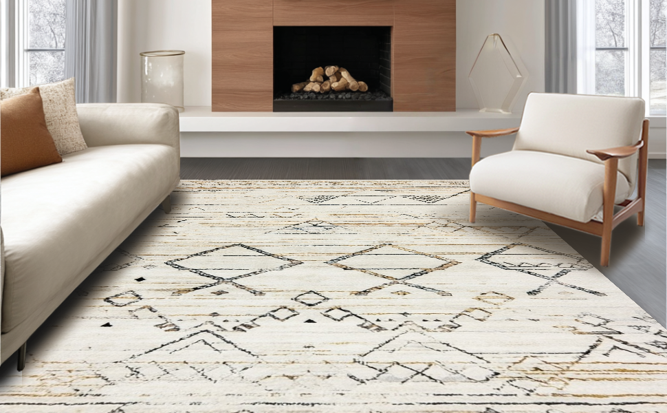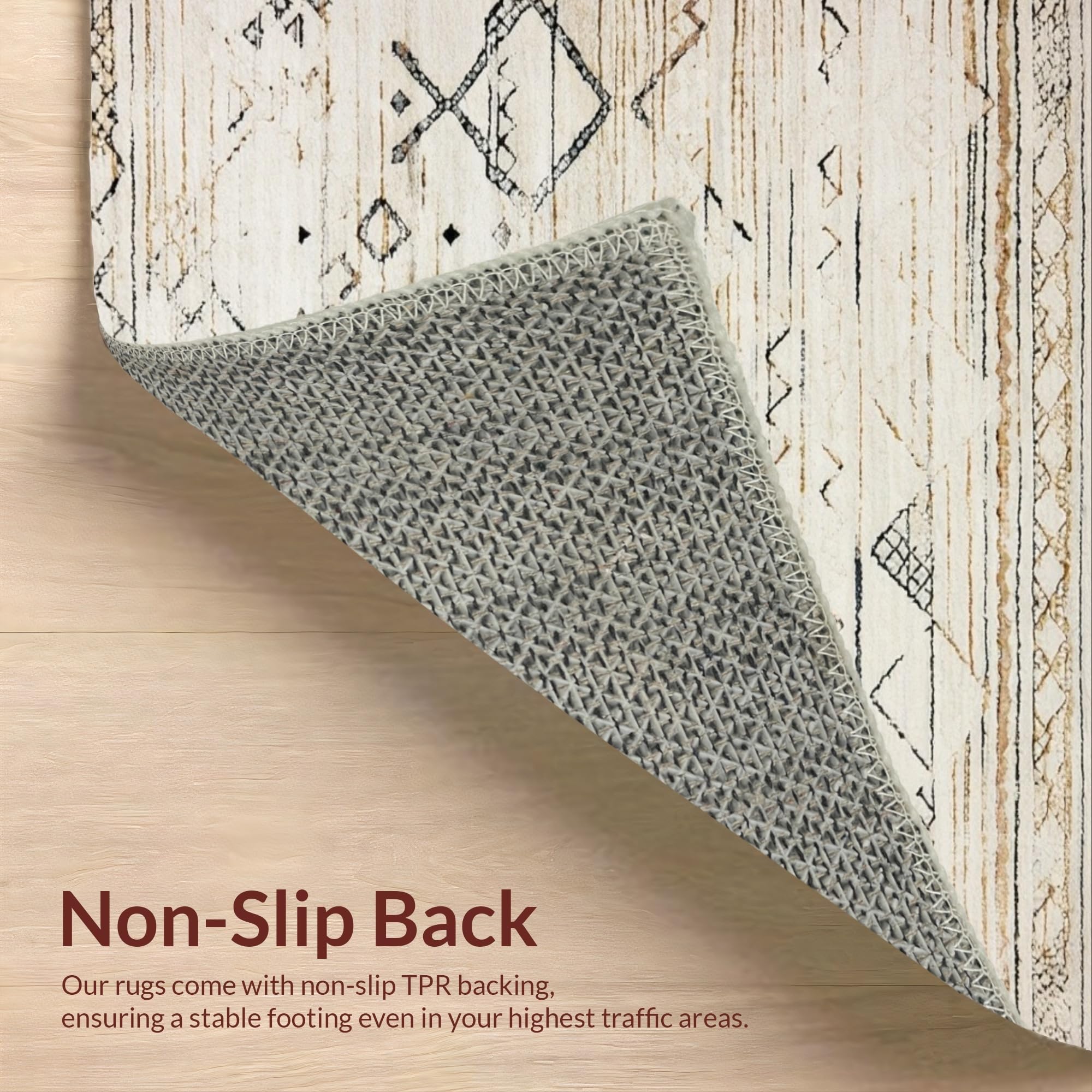 Ultra Soft Area Rug, Non Slip, Stain Resistant, Washable Area Rugs for Living Room, Bedroom, Sophisticated Textured Linear Patterns(Beige) Overview: