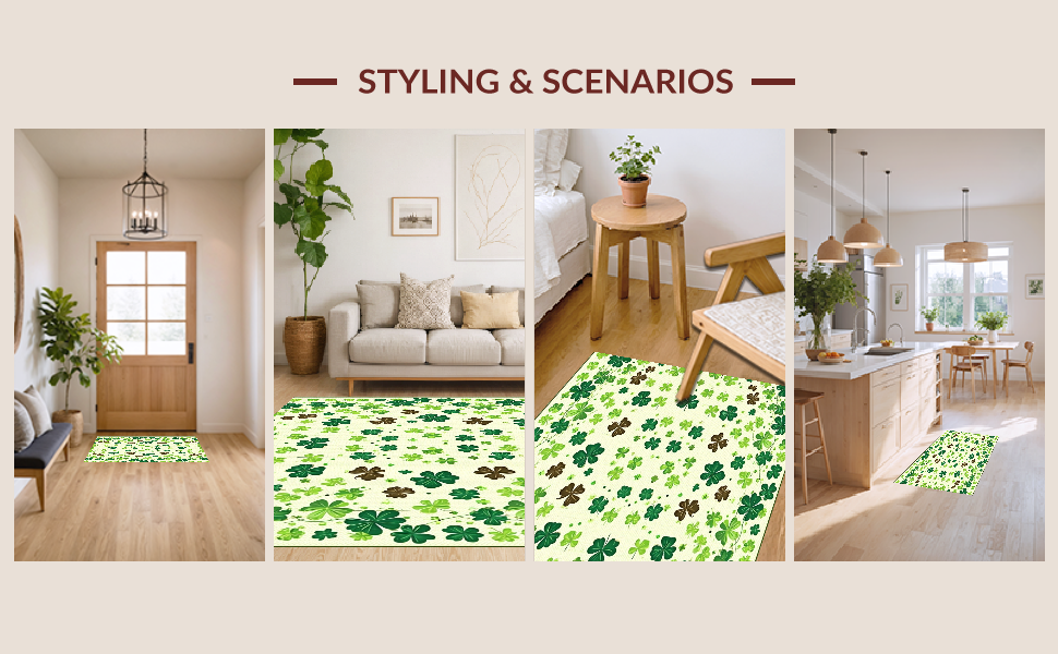 Ultra Soft Area Rug, Non Slip, Stain Resistant, Washable Area Rugs for Living Room, Bedroom, Sophisticated Textured Patterned Welcome(Green) Overview: