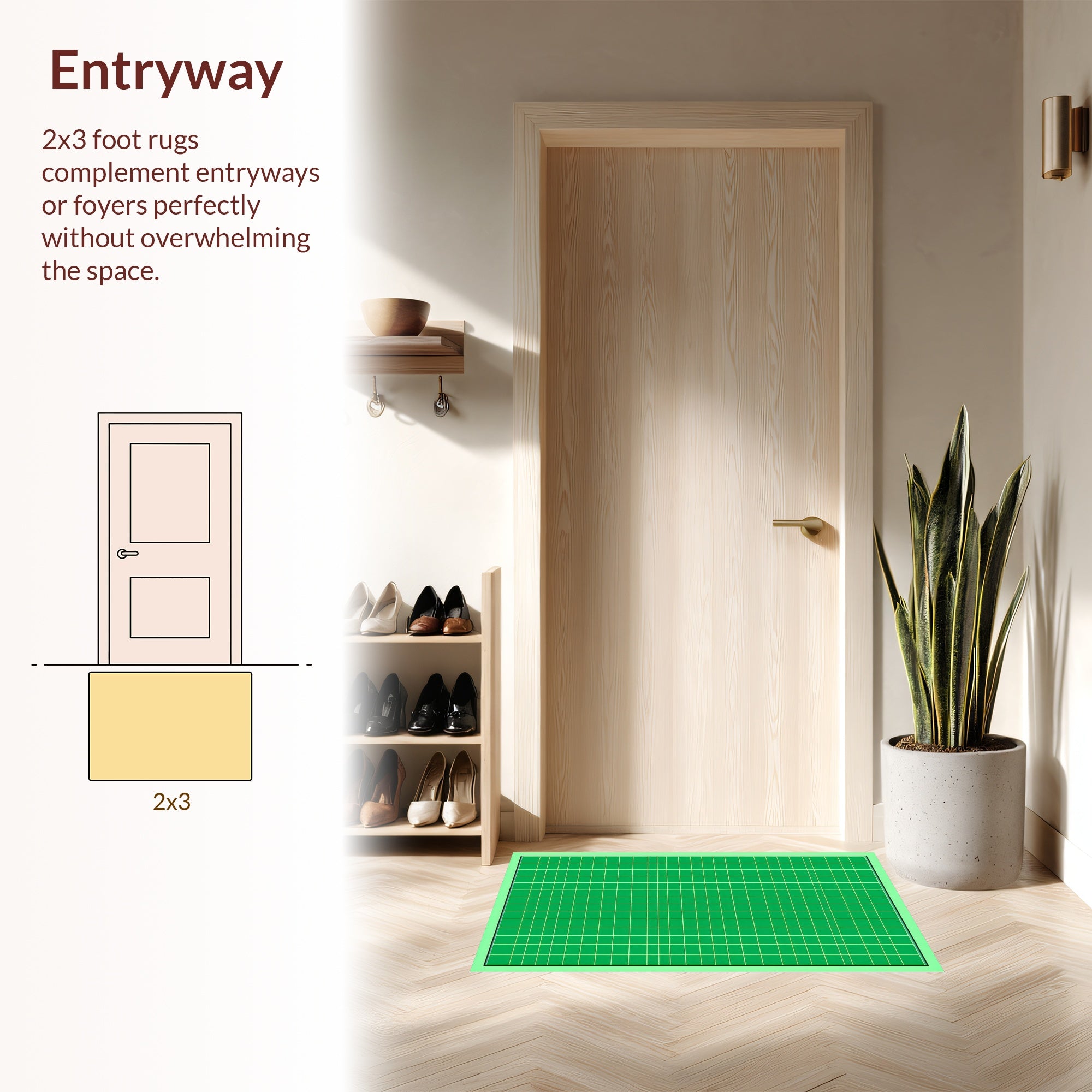 Flatwoven High Traffic Area Rug, Sophisticated Tiled Green Composition, Non Slip, Stain Resistant, Washable Area Rugs for Living Room, Bedroom (Green) Overview:
