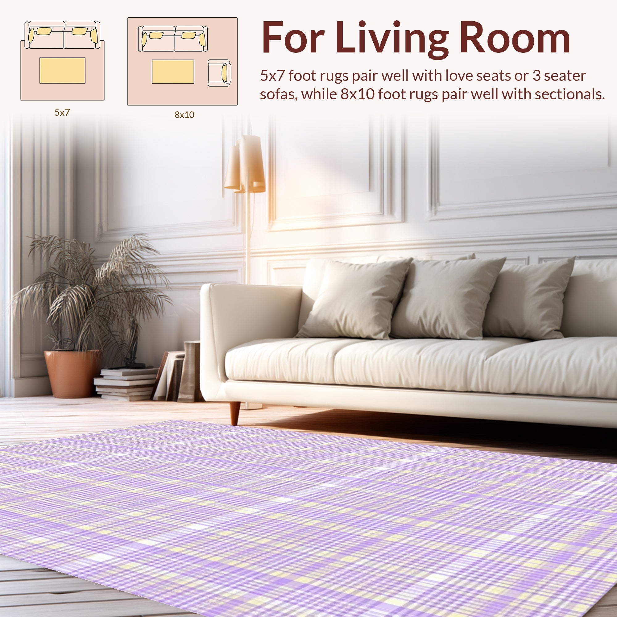 Flatwoven High Traffic Area Rug, Sophisticated Transitional Textured Appeal, Non Slip, Stain Resistant, Washable Area Rugs for Living Room, Bedroom (Purple) Overview: