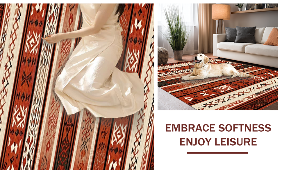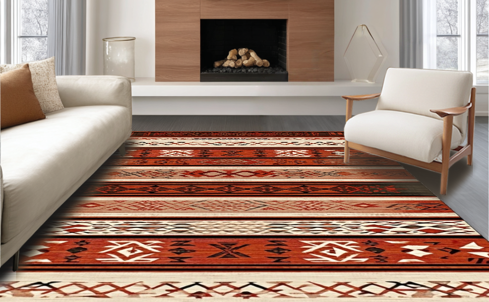 Ultra Soft Area Rug, Non Slip, Stain Resistant, Washable Area Rugs for Living Room, Bedroom, Sophisticated Trellis Design in Rust Tones(Red) Overview: