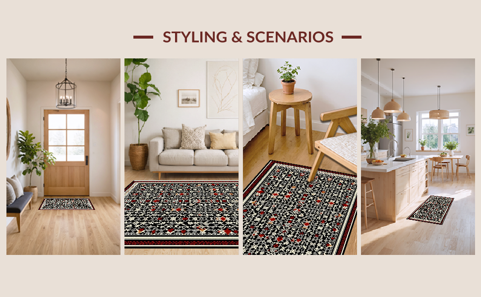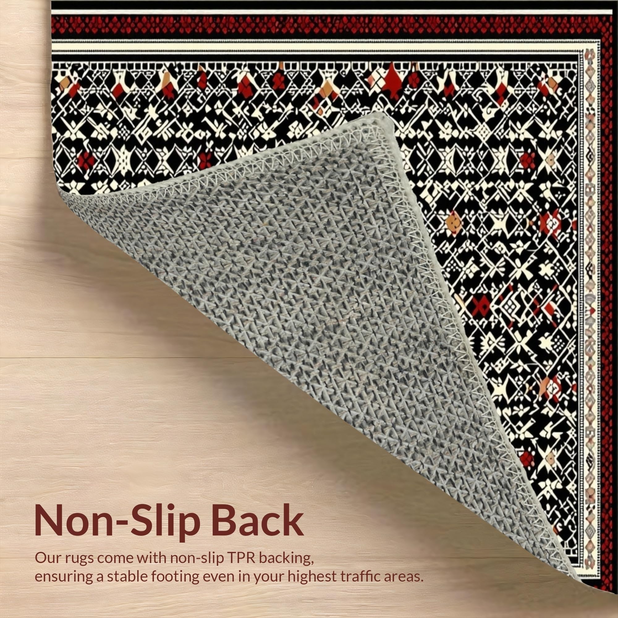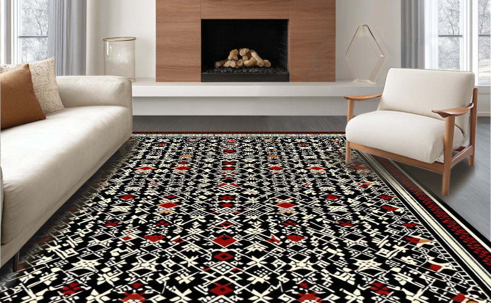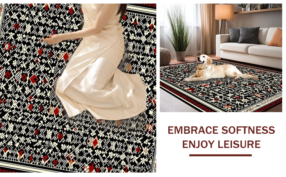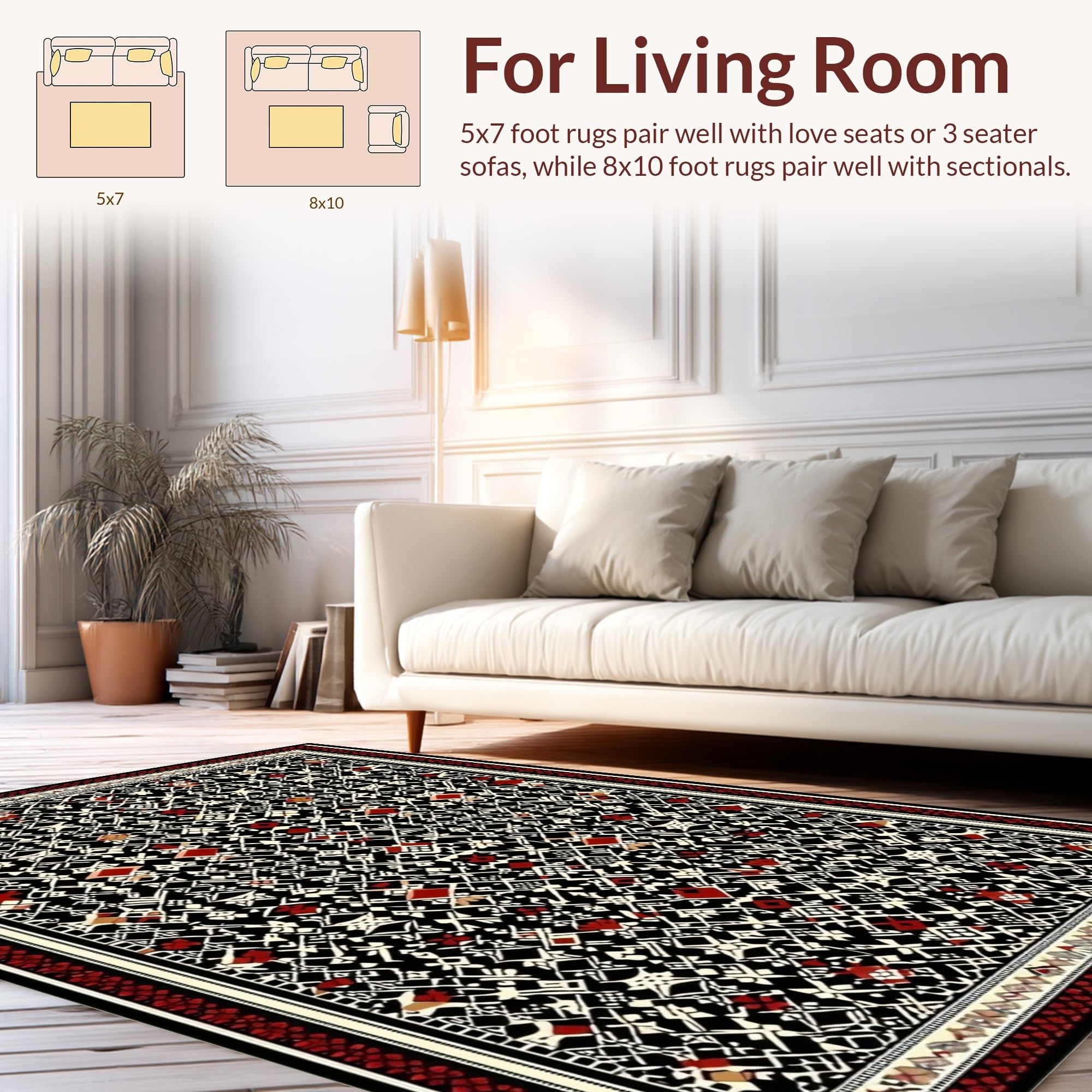 Ultra Soft Area Rug, Non Slip, Stain Resistant, Washable Area Rugs for Living Room, Bedroom, Sophisticated Trellis Inspired Aesthetic(Black) Overview: