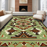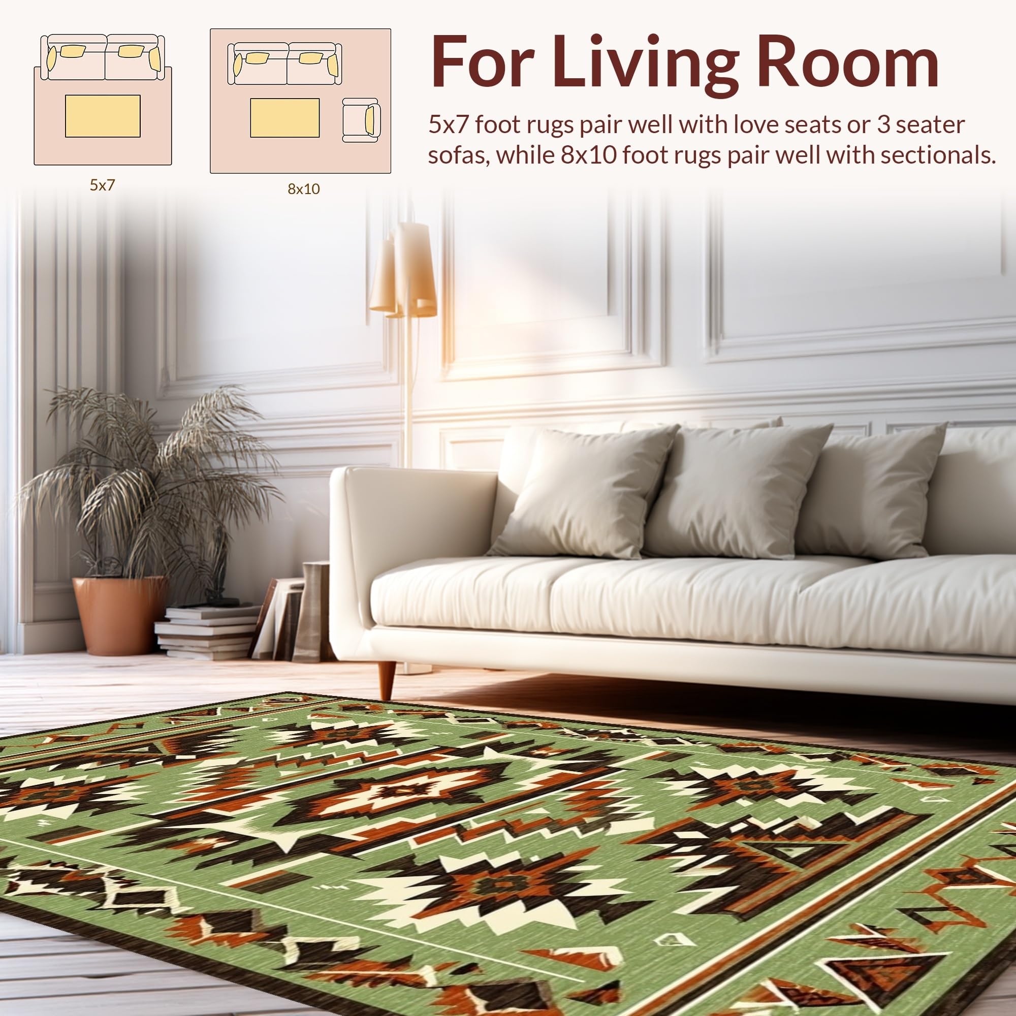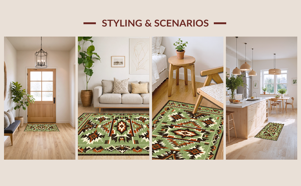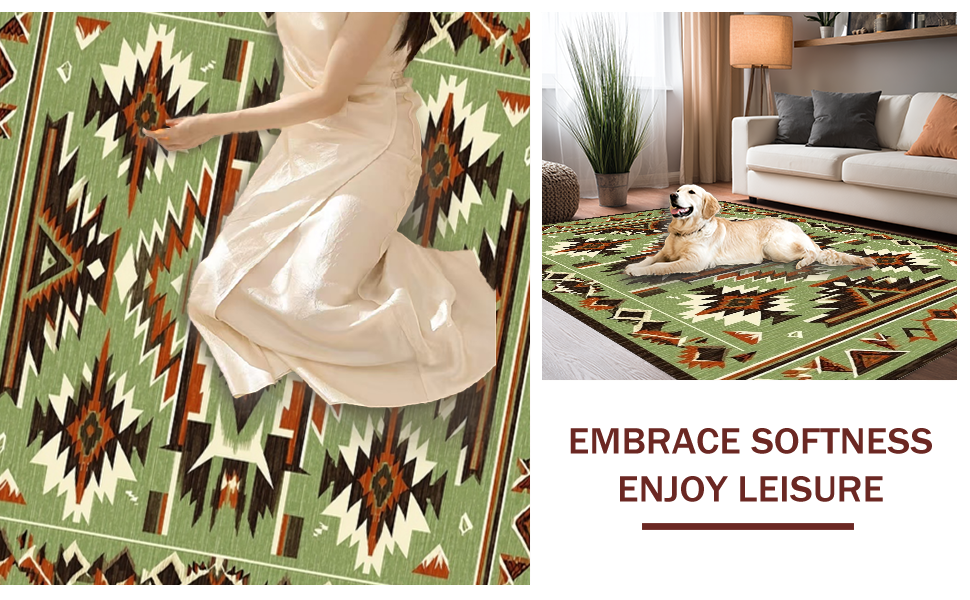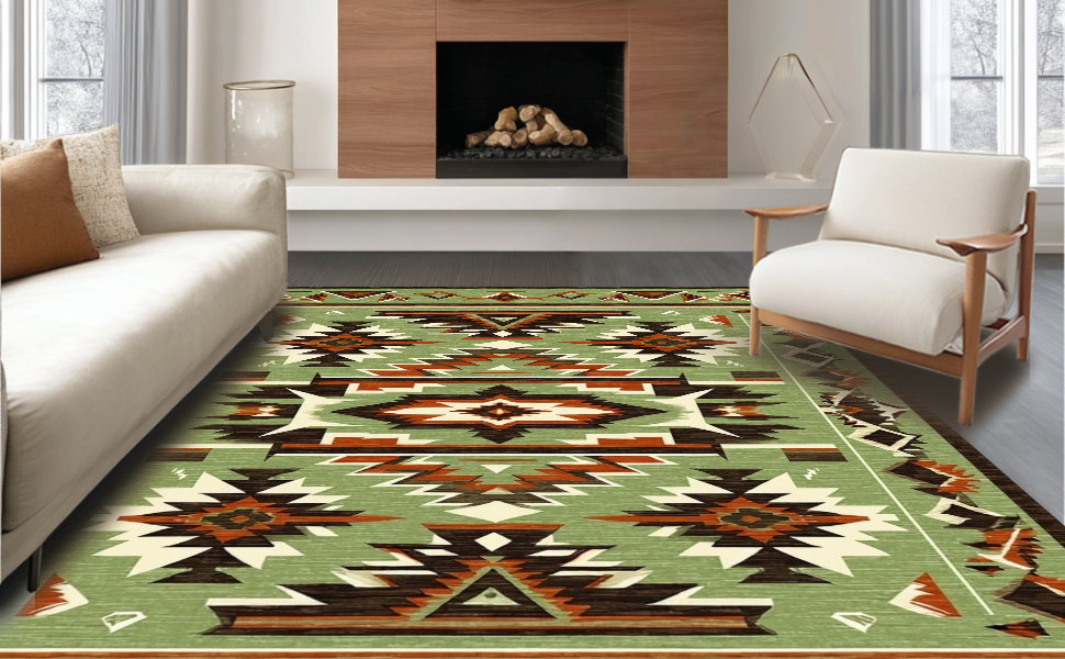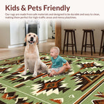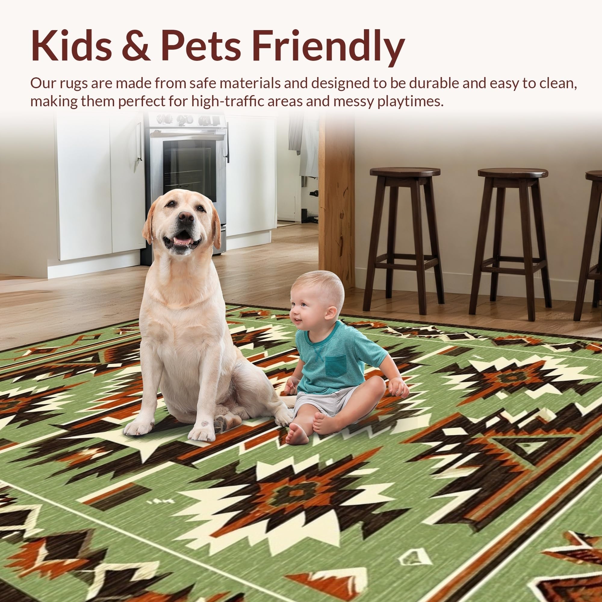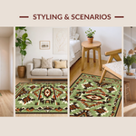 Ultra Soft Area Rug, Non Slip, Stain Resistant, Washable Area Rugs for Living Room, Bedroom, Sophisticated Tribal Ogee Composition(Green) Overview: