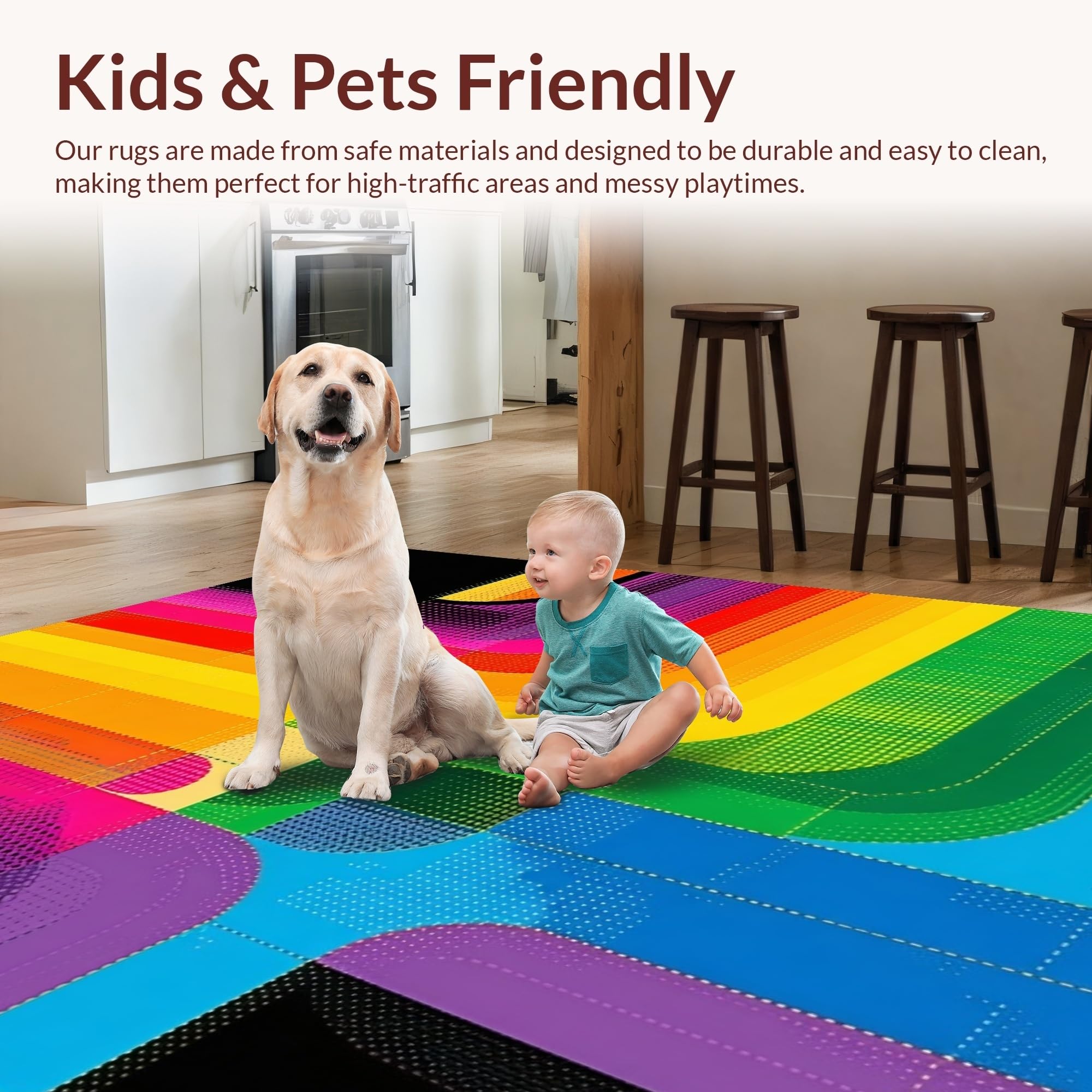 Ultra Soft Area Rug, Non Slip, Stain Resistant, Washable Area Rugs for Living Room, Bedroom, Sophisticated Vibrant Wave Design(Red) Overview: