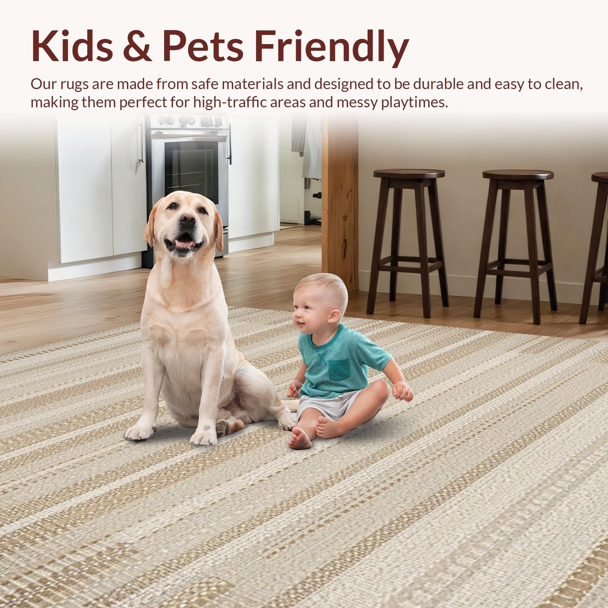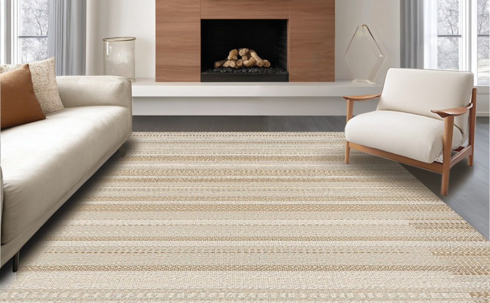 Ultra Soft Area Rug, Non Slip, Stain Resistant, Washable Area Rugs for Living Room, Bedroom, Sophisticated Warm Tones Pattern(Beige) Overview: