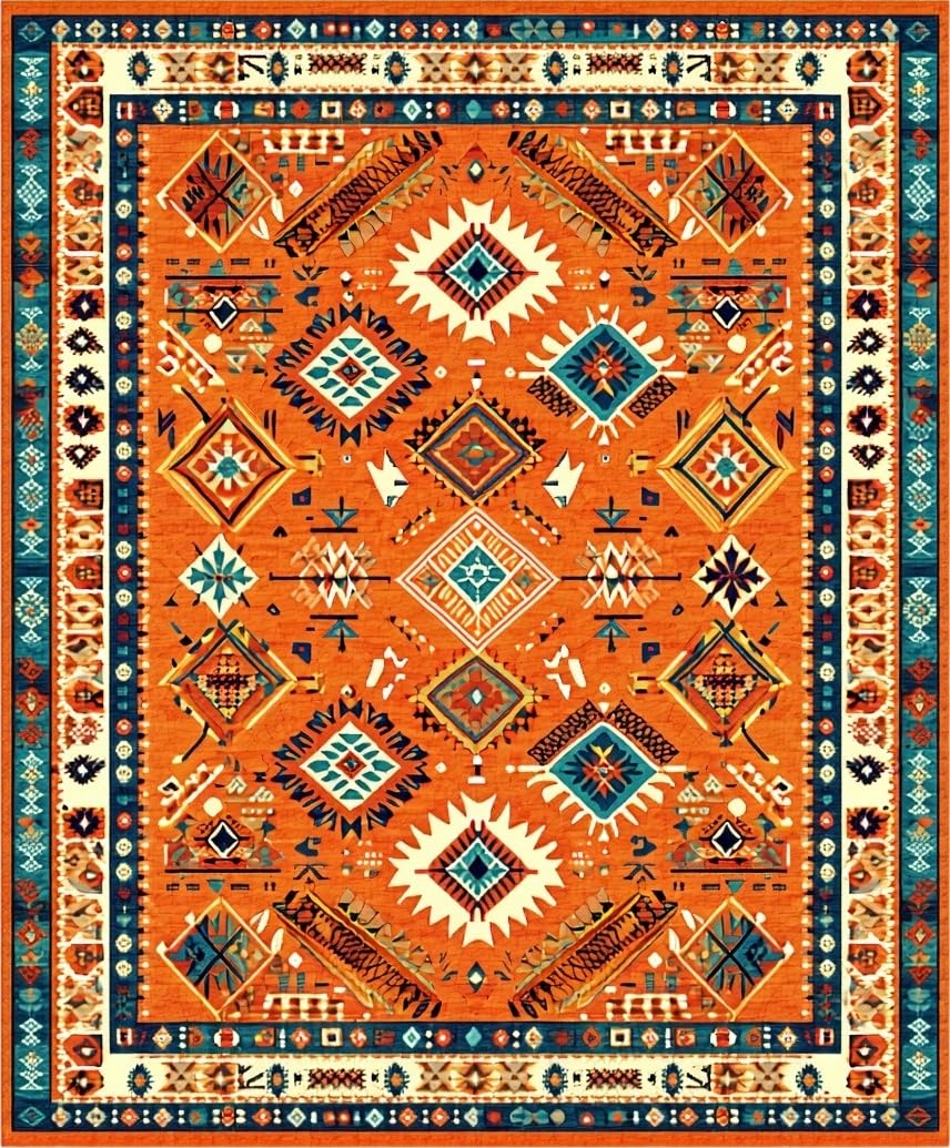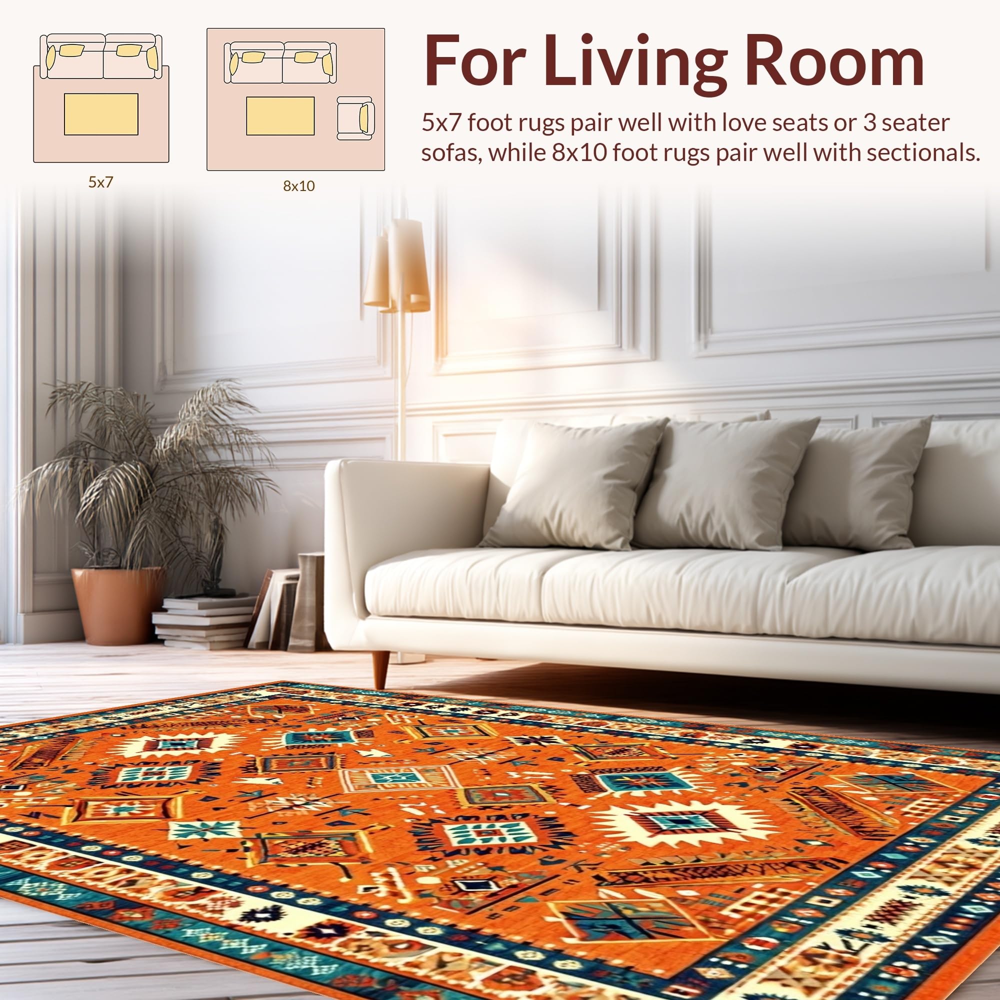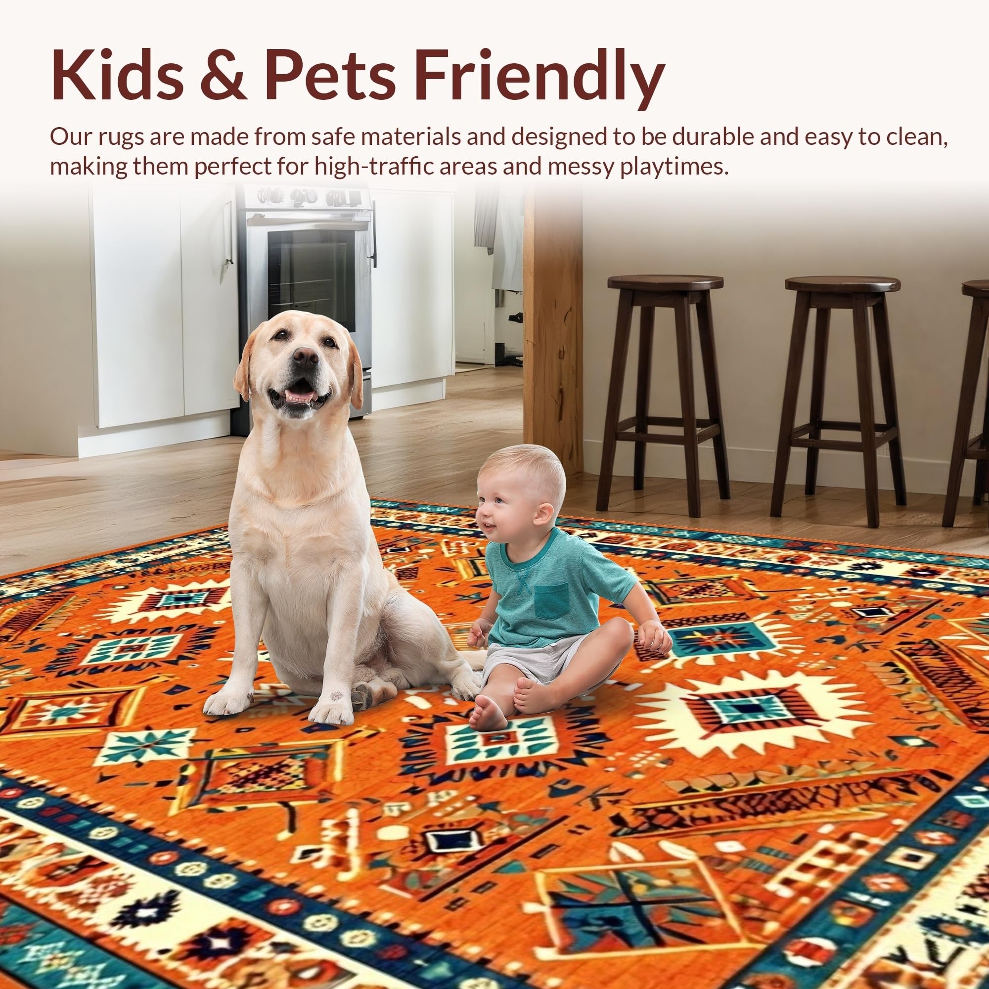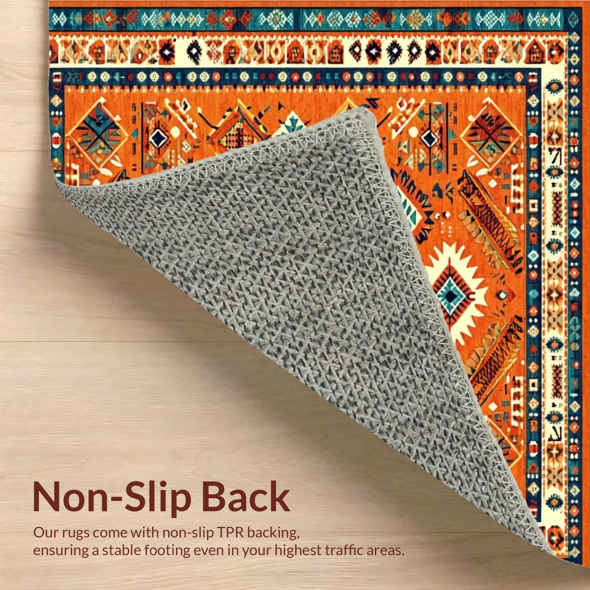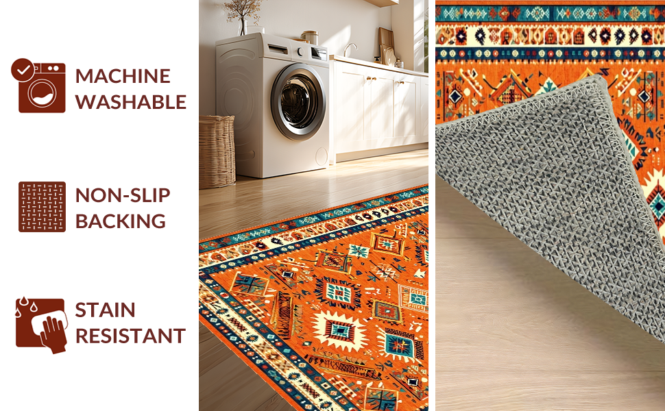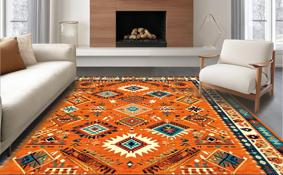 Ultra Soft Area Rug, Non Slip, Stain Resistant, Washable Area Rugs for Living Room, Bedroom, Sophisticated Warm Tones Tiled Look(Orange) Overview: