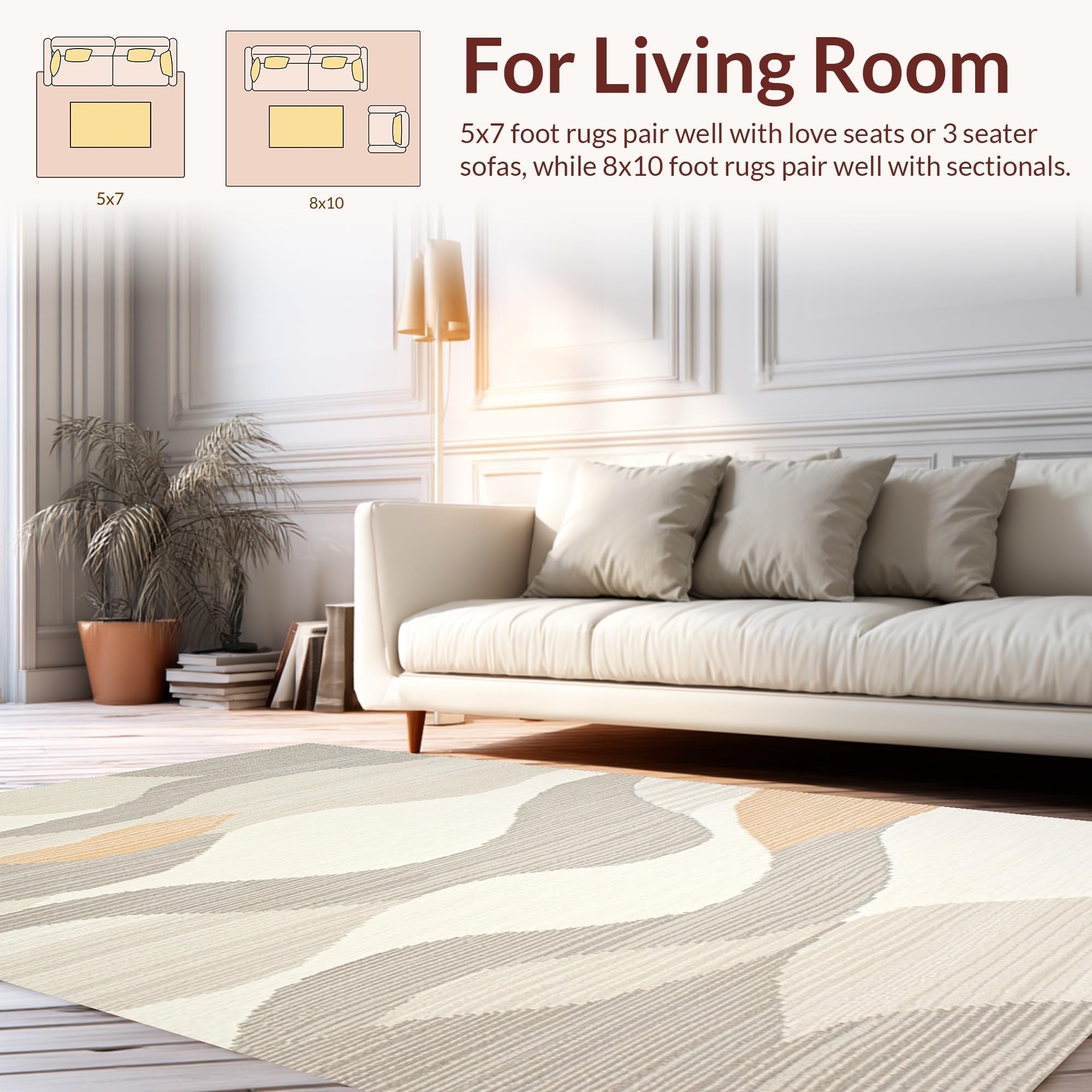 Ultra Soft Area Rug, Non Slip, Stain Resistant, Washable Area Rugs for Living Room, Bedroom, Sophisticated White Tiled Arrangement(Beige) Overview: