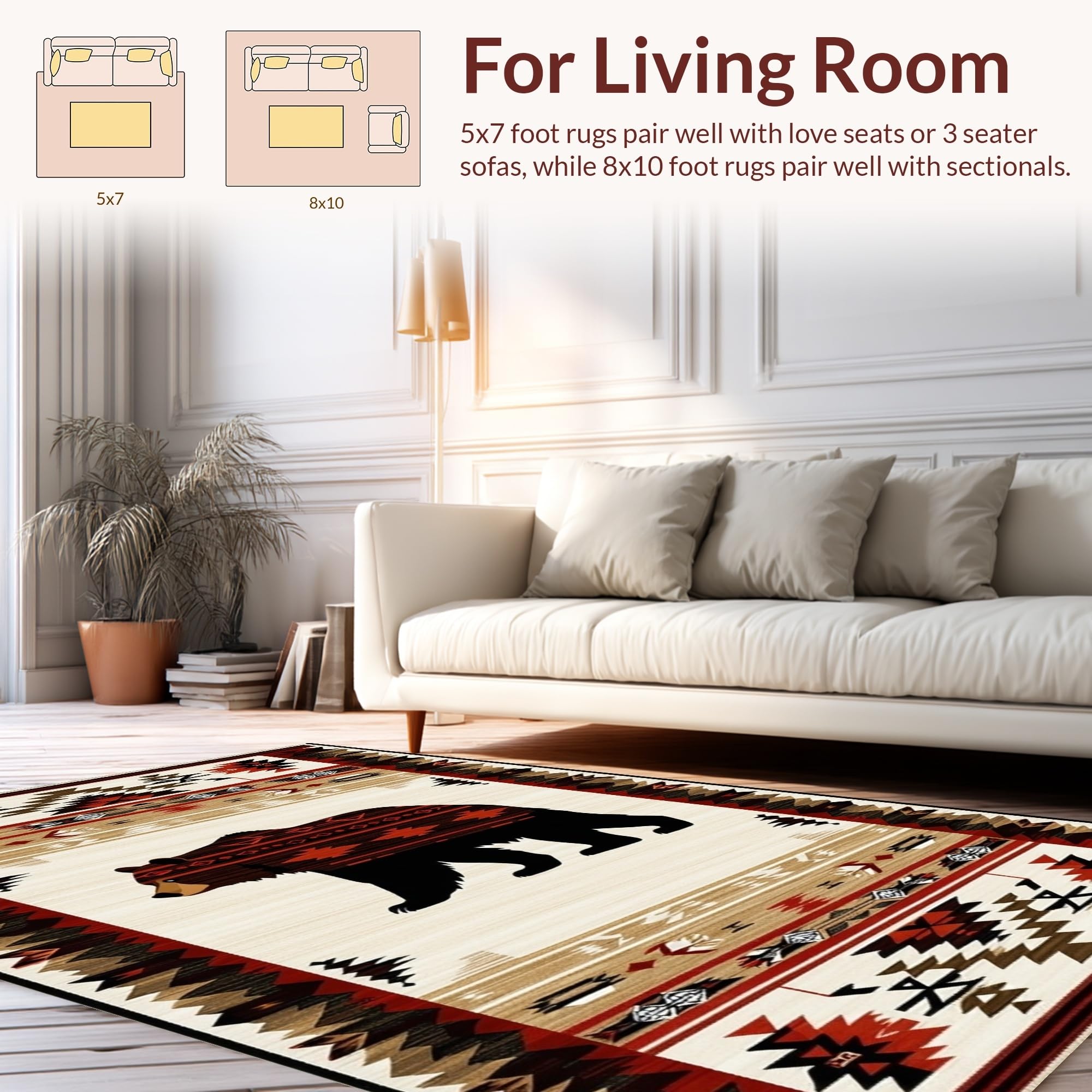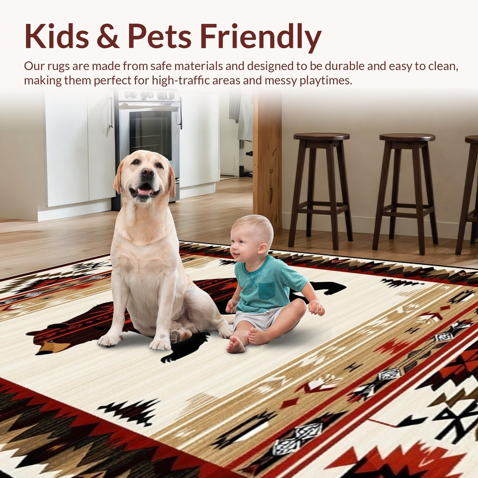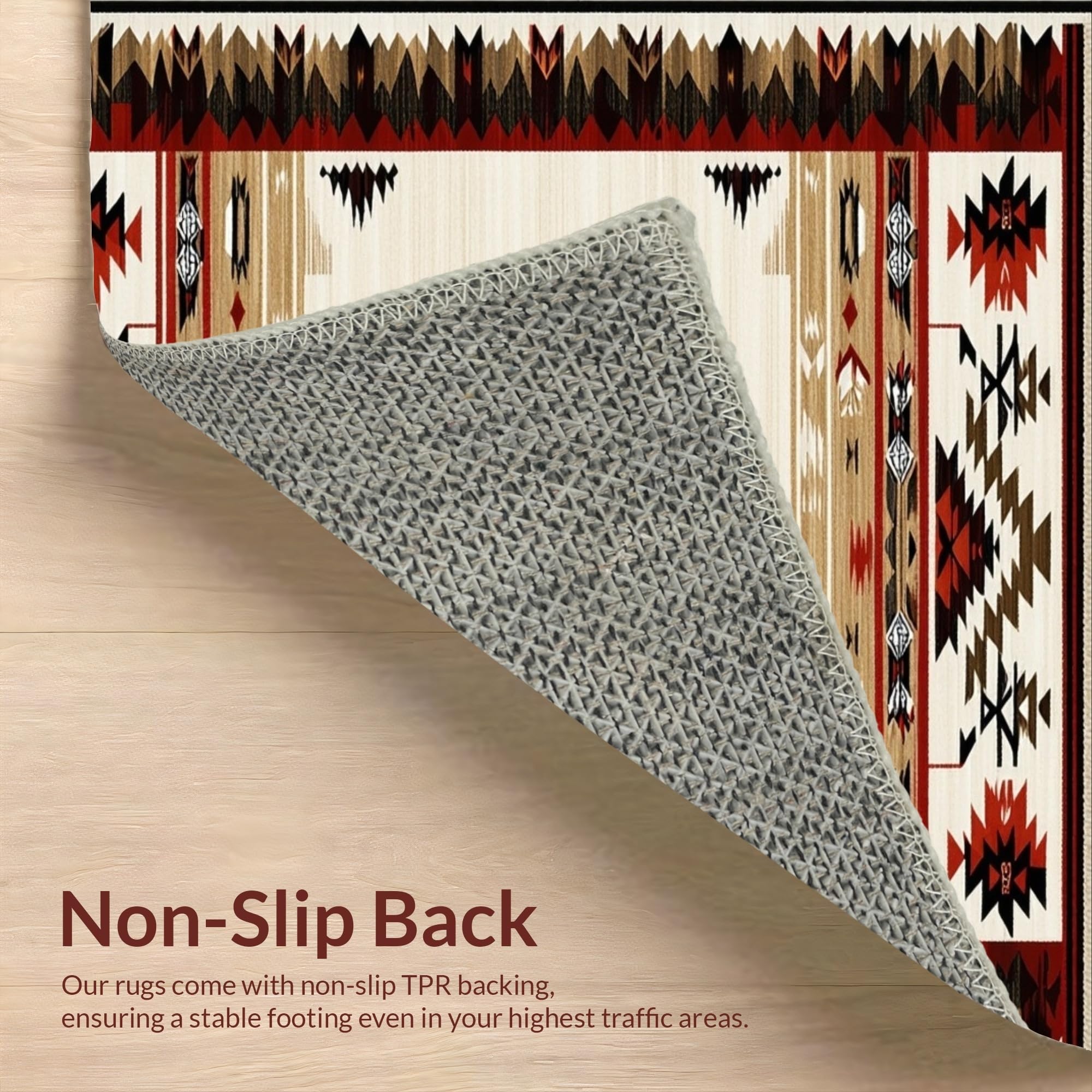 Ultra Soft Area Rug, Non Slip, Stain Resistant, Washable Area Rugs for Living Room, Bedroom, Southwest Wildlife Ethnic Pattern(Beige) Overview: