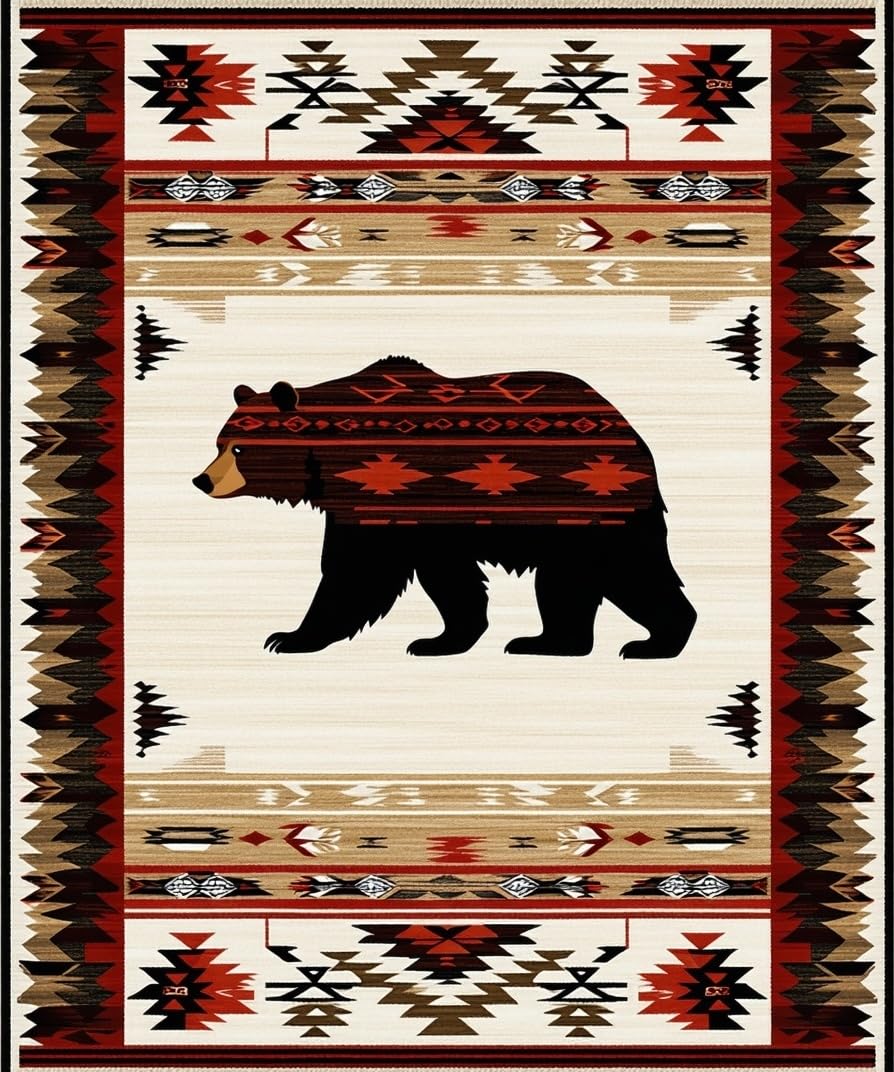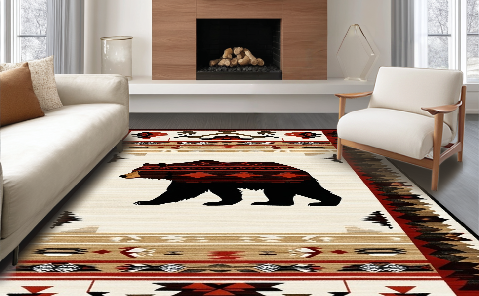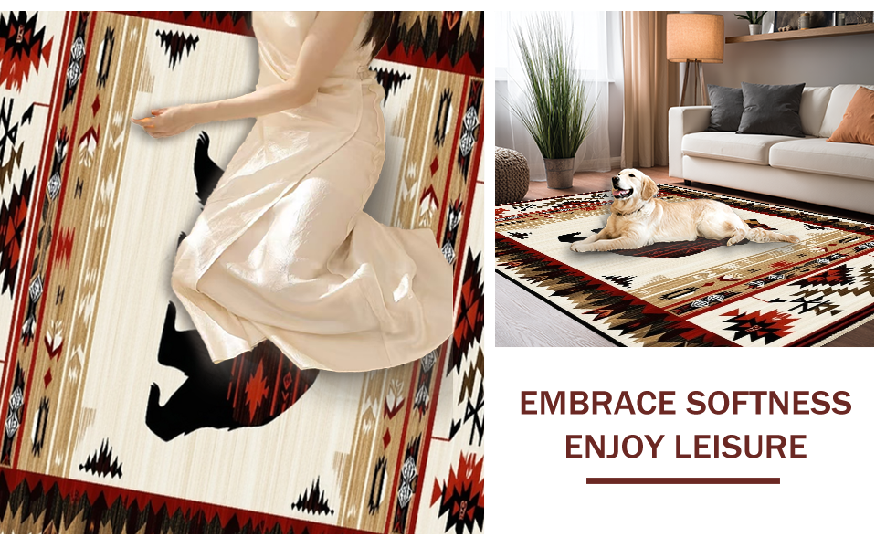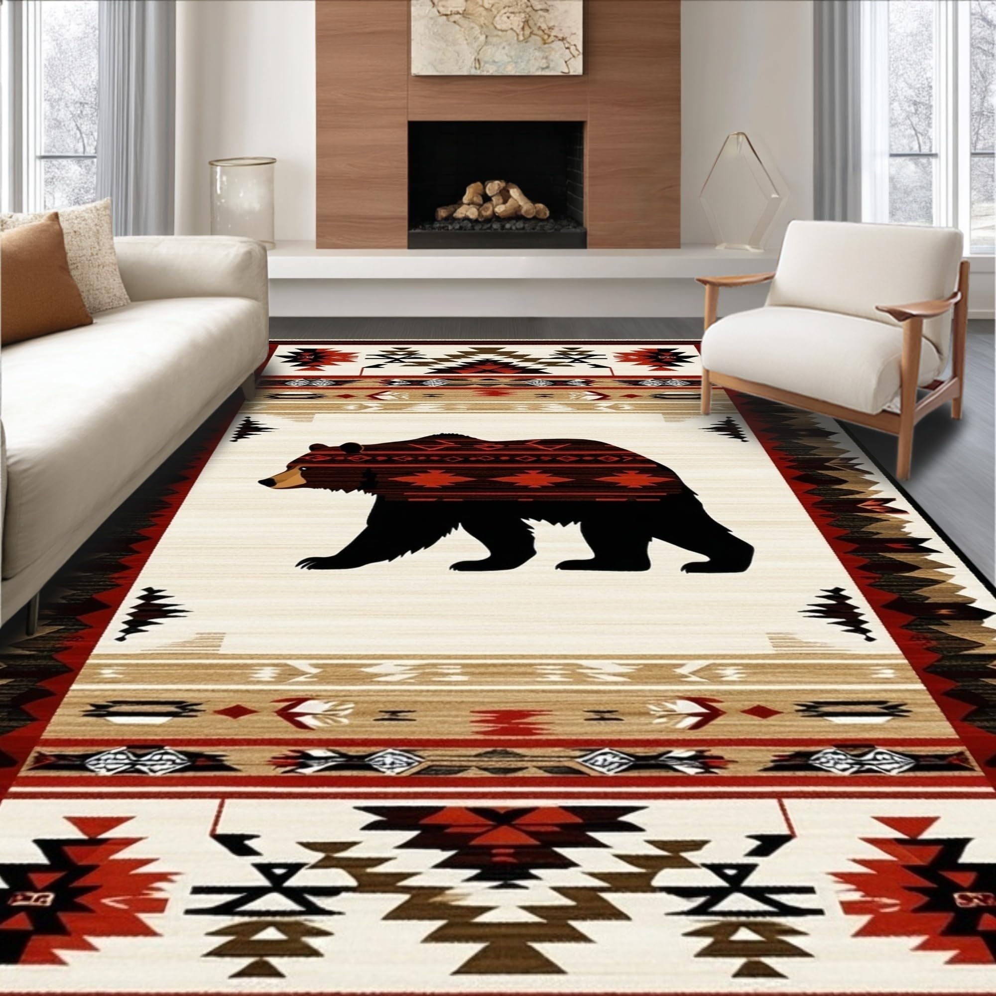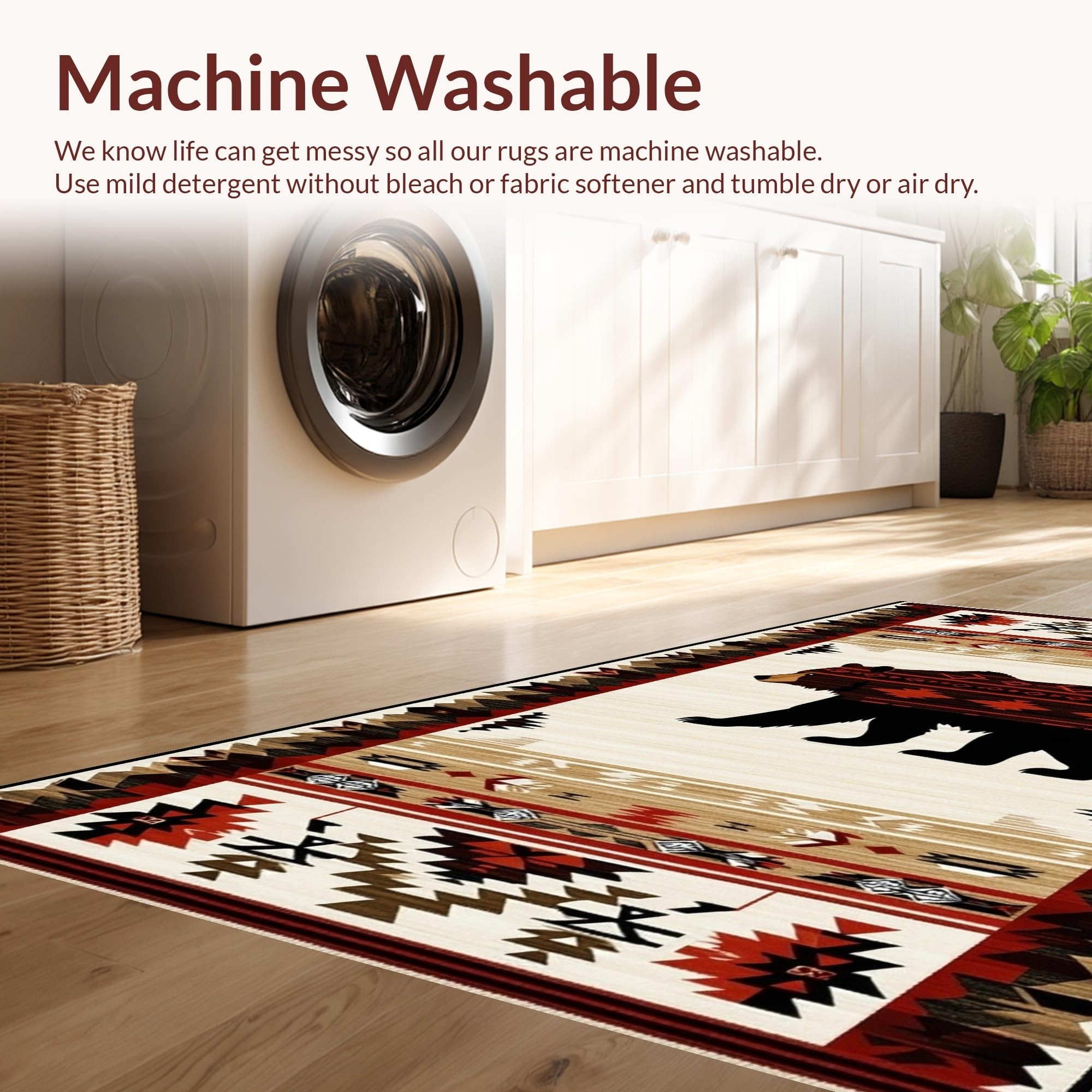 Ultra Soft Area Rug, Non Slip, Stain Resistant, Washable Area Rugs for Living Room, Bedroom, Southwest Wildlife Ethnic Pattern(Beige) Overview: