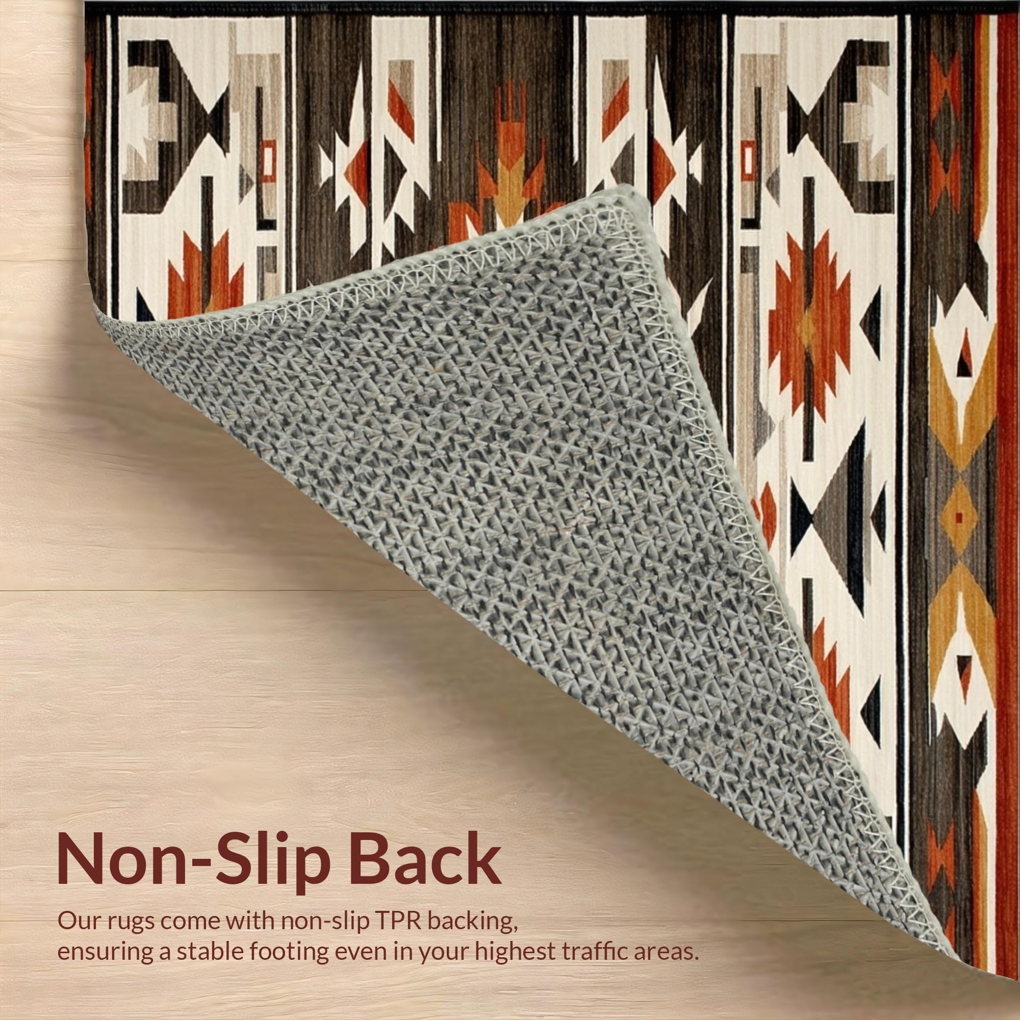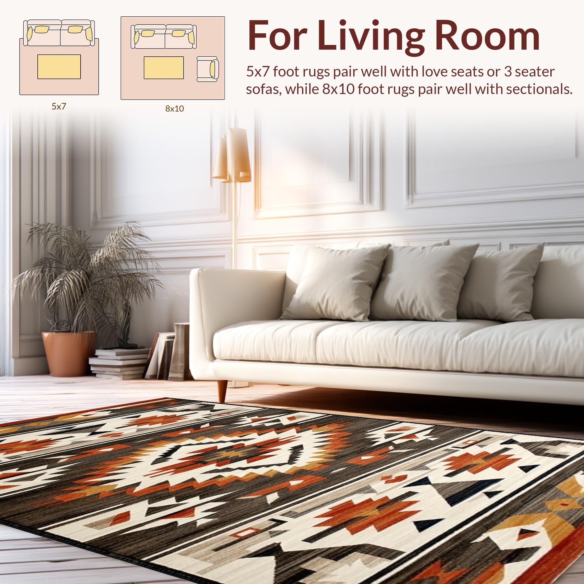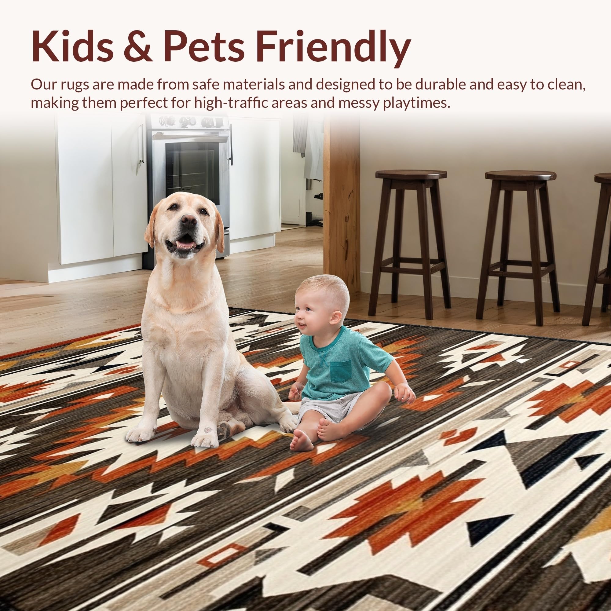 Ultra Soft Area Rug, Non Slip, Stain Resistant, Washable Area Rugs for Living Room, Bedroom, Southwestern Colorful Tribal Texture(Brown) Overview: