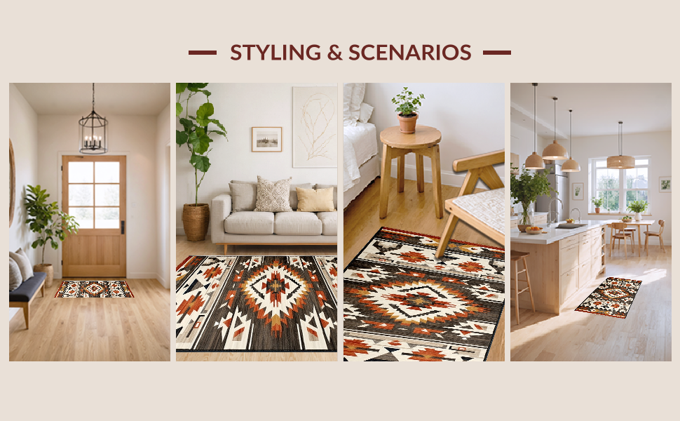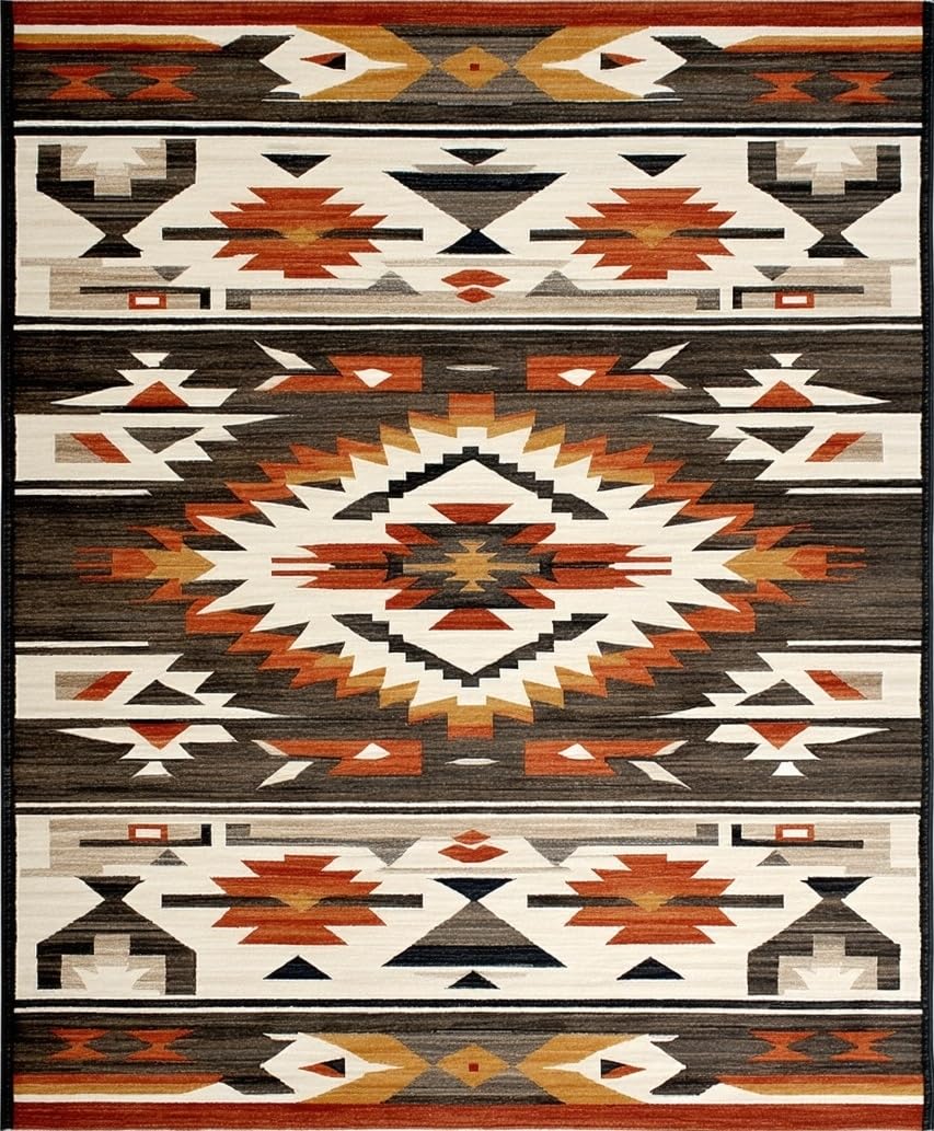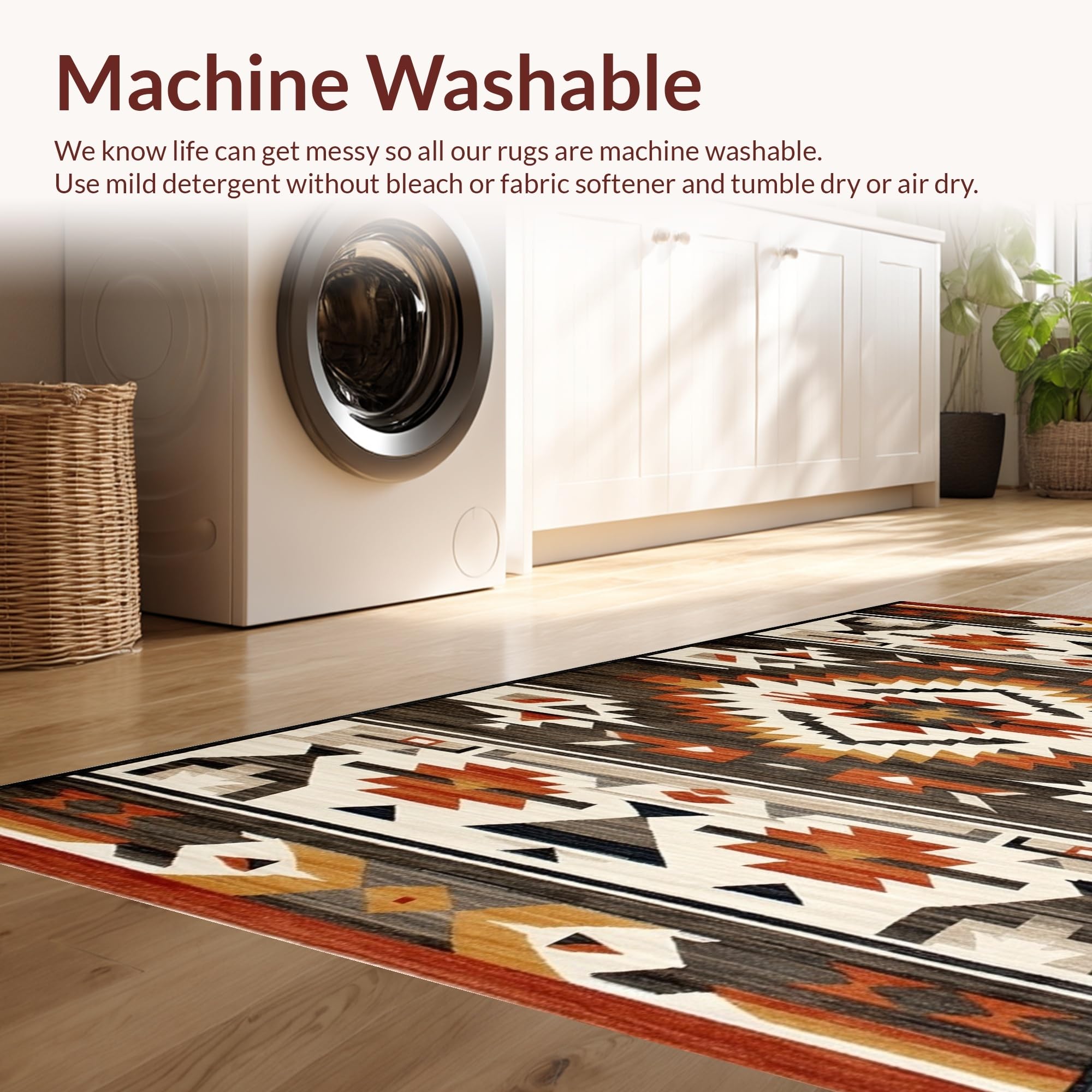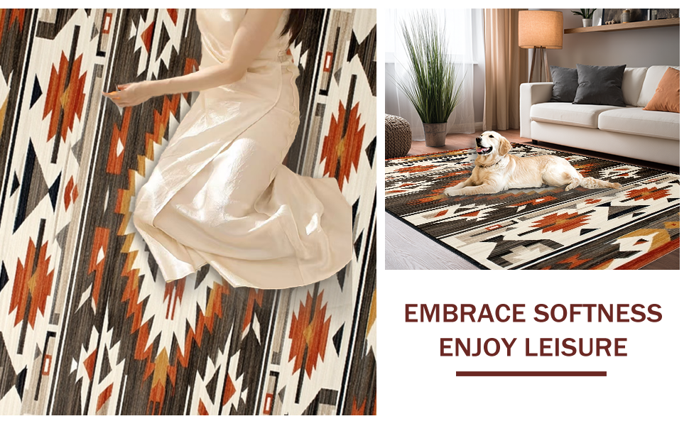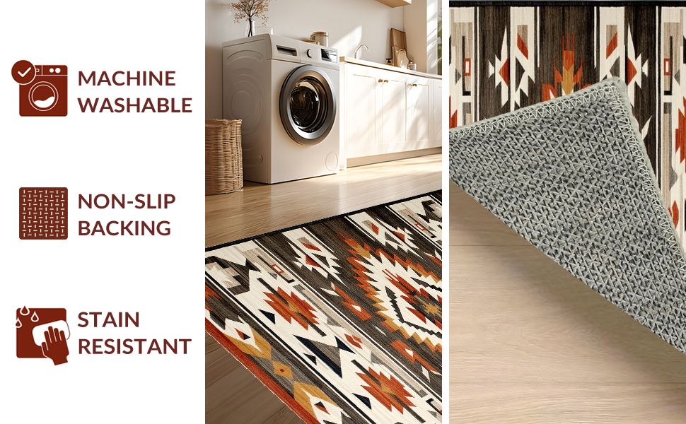 Ultra Soft Area Rug, Non Slip, Stain Resistant, Washable Area Rugs for Living Room, Bedroom, Southwestern Colorful Tribal Texture(Brown) Overview:
