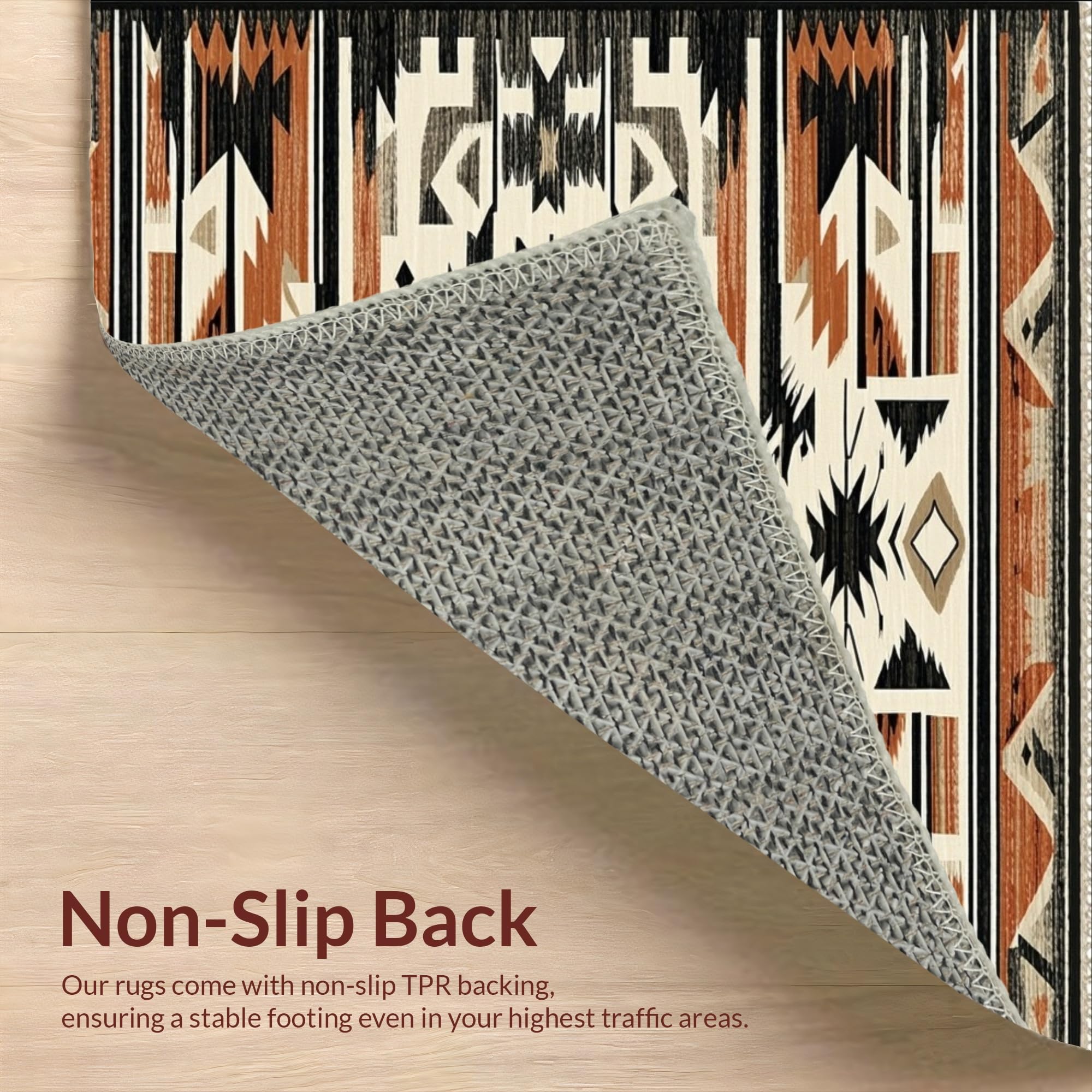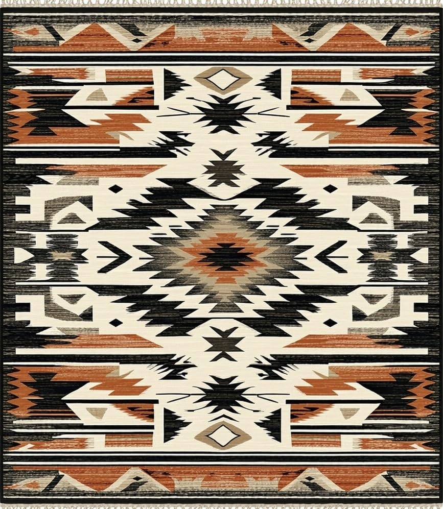 Ultra Soft Area Rug, Non Slip, Stain Resistant, Washable Area Rugs for Living Room, Bedroom, Southwestern Inspired Tribal Motif Rug with Earthy Tones(Beige) Overview: