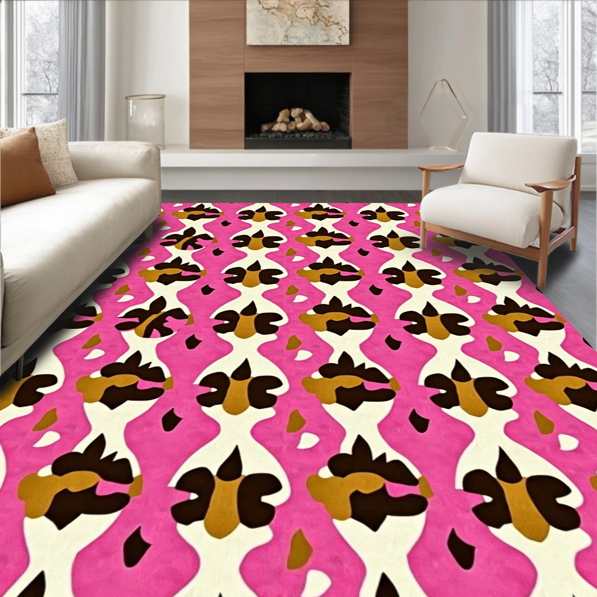 Ultra Soft Area Rug, Non Slip, Stain Resistant, Washable Area Rugs for Living Room, Bedroom, Southwestern Spotted with Bold Interlocking Motifs(Pink) Overview: