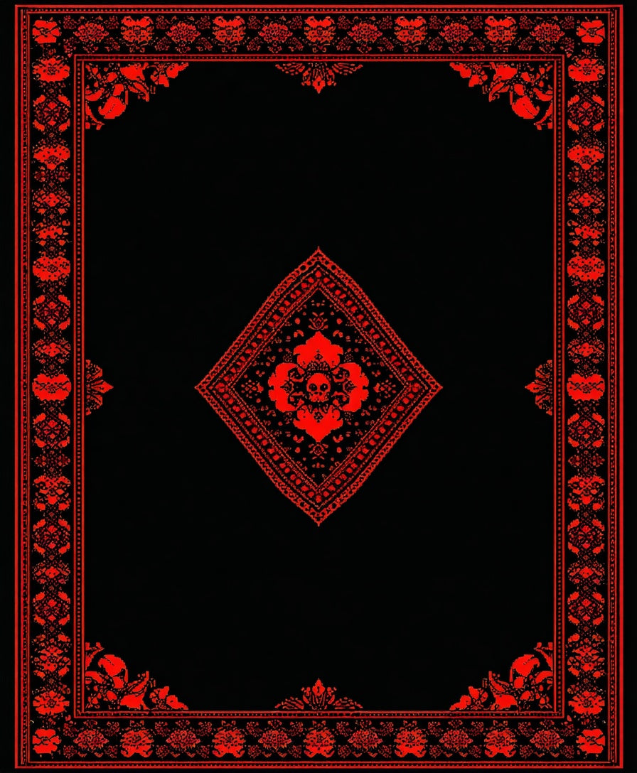 Spooky Black Geometric Horror Motif(Red)
