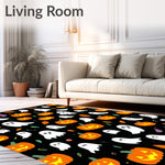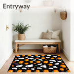 Spooky Ghost & Pumpkin Patch Non Slip for Entryway(Black)