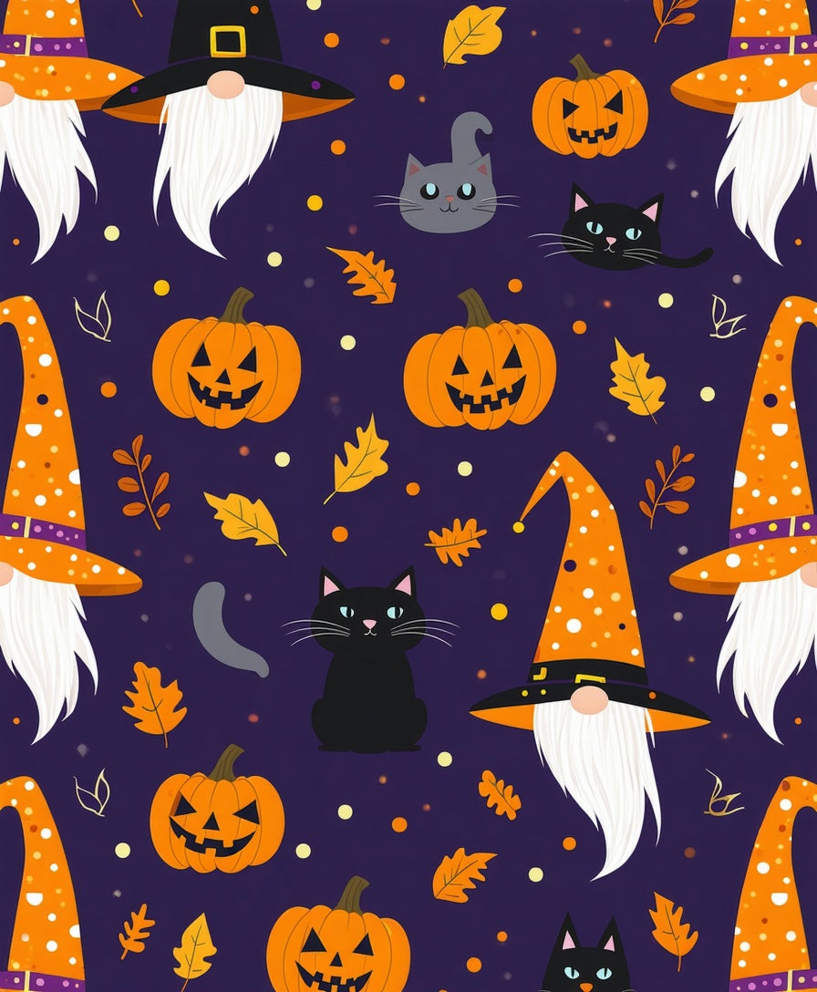 Spooky Harvest Festive Cat Gnome Entrance Autumn(Purple)
